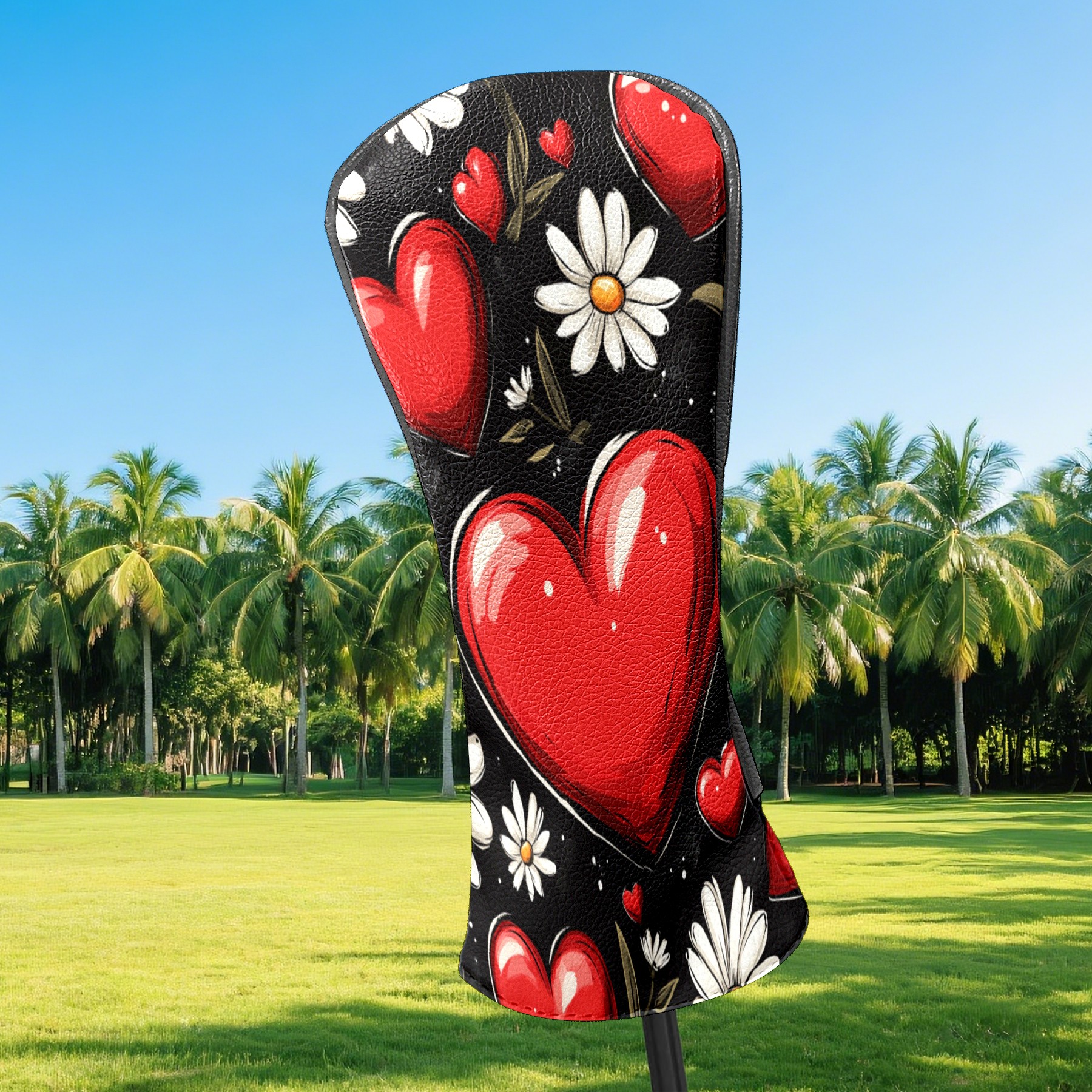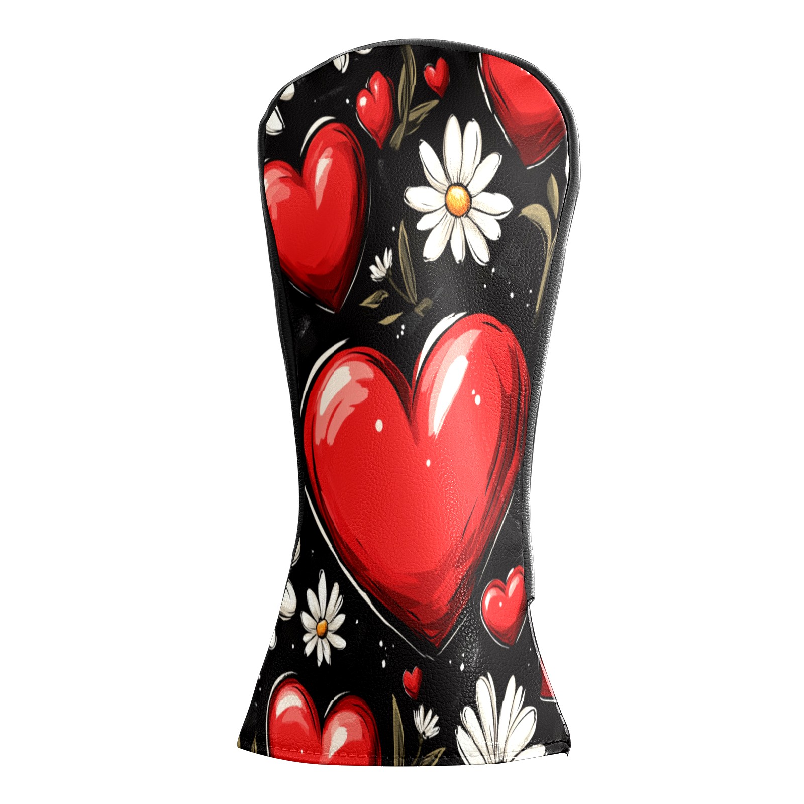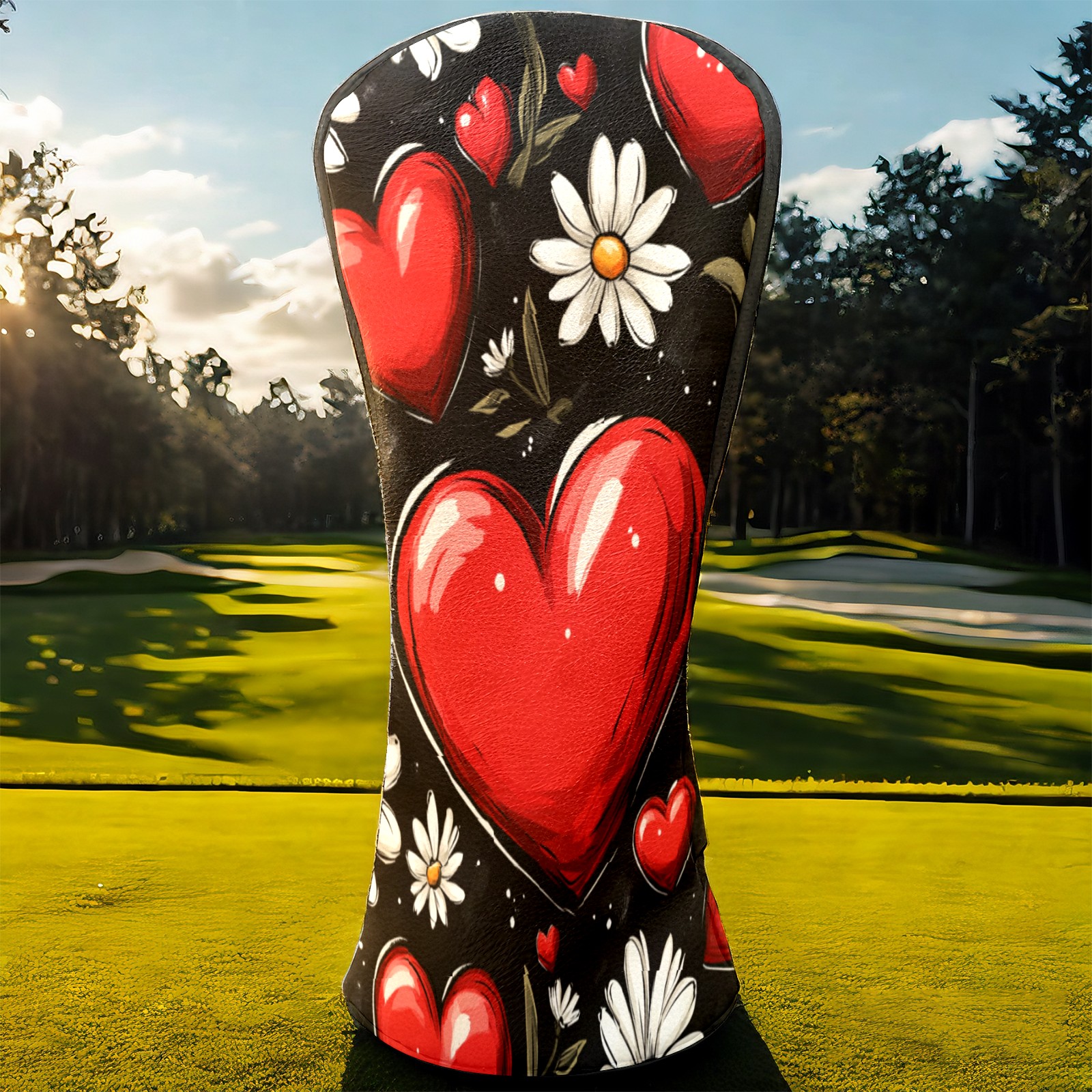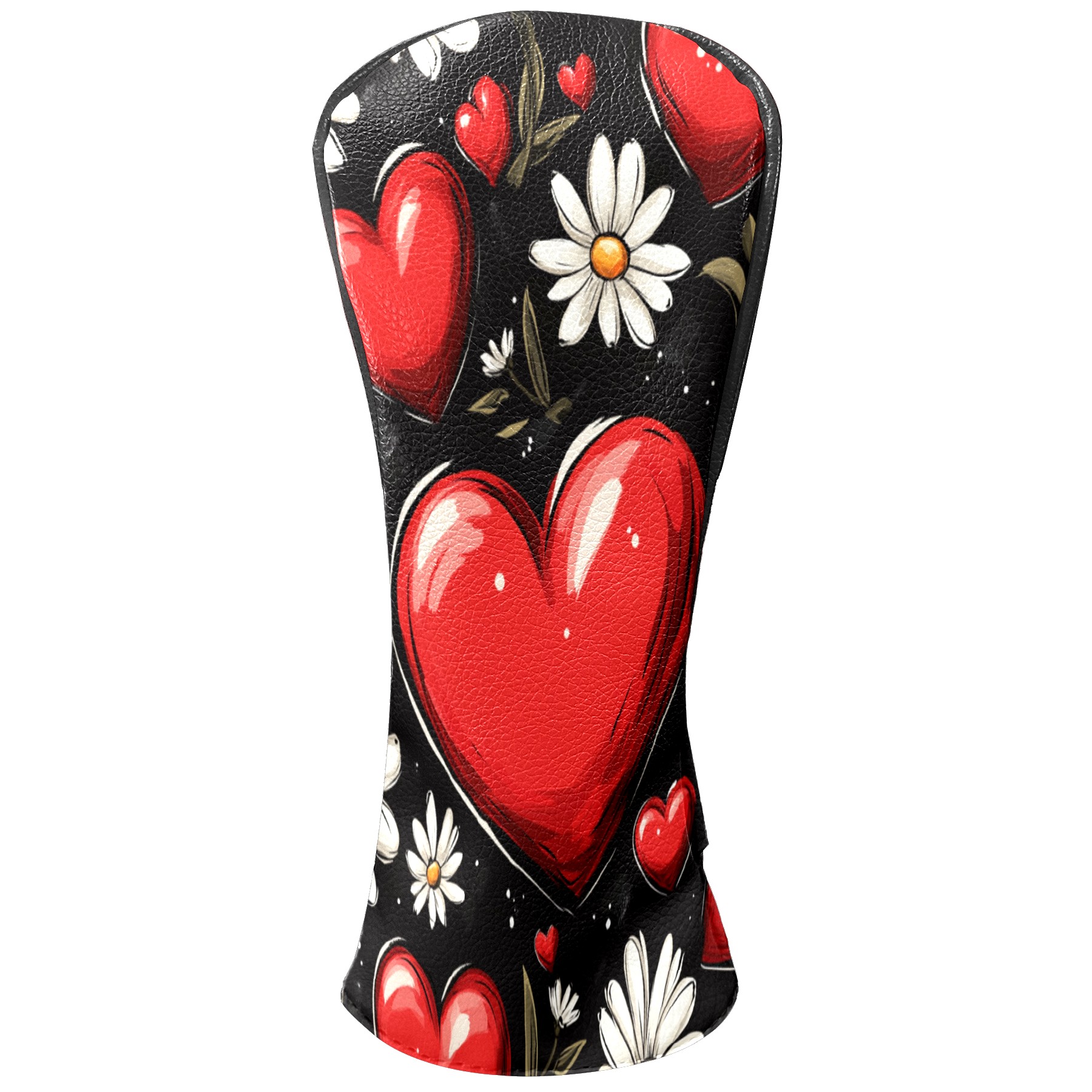 Golf Club Head Cover, High Quality PU Leather Driver and Wood Club Head Cover with Anti-Scratch Lining, Red Heart Valentine's Day Daisies Universal Gift for Men and Women