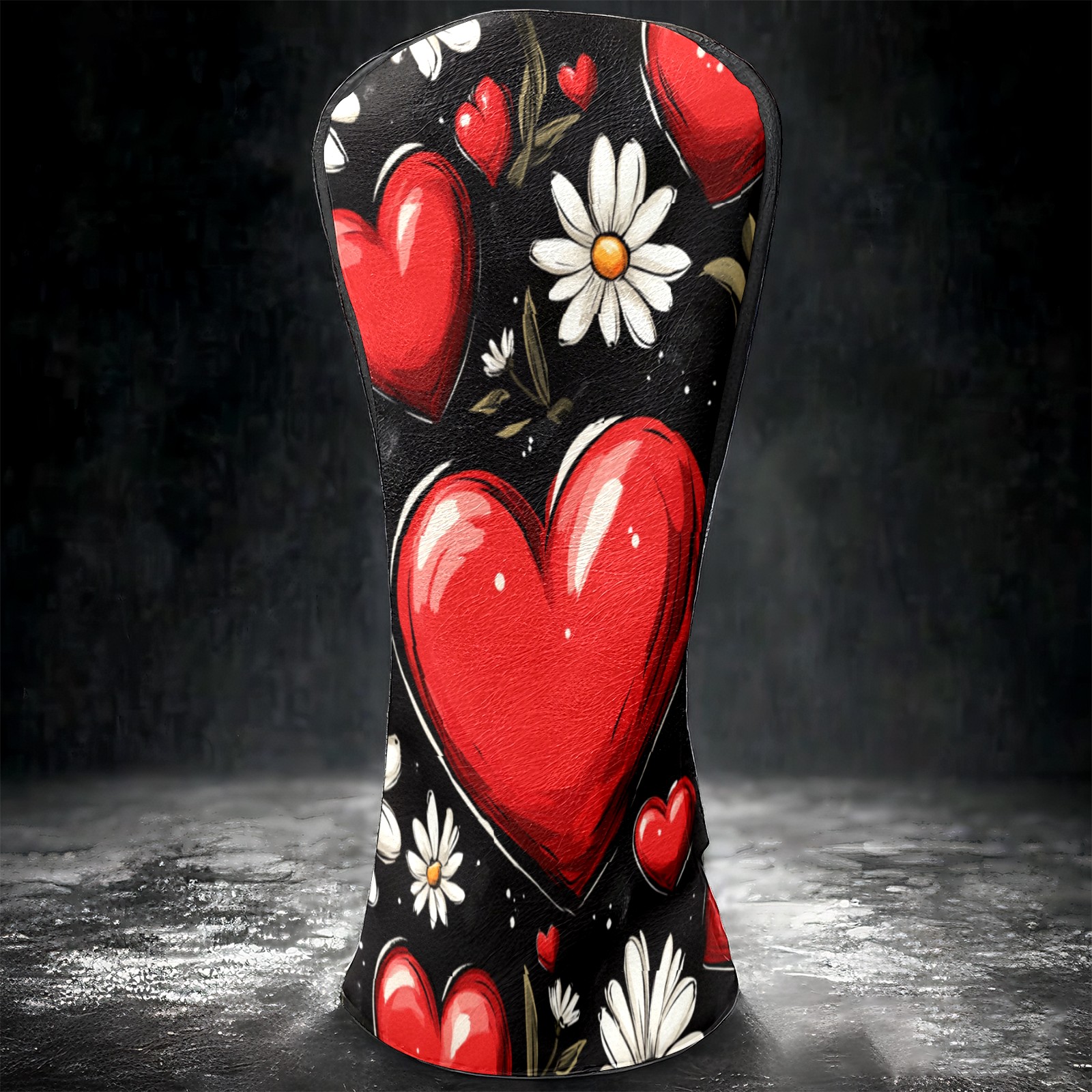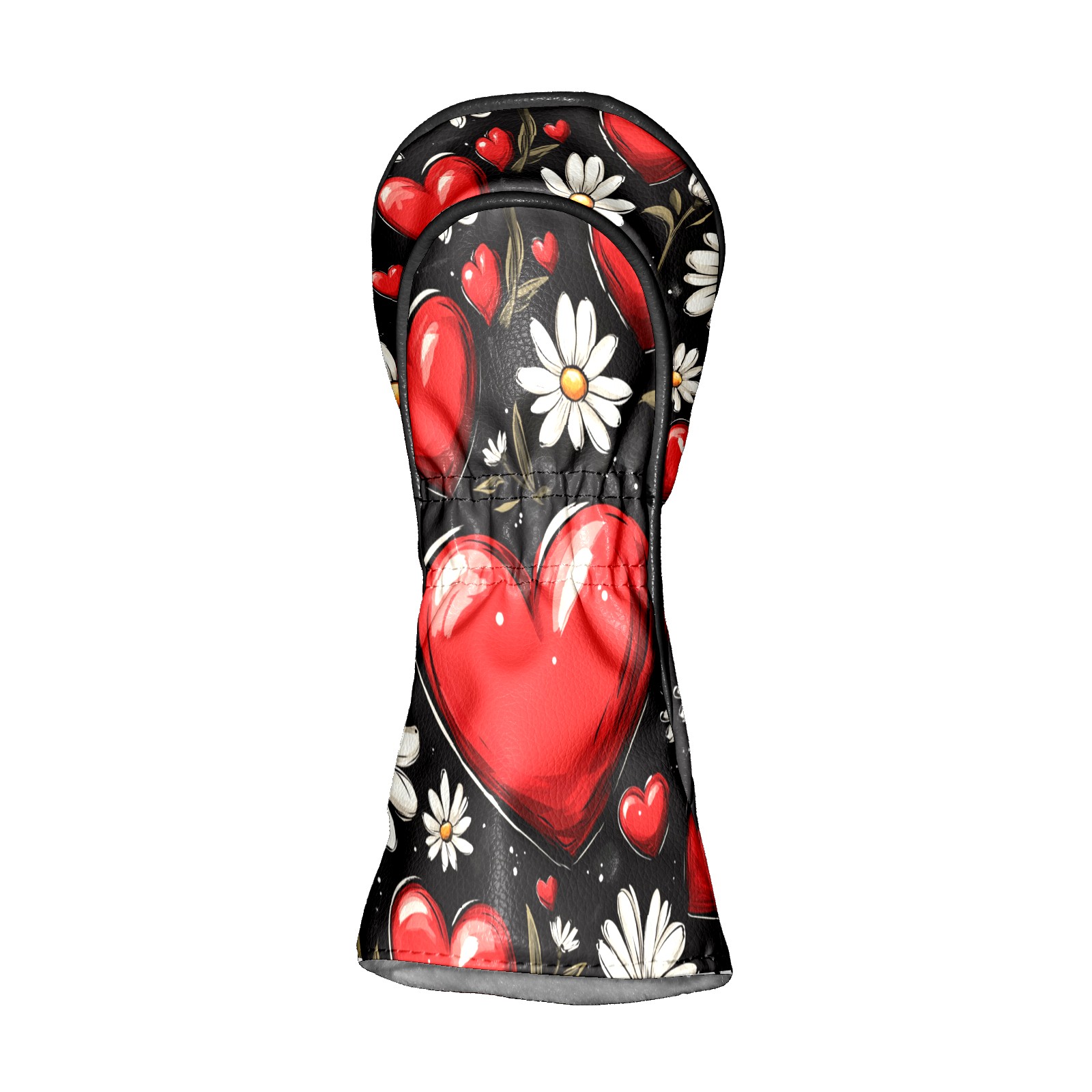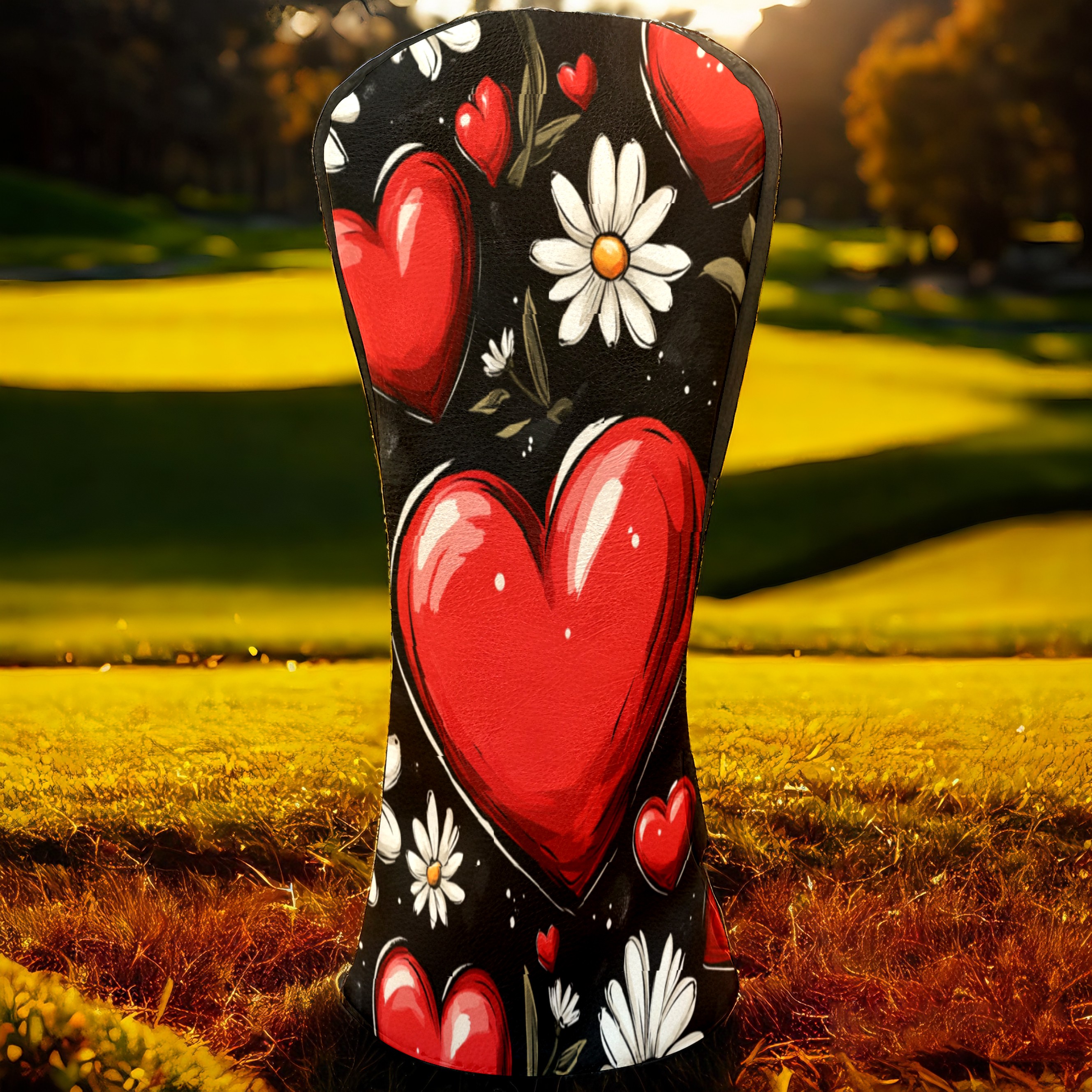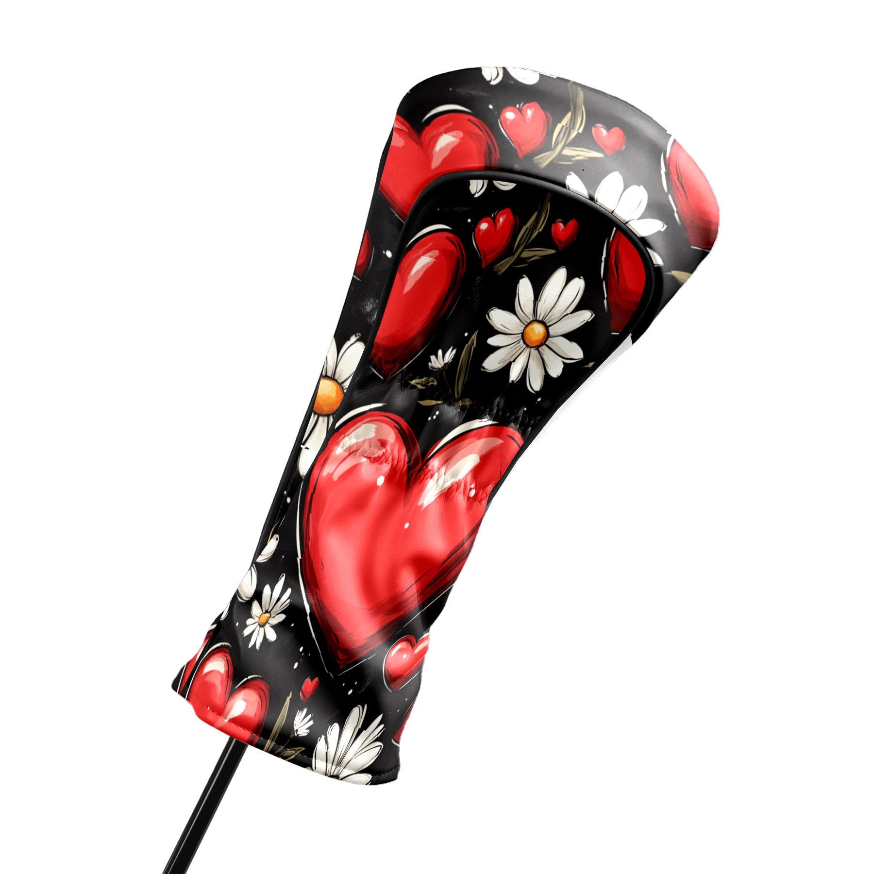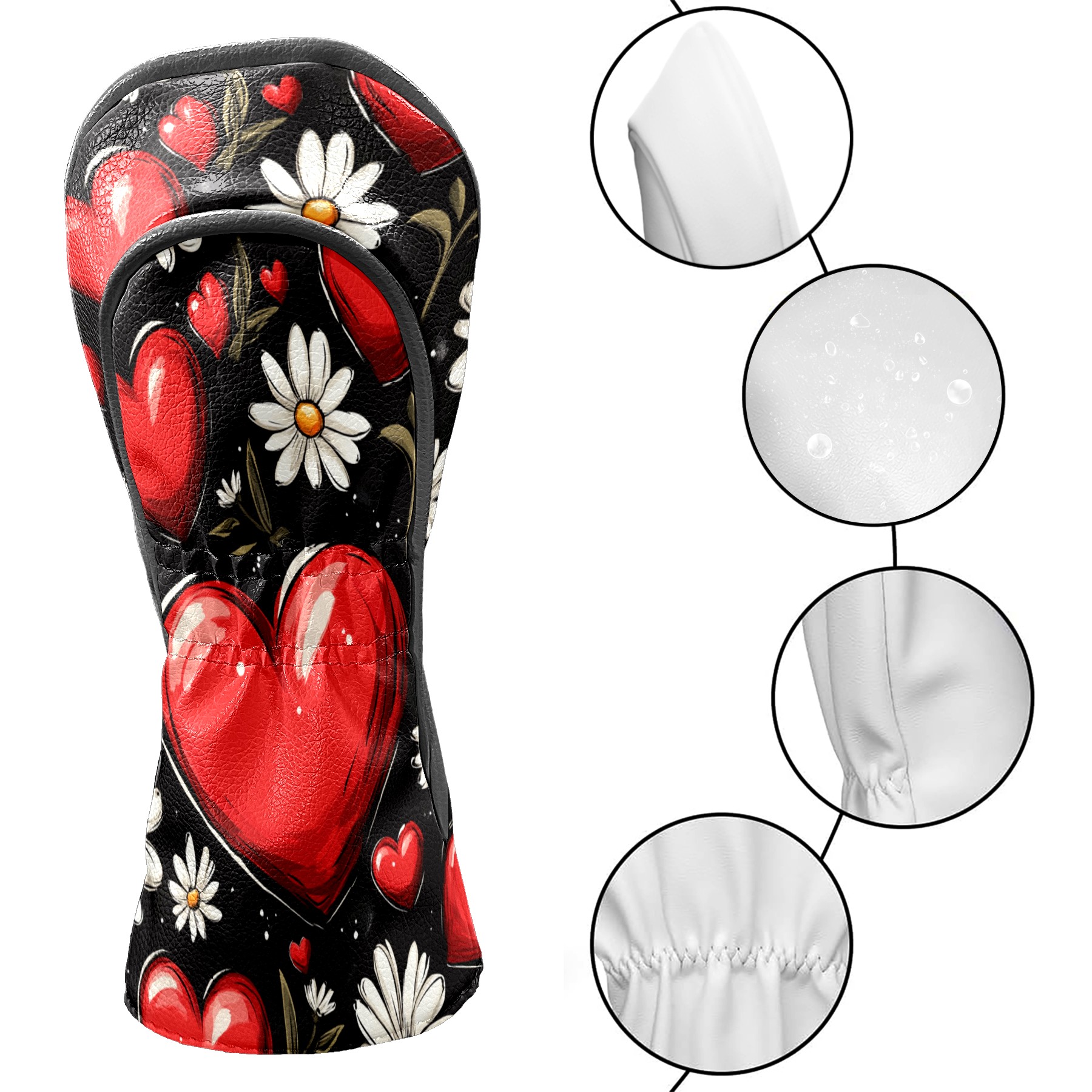Golf Club Head Cover, High Quality PU Leather Driver and Wood Club Head Cover with Anti-Scratch Lining, Red Heart Valentine's Day Daisies Universal Gift for Men and Women
