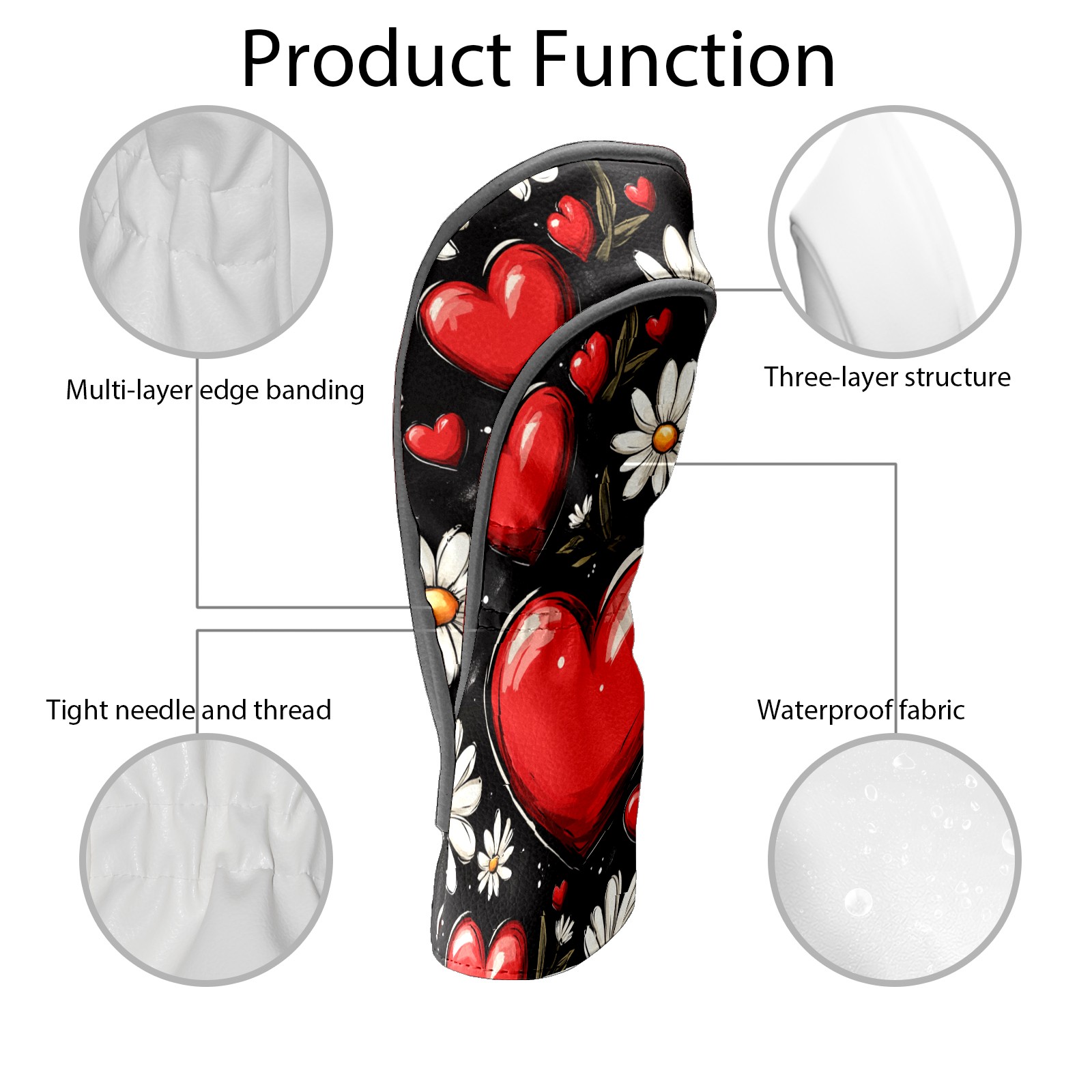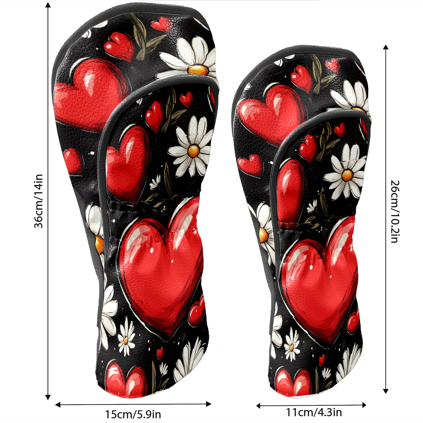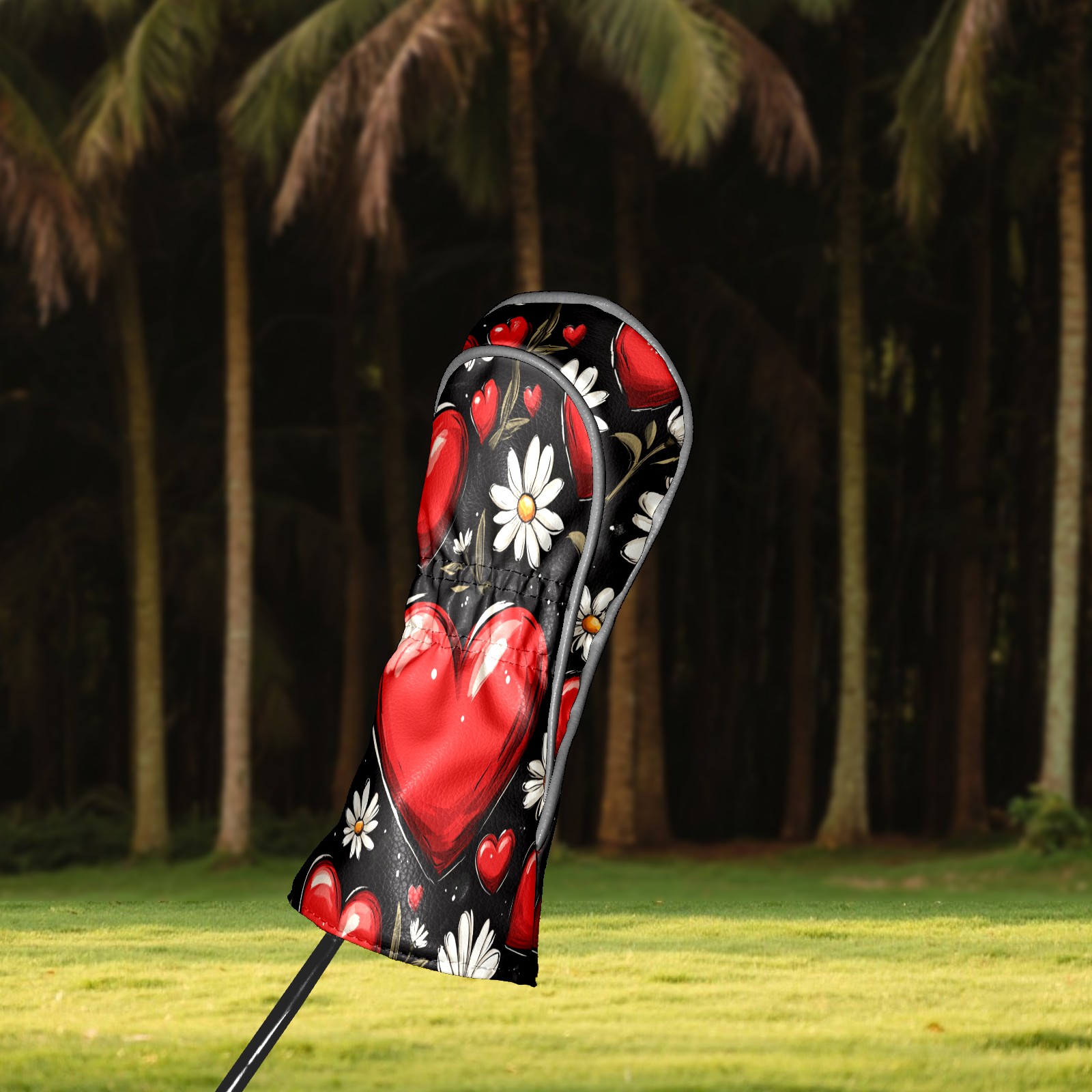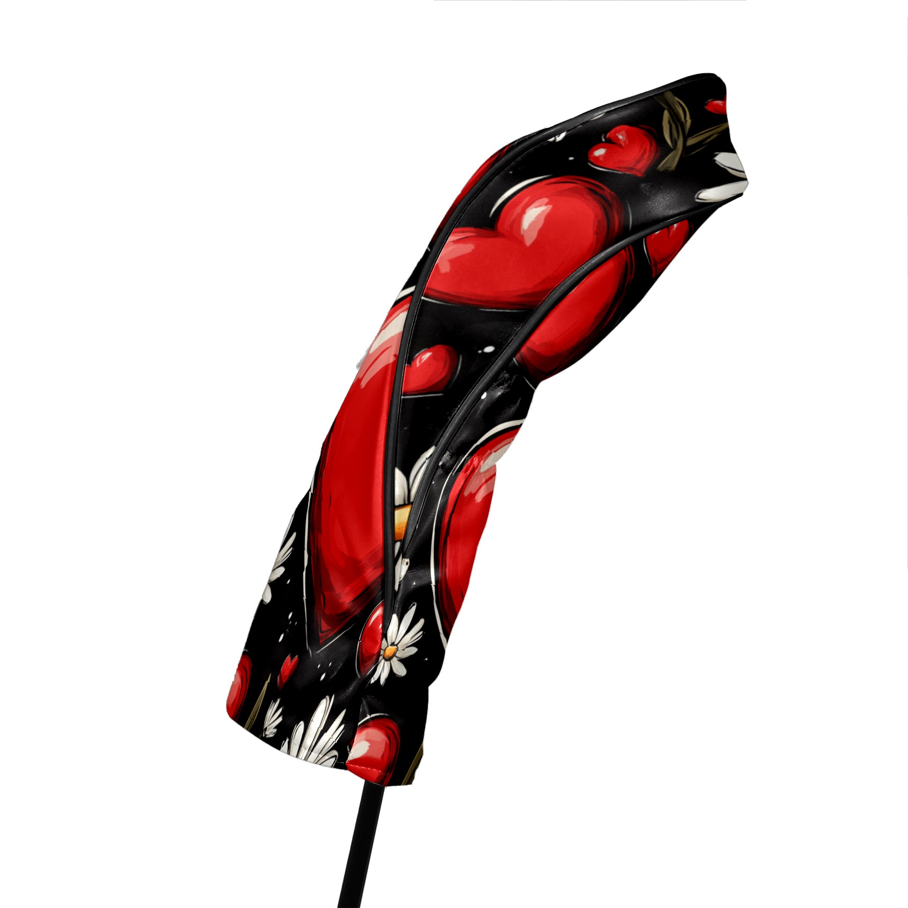 Golf Club Head Cover, High Quality PU Leather Driver and Wood Club Head Cover with Anti-Scratch Lining, Red Heart Valentine's Day Daisies Universal Gift for Men and Women