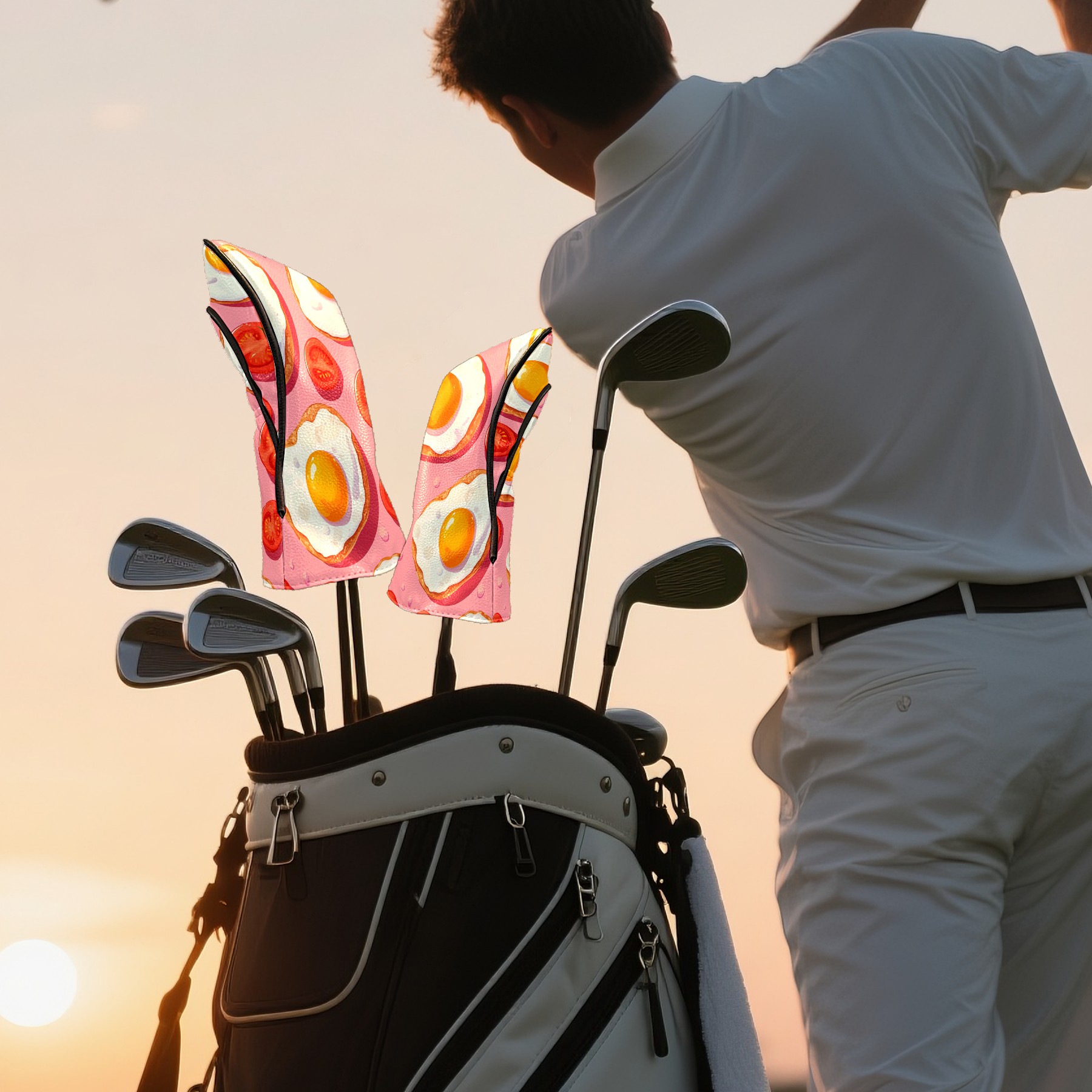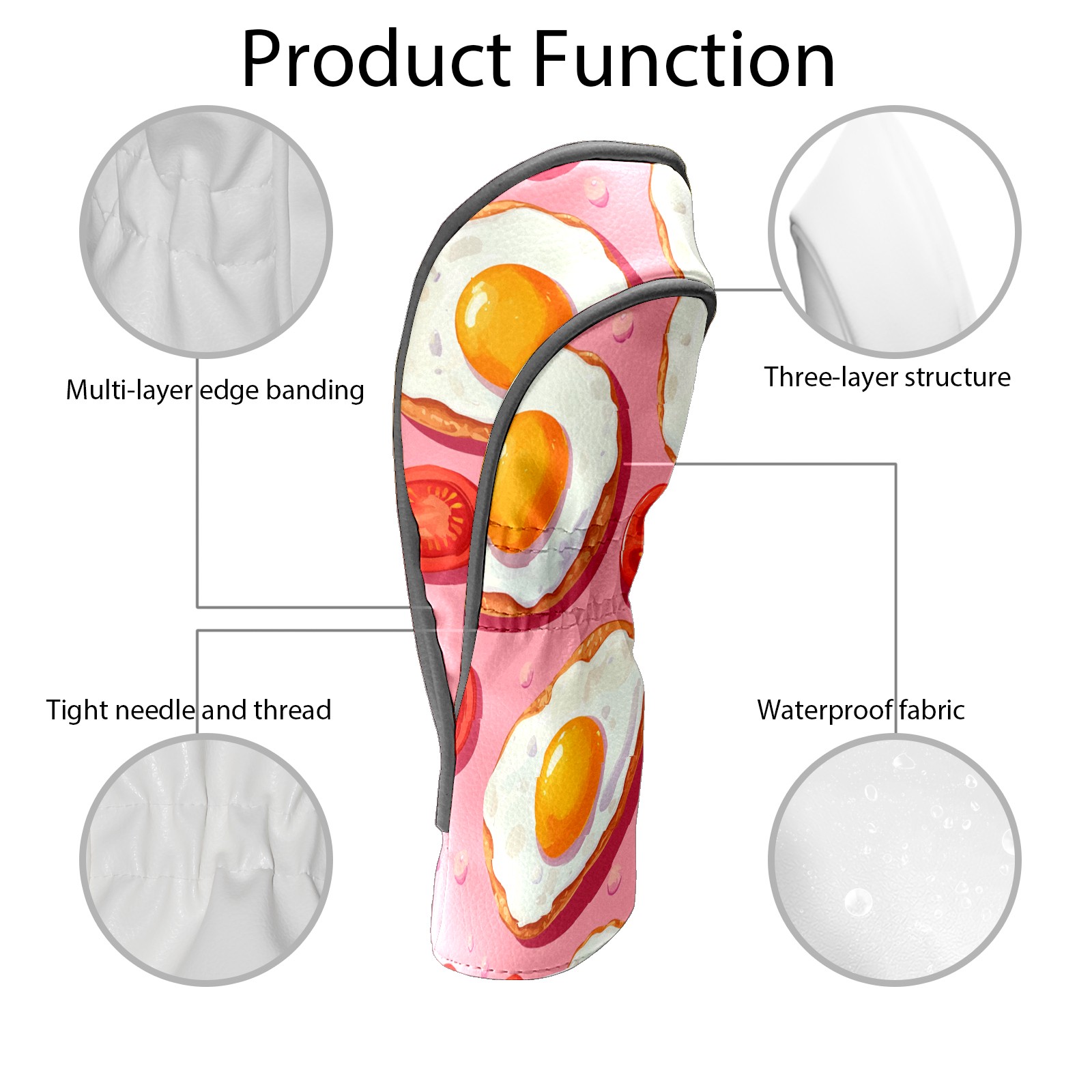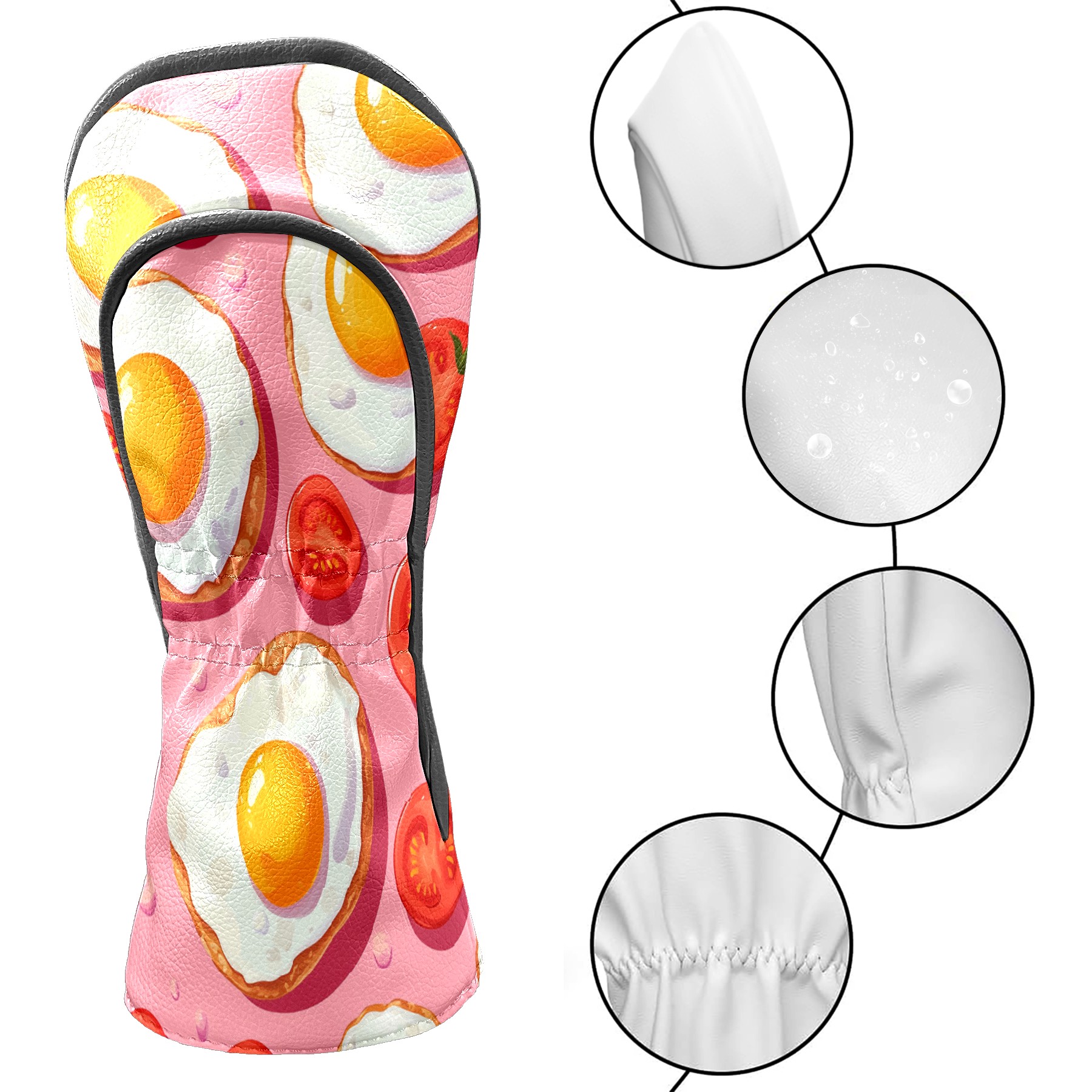 Golf Club Head Cover, High Quality PU Leather Driver and Wood Club Head Cover with Anti-Scratch Lining, Tomato Fried Egg Universal Gift for Men and Women