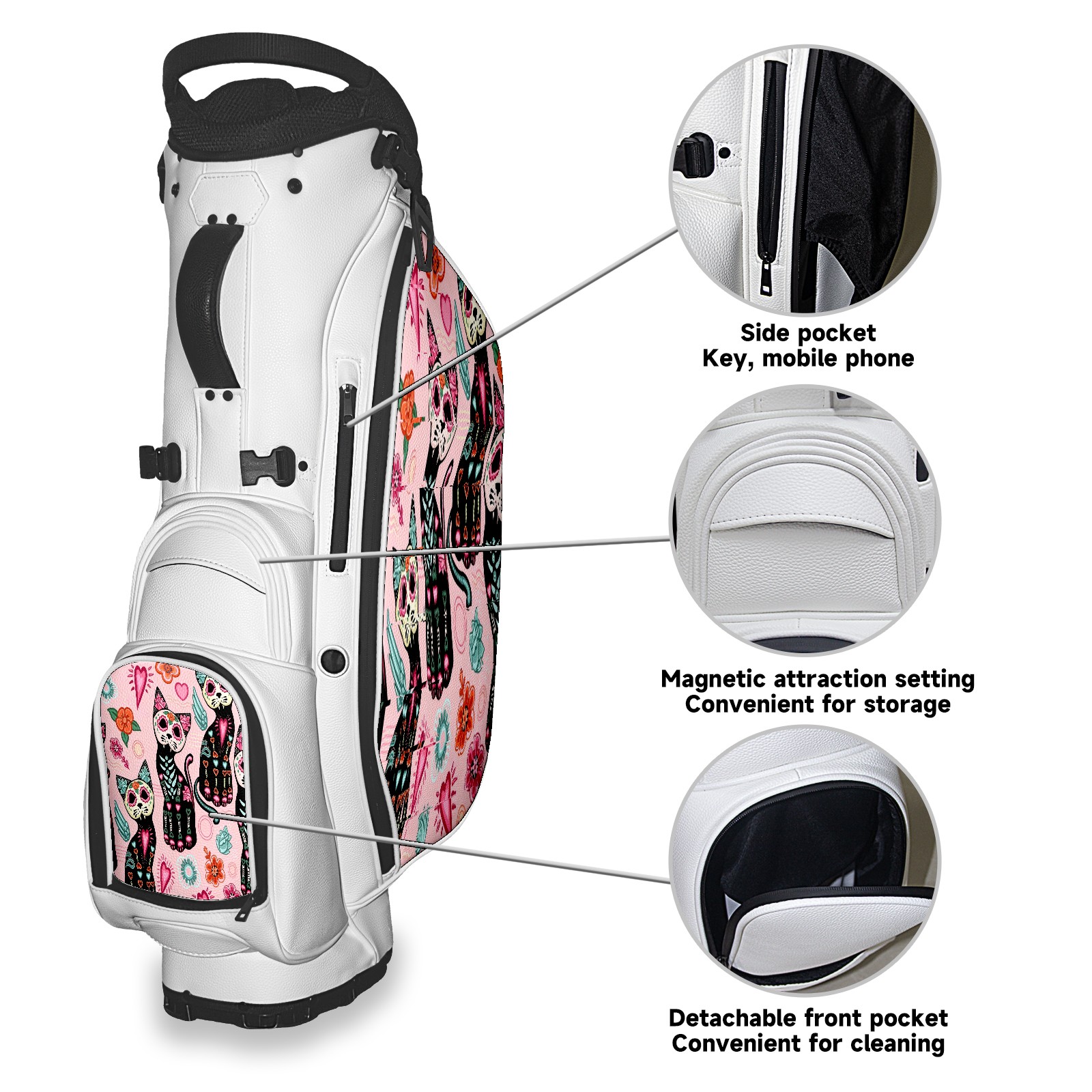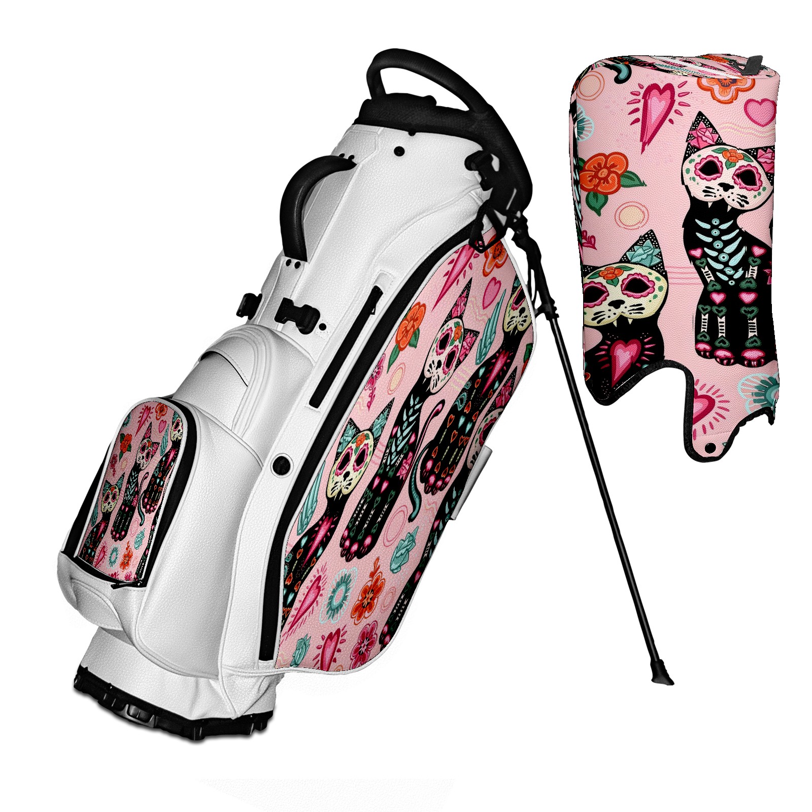 5 - Way Divider Golf Stand Bag, Lightweight Golf Bag with Padded Straps & Rain Cover for Men & Women, Ideal for Golf Courses & Driving Ranges 13Retro Pattern Cats
