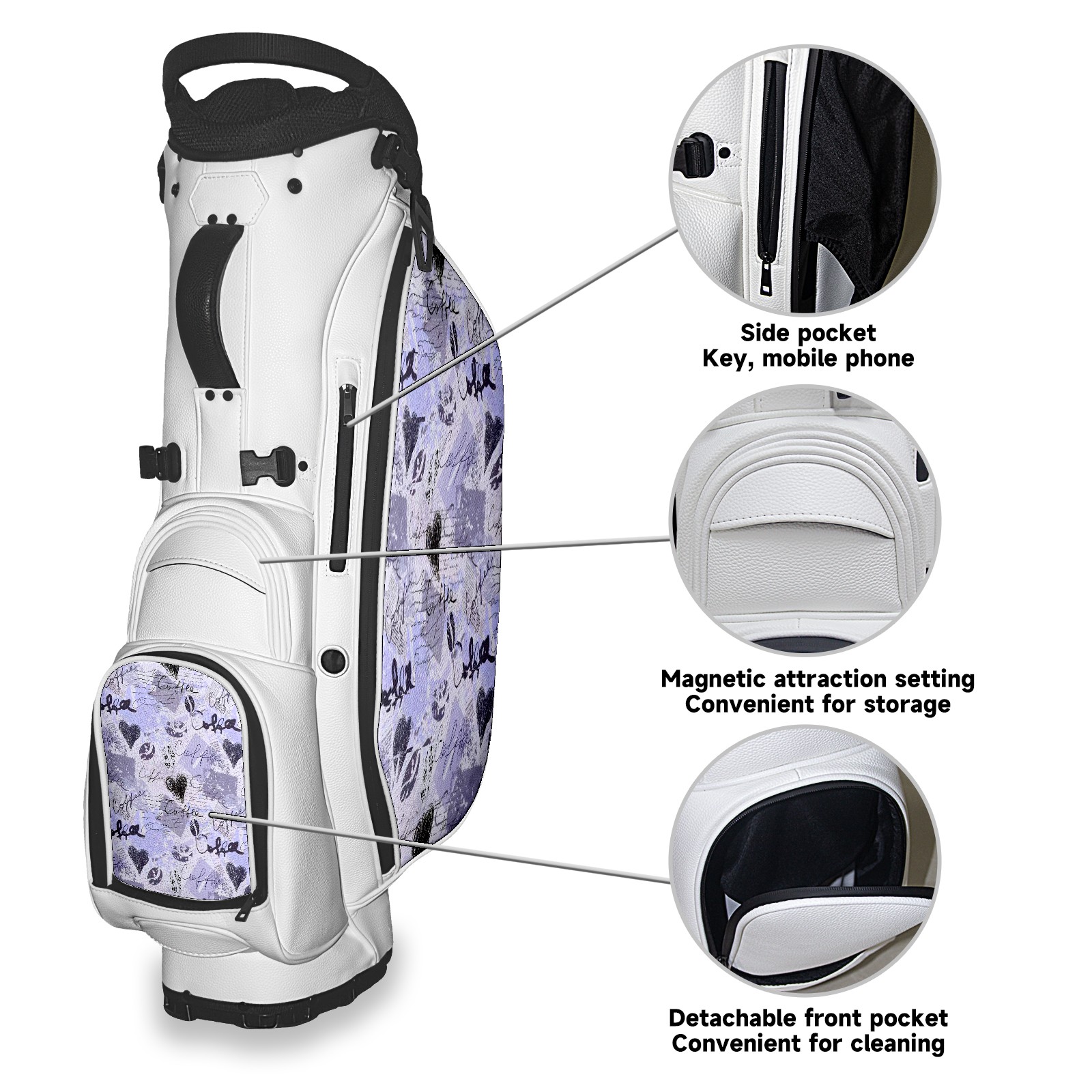 • <p>The Golf Stand Bag, designed specifically for golf enthusiasts, offers a choice of 5 - way and 14 - way top dividers. Its 5/14 - compartment design with independent full - size club compartments safeguards clubs from collisions. Equipped with a rain cover, waterproof zippered pockets (tested to resist moderate to heavy rain), and a high - performance cooler pouch that can keep drinks cold for hours, it ensures a convenient golfing experience. The bag features thickened, breathable neoprene shoulder straps and an adjustable chest buckle, reducing shoulder fatigue by 35% compared to regular bags, and its automatic aluminum alloy stand provides stable support on various terrains. Crafted from top - tier, water - resistant litchi - grain PU leather, with double - stitched edges, reliable zippers tested for over 15,000 cycles, and anti - abrasion bottom studs, it guarantees durability. You can personalize it with embroidery on the front pocket and rain cover side (15*15cm area), and it comes in classic black and white, with a matte finish and litchi - grain texture that combines business and leisure styles. Measuring 130 cm in height, 37 cm in width, and 31 cm in depth (including rain cover) and 90 cm x 31 cm x 37 cm (excluding rain cover), it strikes a balance between storage and portability, capable of holding 14 standard - sized clubs and other essentials, and it also includes a dust cover. It's truly the perfect choice for golfers.<br></p>