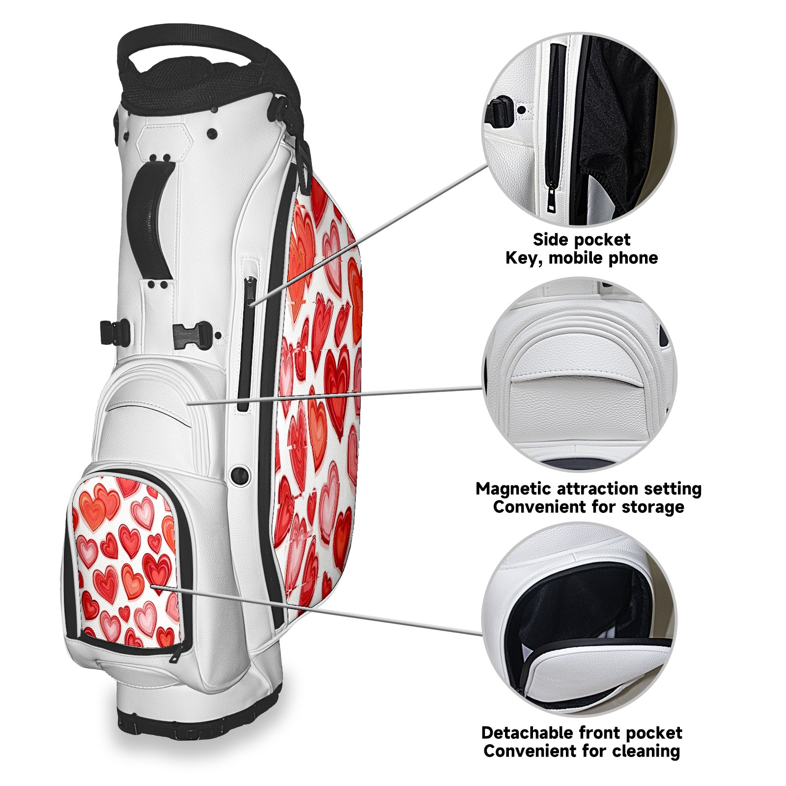 5 - Way Divider Golf Stand Bag, Lightweight Golf Bag with Padded Straps & Rain Cover for Men & Women, Ideal for Golf Courses & Driving Ranges Pink Heart Love