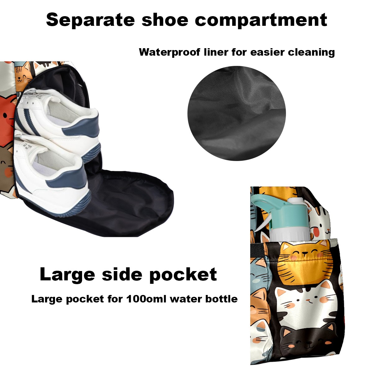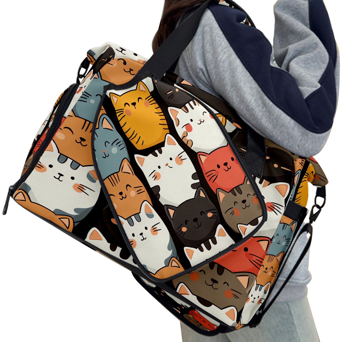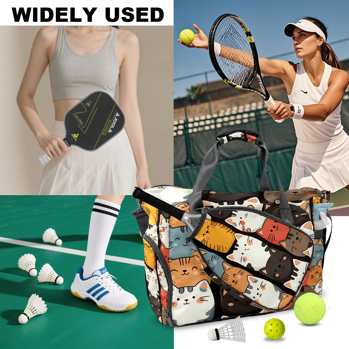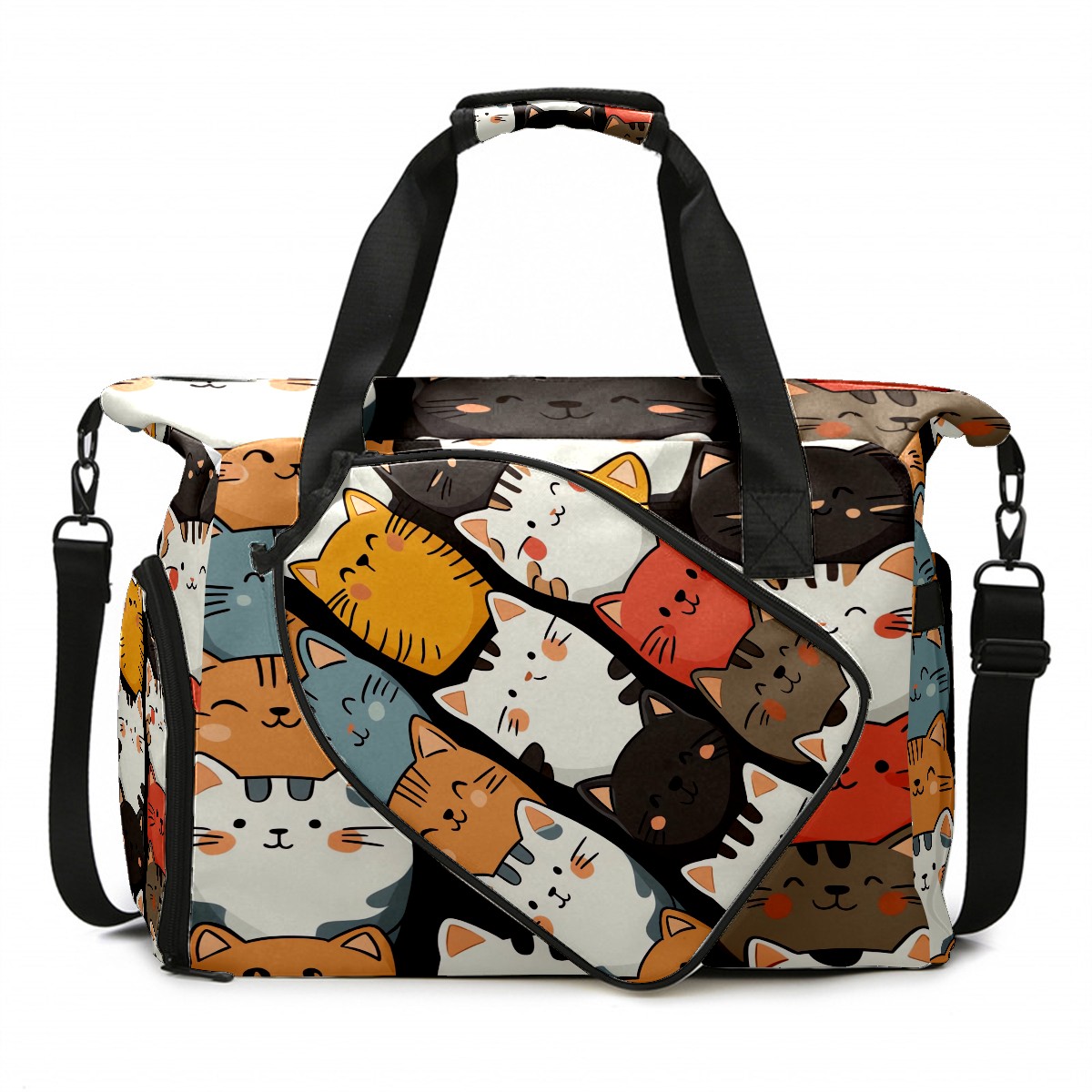 Pickleball Bag for Men Women with Exterior Paddle Pocket and Separate Shoe Compartment, Handbag, Shoulder Bag - Ideal Pickleball Gift Colorful Stackable Cats