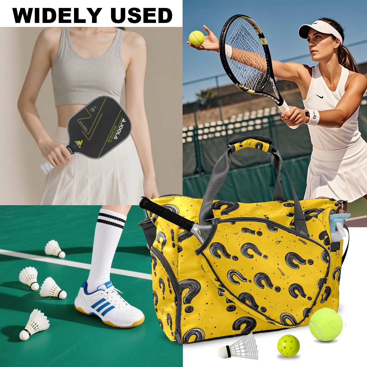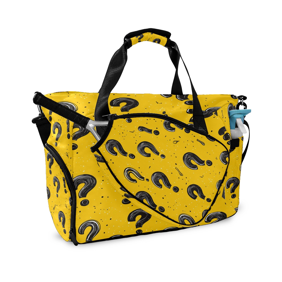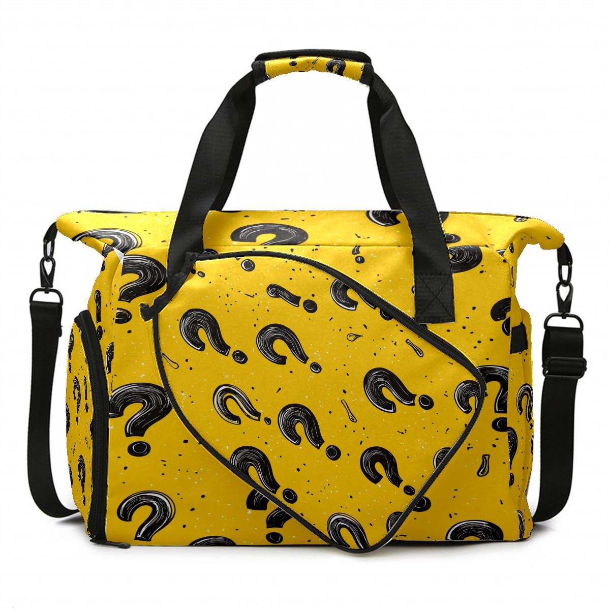 Pickleball Bag for Men Women with Exterior Paddle Pocket and Separate Shoe Compartment, Handbag, Shoulder Bag - Ideal Pickleball Gift Black Question Mark