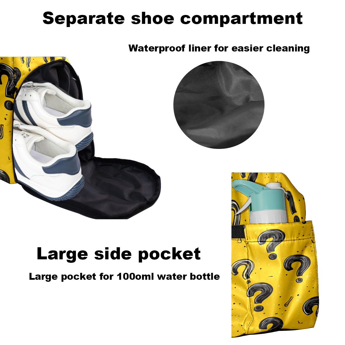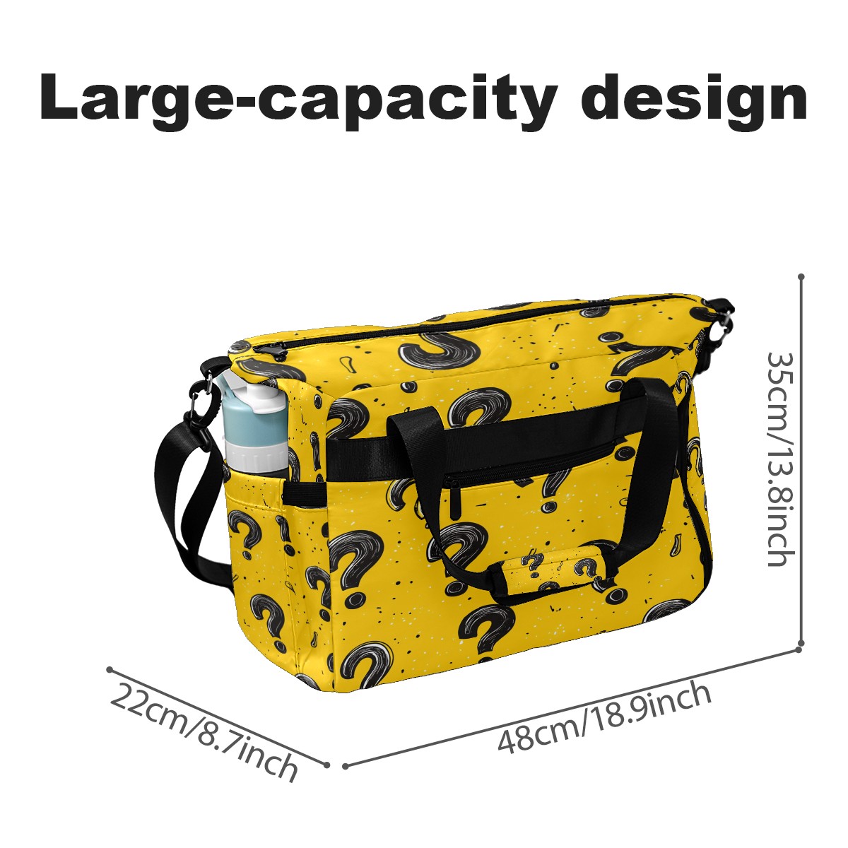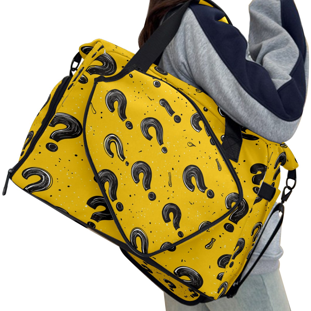 Pickleball Bag for Men Women with Exterior Paddle Pocket and Separate Shoe Compartment, Handbag, Shoulder Bag - Ideal Pickleball Gift Black Question Mark