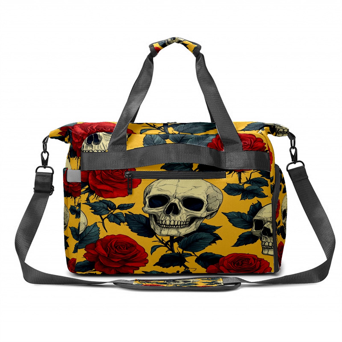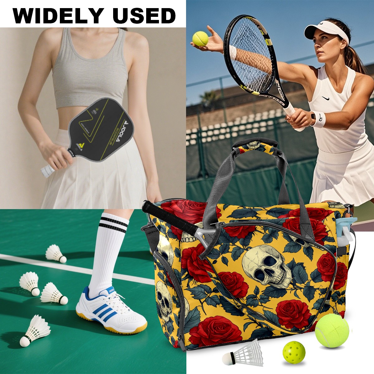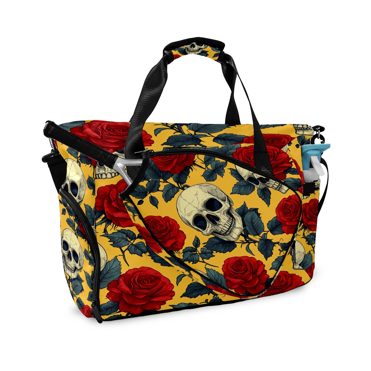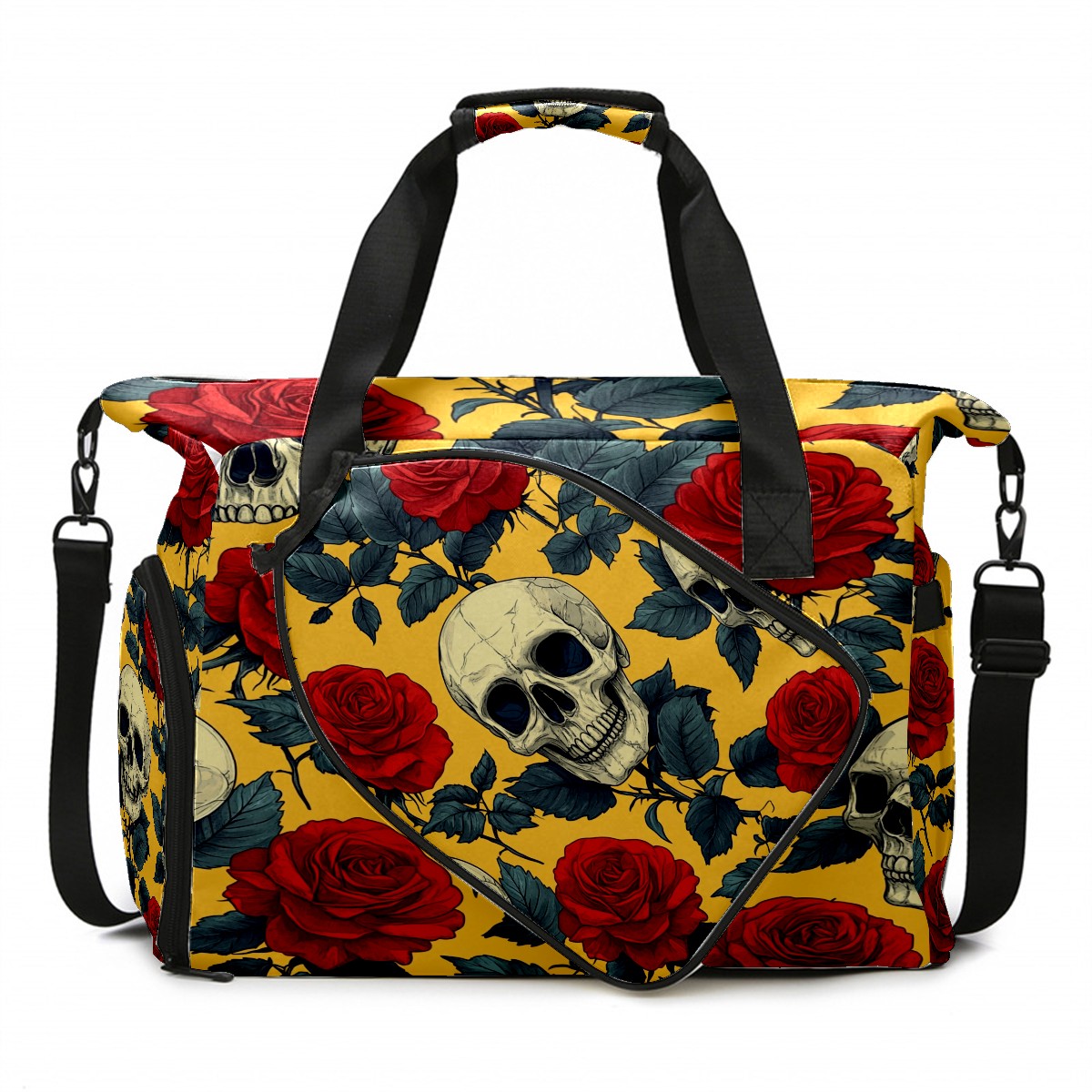 Pickleball Bag for Men Women with Exterior Paddle Pocket and Separate Shoe Compartment, Handbag, Shoulder Bag - Ideal Pickleball Gift Red Rose Skull 1