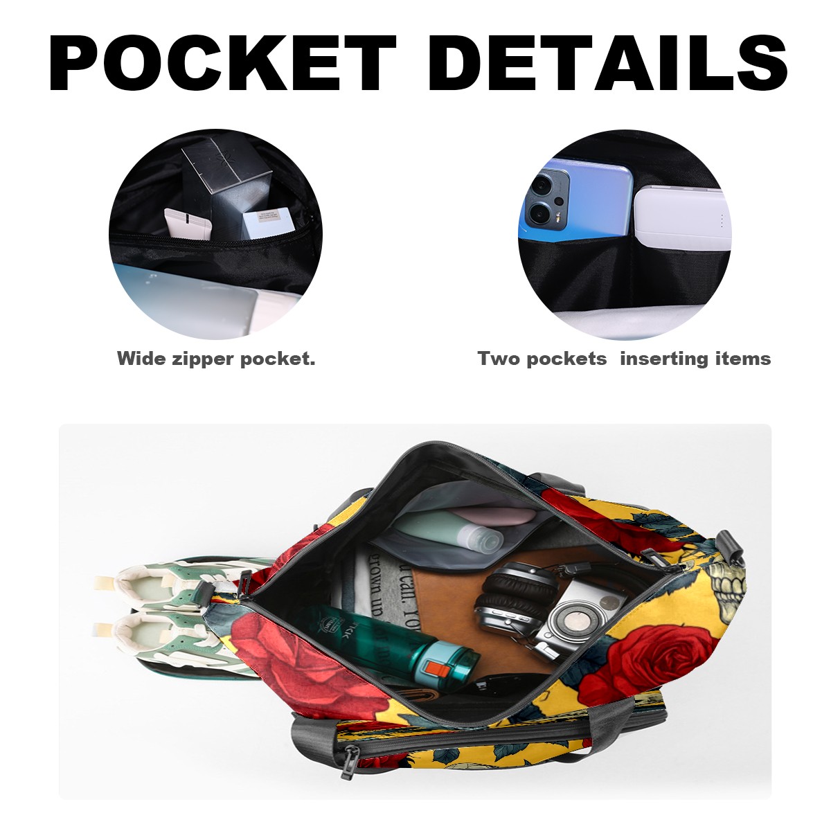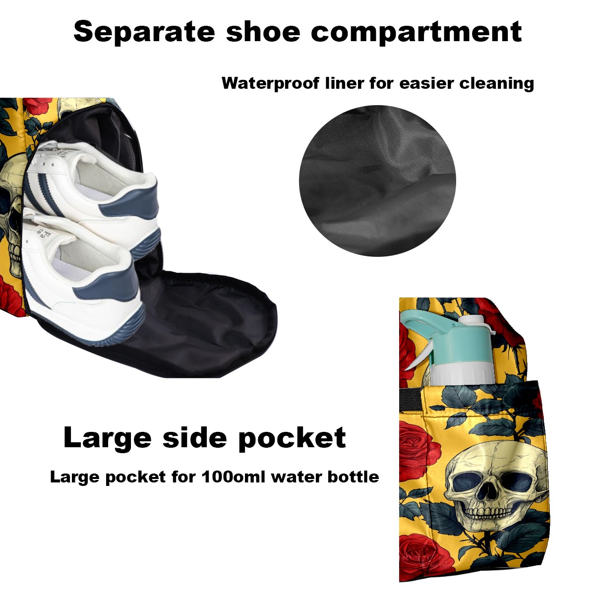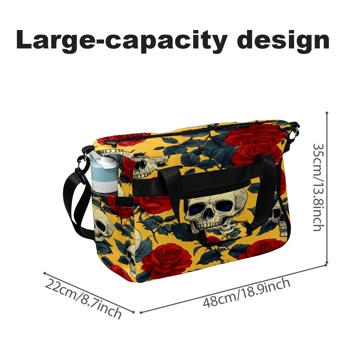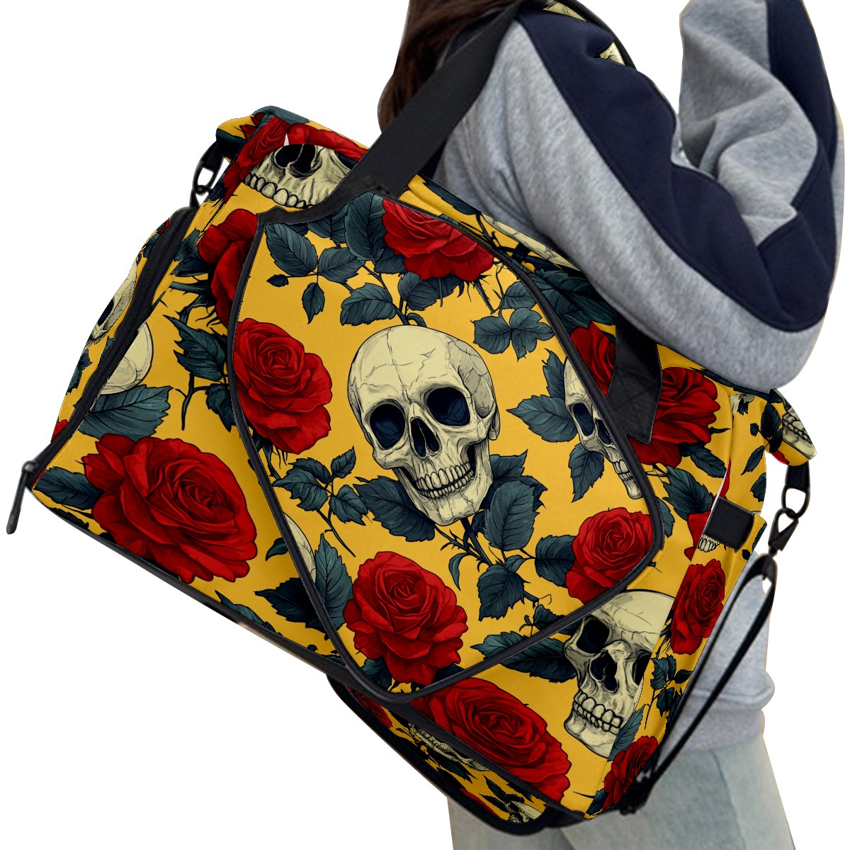 Pickleball Bag for Men Women with Exterior Paddle Pocket and Separate Shoe Compartment, Handbag, Shoulder Bag - Ideal Pickleball Gift Red Rose Skull 1