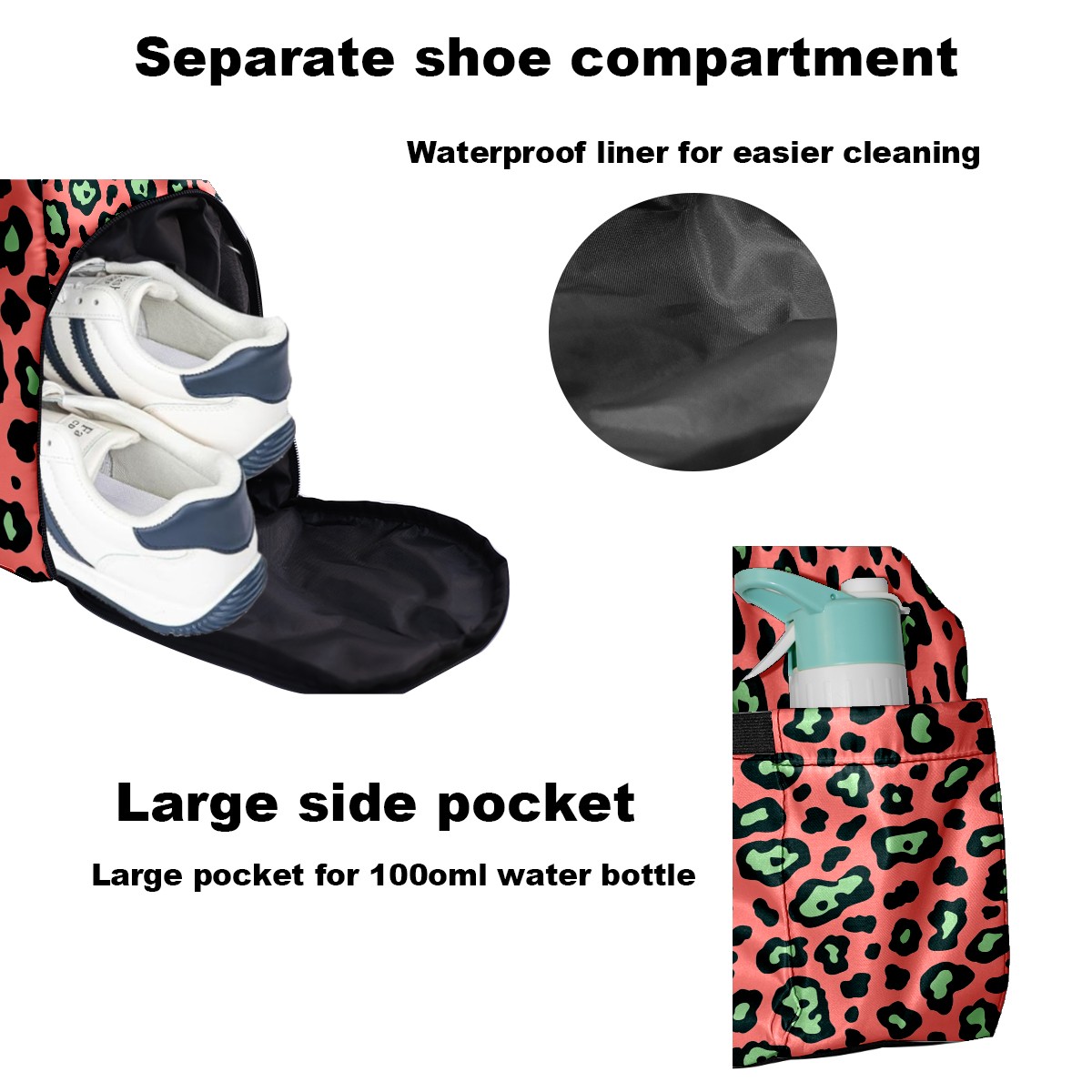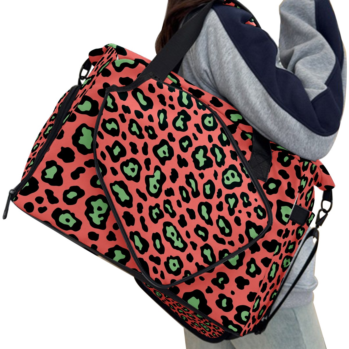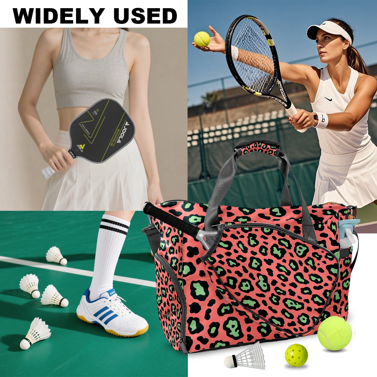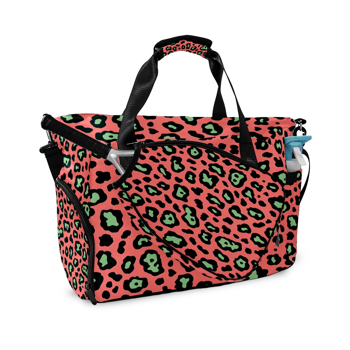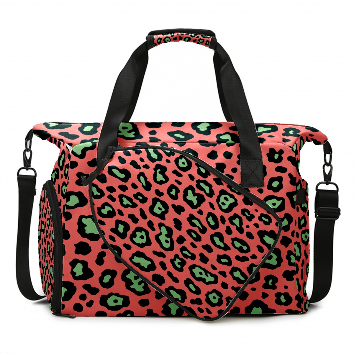 Pickleball Bag for Men Women with Exterior Paddle Pocket and Separate Shoe Compartment, Handbag, Shoulder Bag - Ideal Pickleball Gift Pink Black Leopard Print
