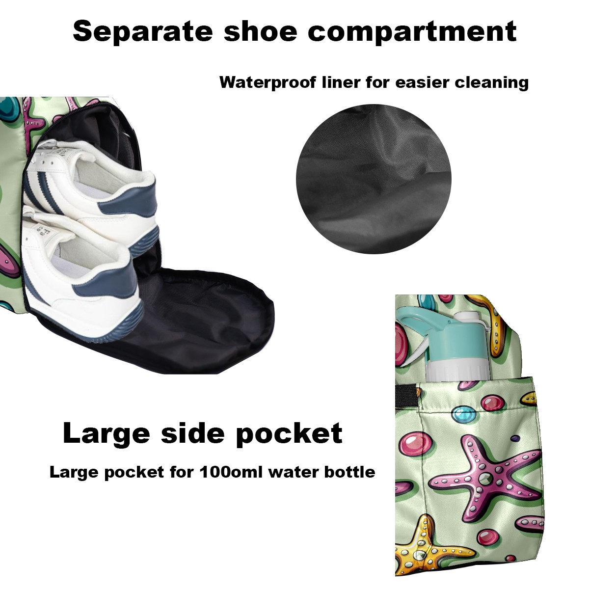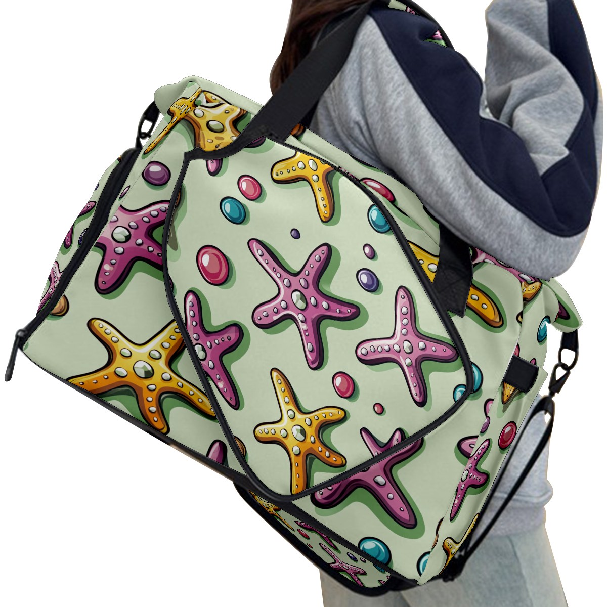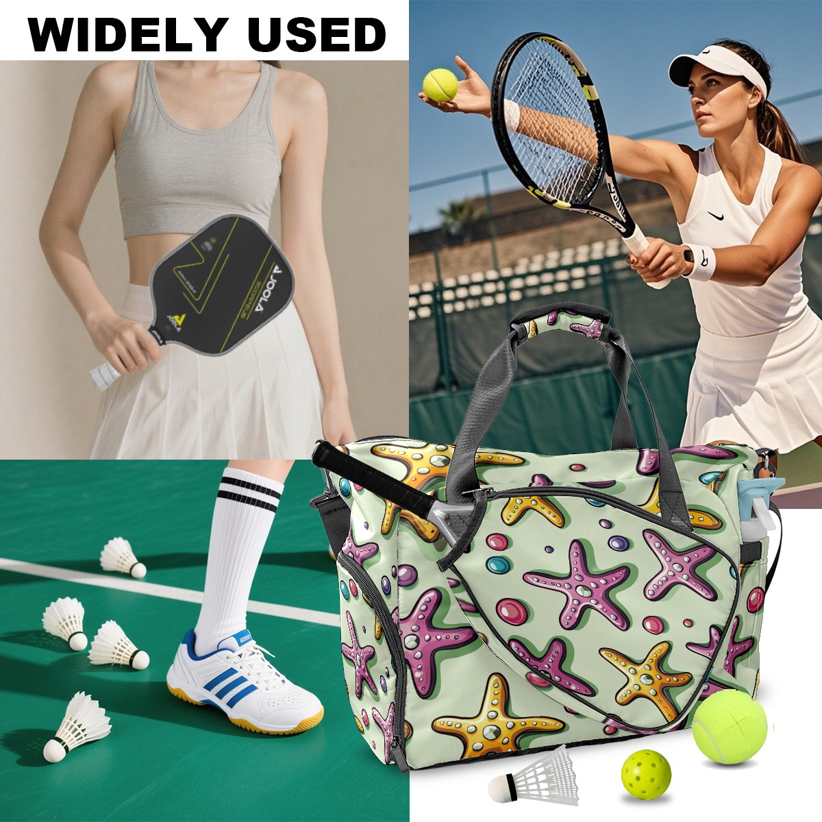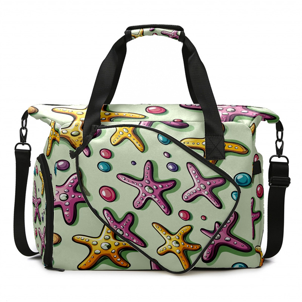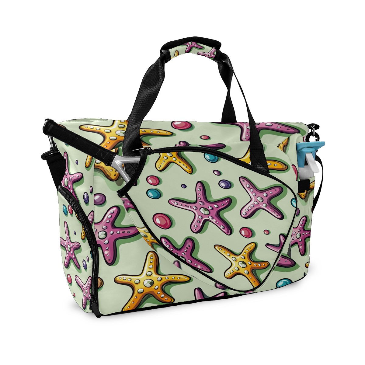 Pickleball Bag for Men Women with Exterior Paddle Pocket and Separate Shoe Compartment, Handbag, Shoulder Bag - Ideal Pickleball Gift Macaron Starfish