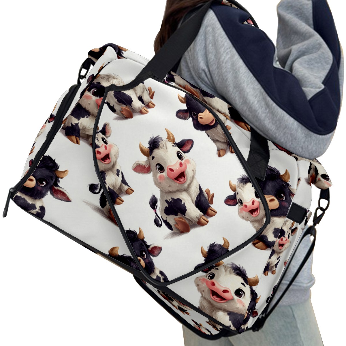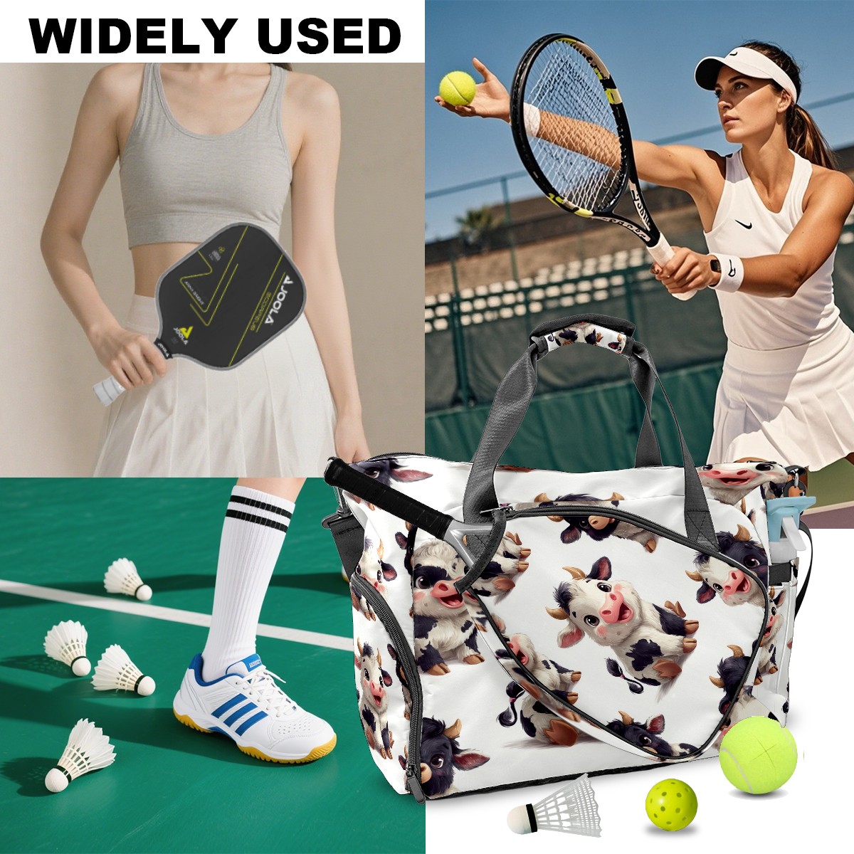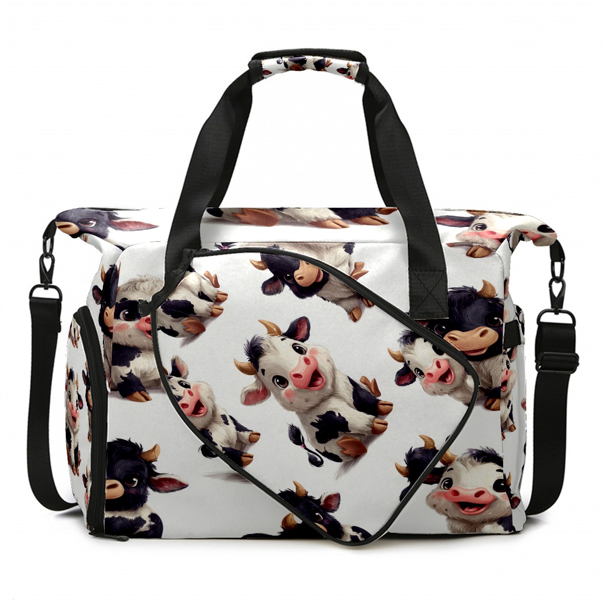 Pickleball Bag for Men Women with Exterior Paddle Pocket and Separate Shoe Compartment, Handbag, Shoulder Bag - Ideal Pickleball Gift Cute Cow