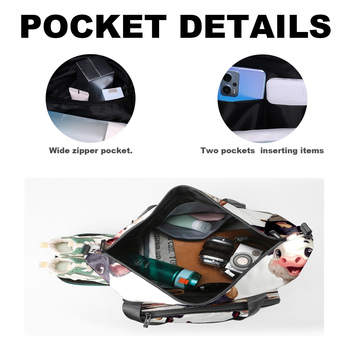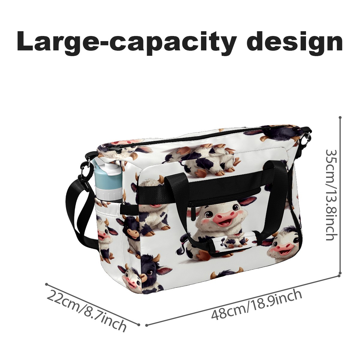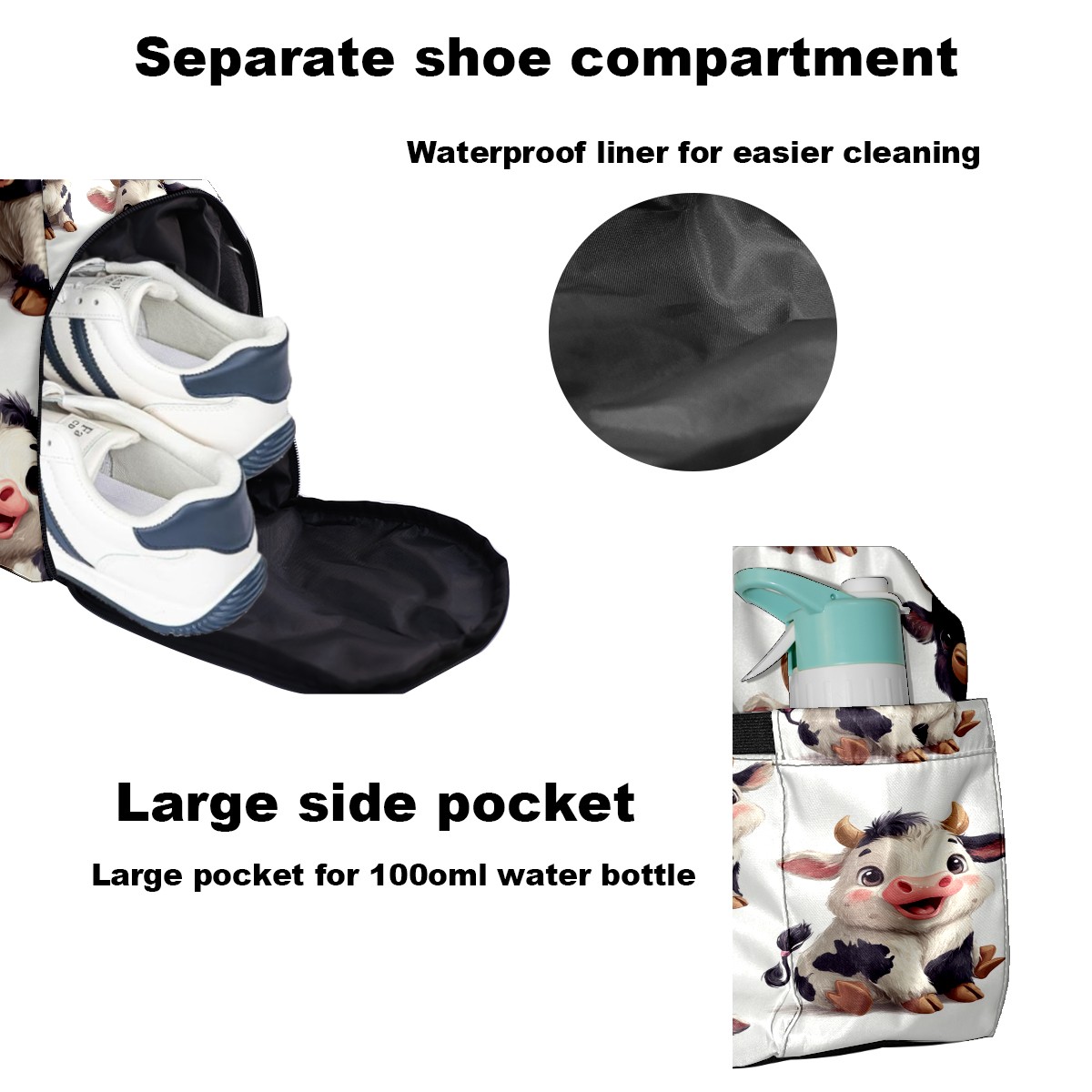 Pickleball Bag for Men Women with Exterior Paddle Pocket and Separate Shoe Compartment, Handbag, Shoulder Bag - Ideal Pickleball Gift Cute Cow