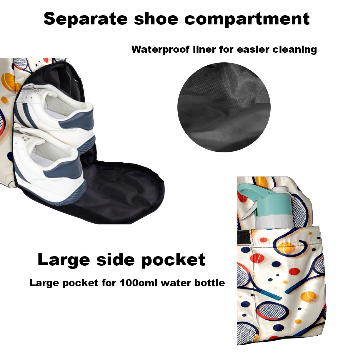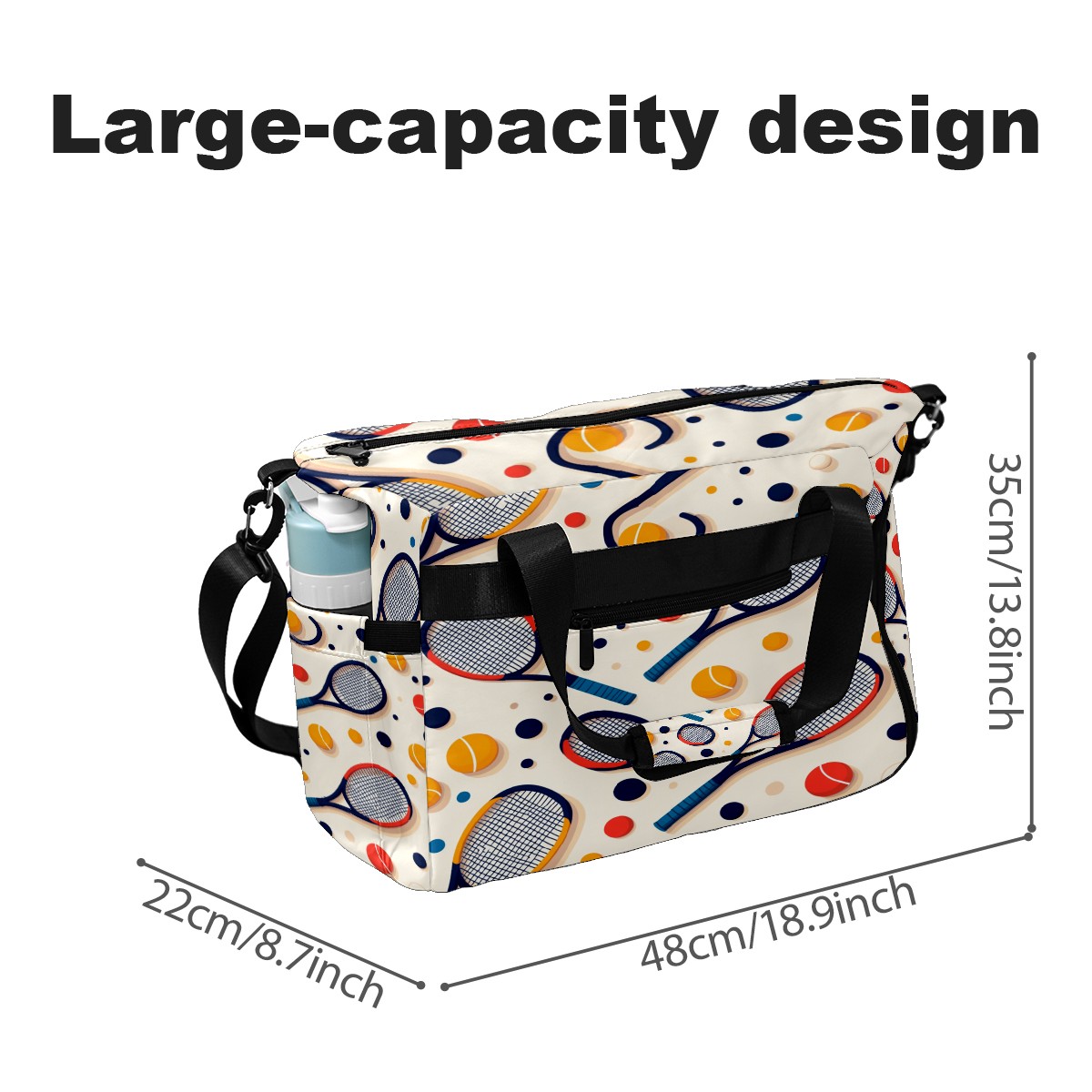 • <p>This pickleball bag measures 8.7in x 18.9in x 13.8in and features a practical and versatile design. It includes dedicated racket/gear pockets, a ventilated shoe compartment (fits size 10 sneakers), and a waterproof wet bag to separate items and isolate odors. A fence hook allows you to hang the bag off the ground for easy access. It can be carried by hand or crossbody, making it suitable for both men and women. It's perfect for not only pickleball, but also badminton, squash, fitness, and short trips. It combines fashion and functionality, making it a perfect gift for birthdays, Mother's Day, and other occasions.</p>