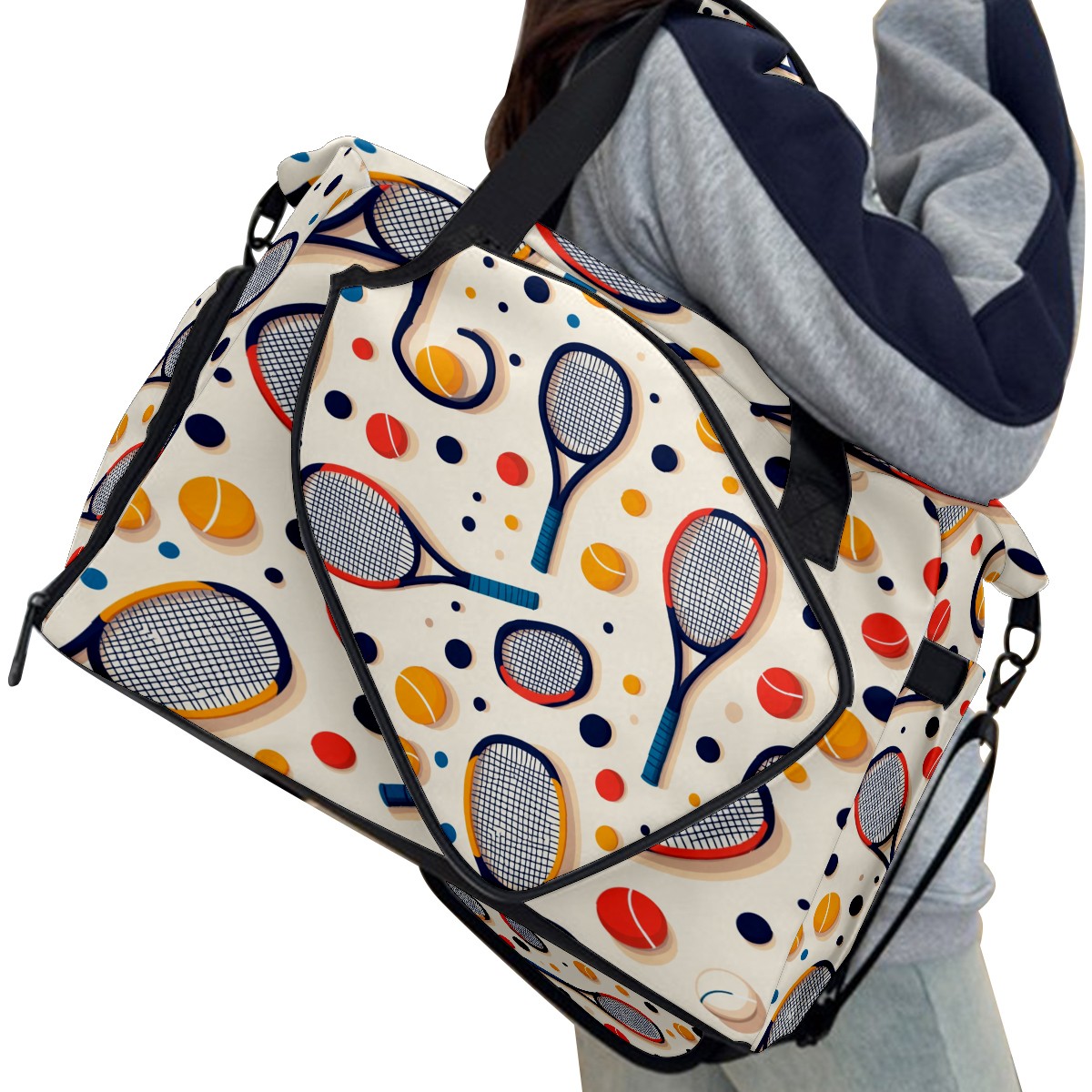 <p>This pickleball bag measures 8.7in x 18.9in x 13.8in and features a practical and versatile design. It includes dedicated racket/gear pockets, a ventilated shoe compartment (fits size 10 sneakers), and a waterproof wet bag to separate items and isolate odors. A fence hook allows you to hang the bag off the ground for easy access. It can be carried by hand or crossbody, making it suitable for both men and women. It's perfect for not only pickleball, but also badminton, squash, fitness, and short trips. It combines fashion and functionality, making it a perfect gift for birthdays, Mother's Day, and other occasions.</p>