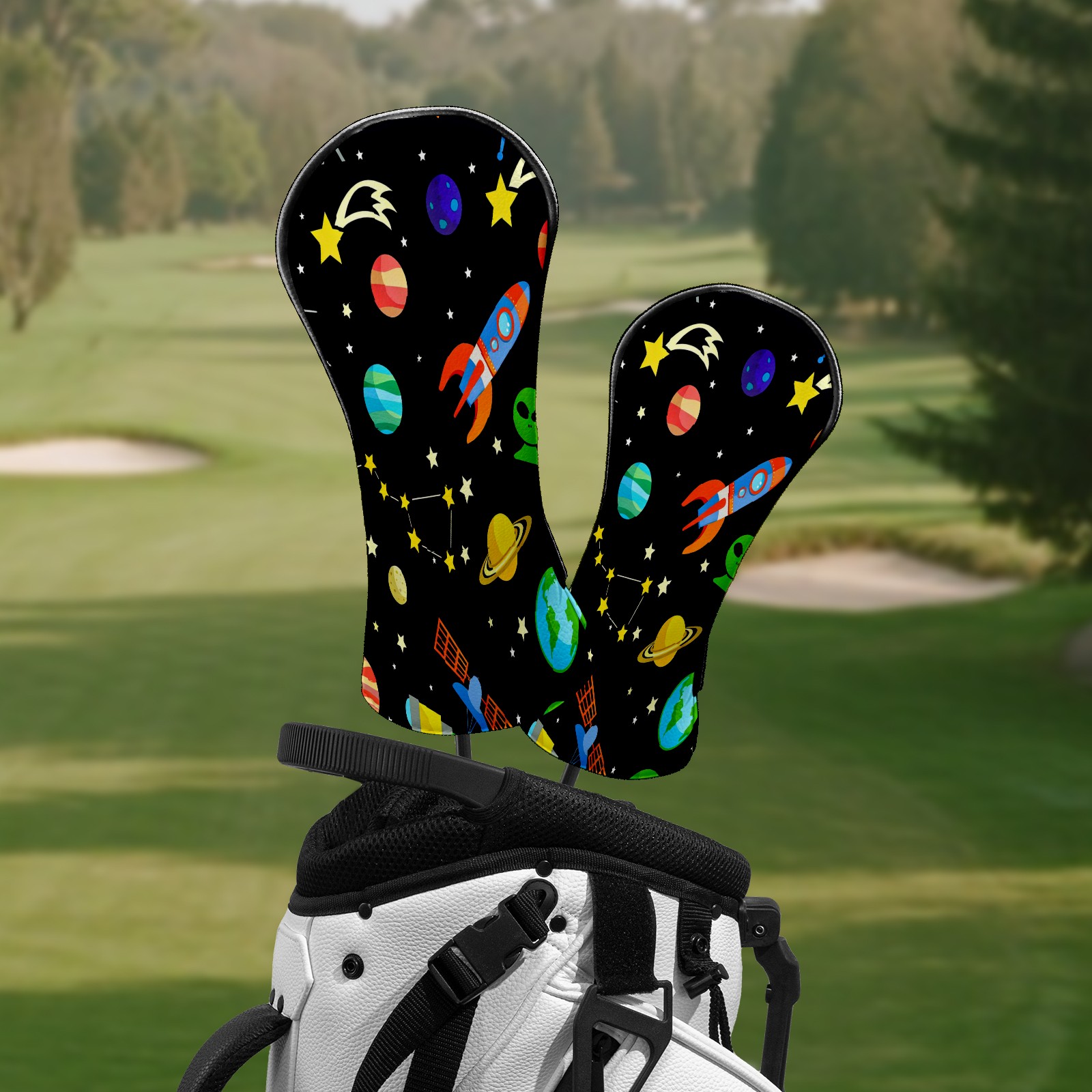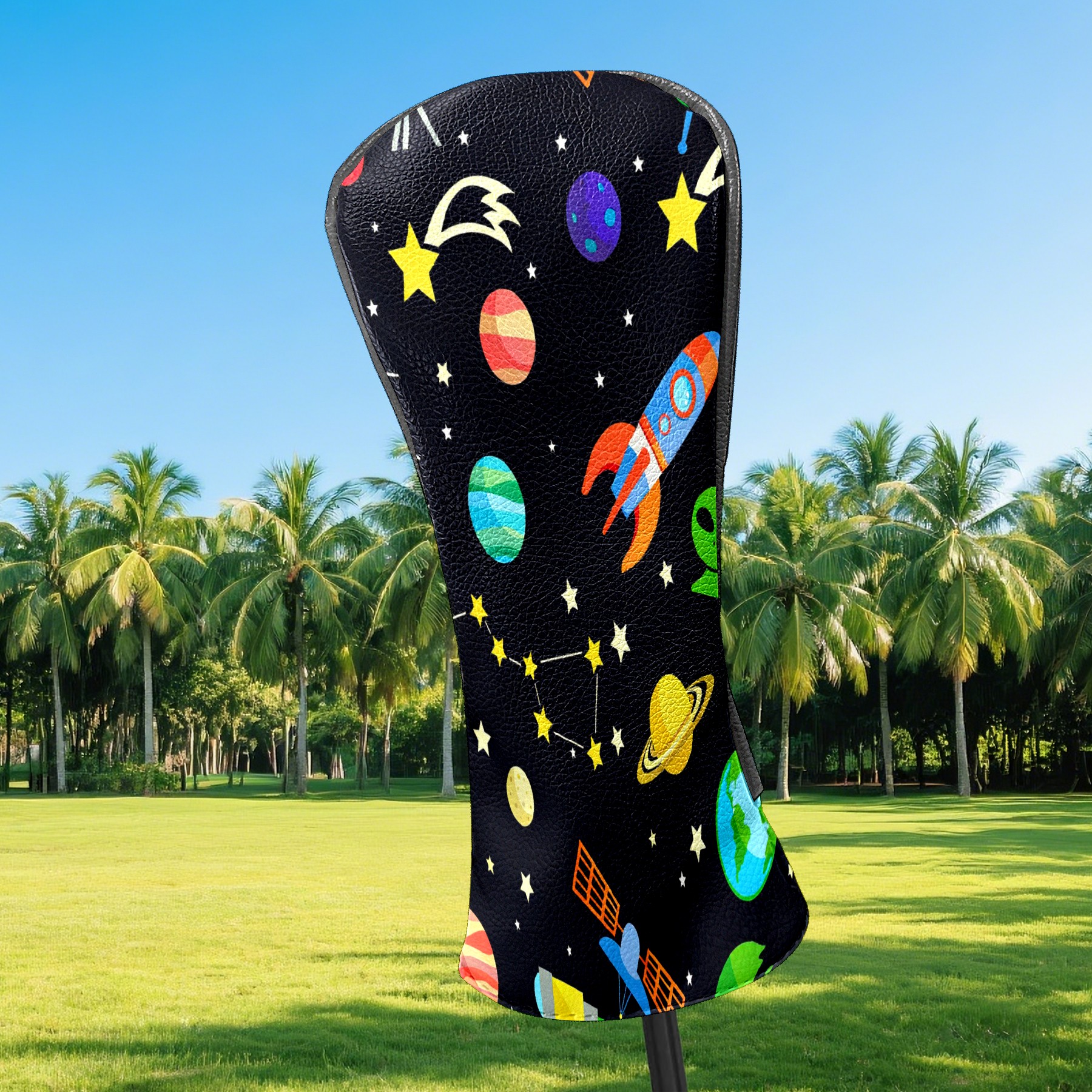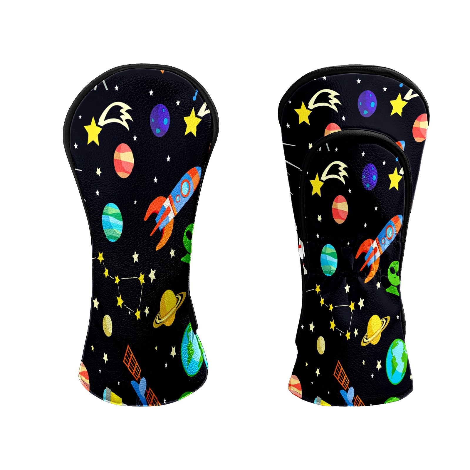 Counullo Golf Club Headcovers - Playful Space Black Premium PU Leather with Plush Lining for Driver & Fairway Woods, No-Slip Fit for All Clubs, Novelty Gift for Men & Women