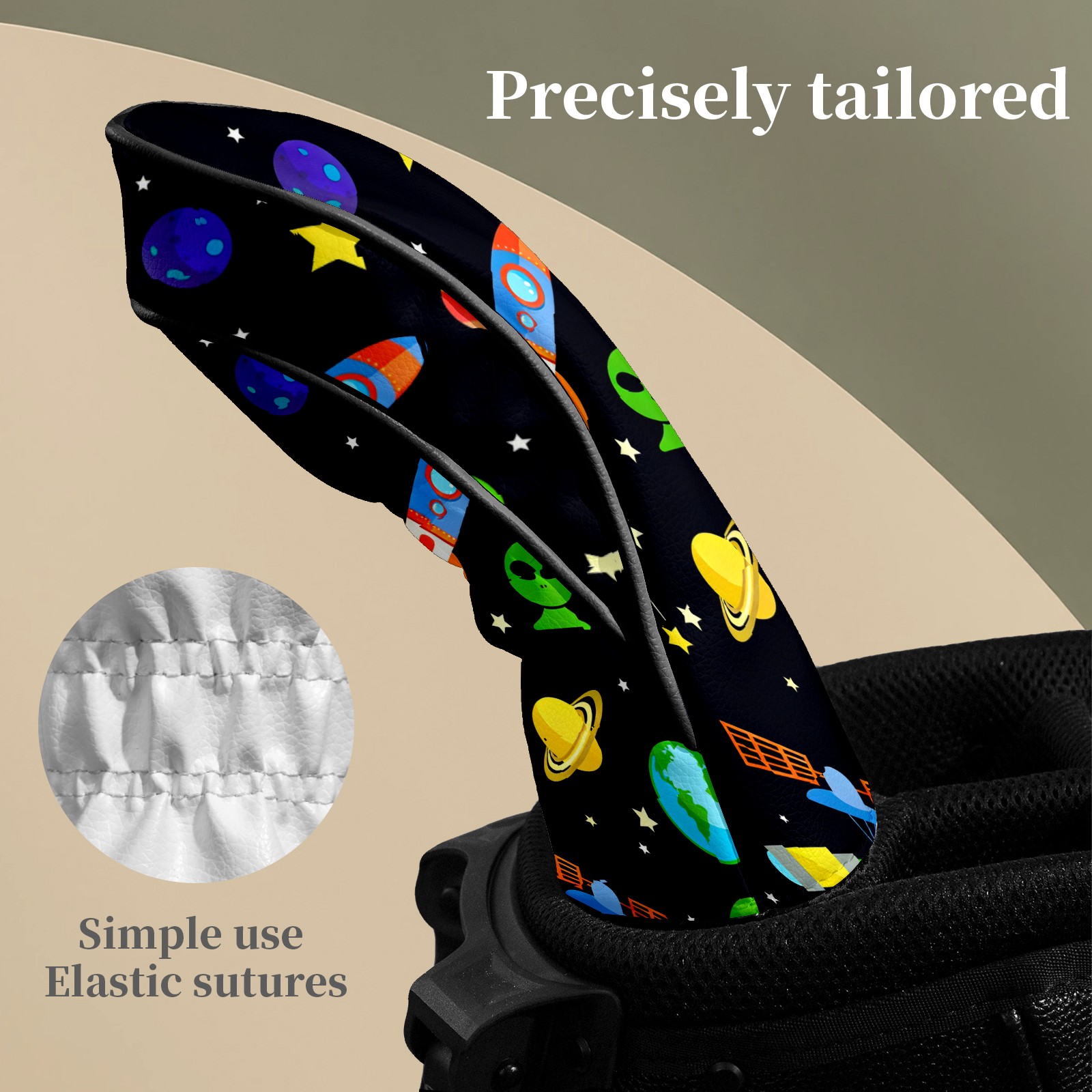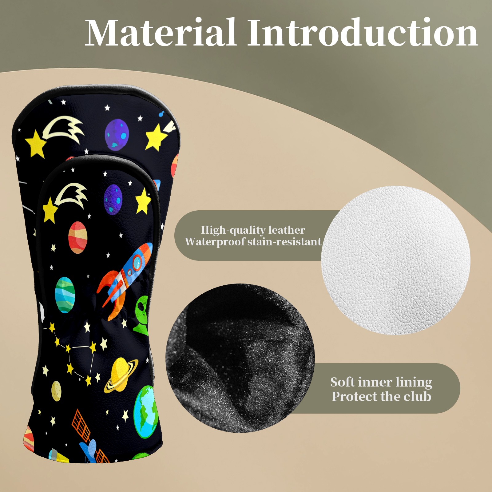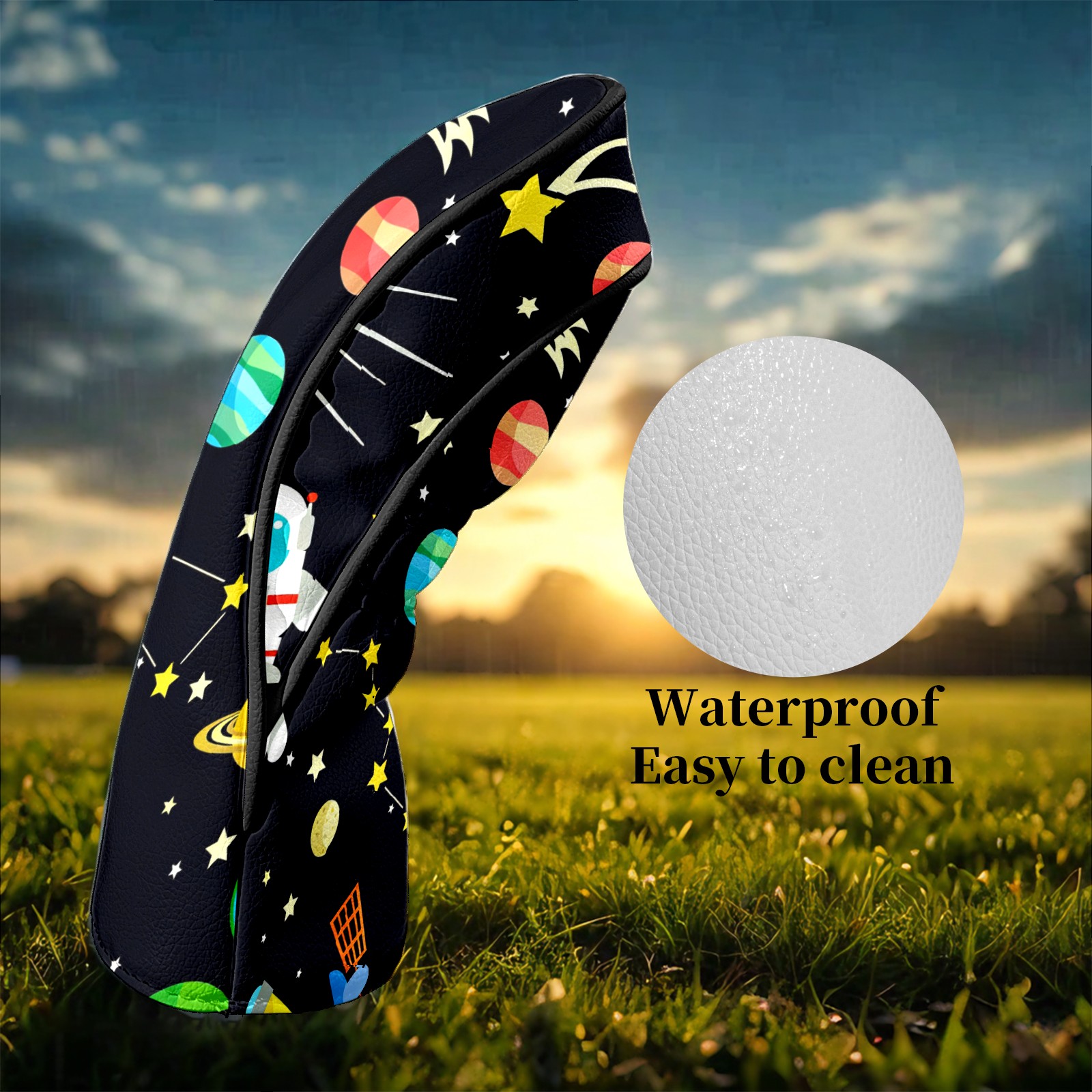 Counullo Golf Club Headcovers - Playful Space Black Premium PU Leather with Plush Lining for Driver & Fairway Woods, No-Slip Fit for All Clubs, Novelty Gift for Men & Women