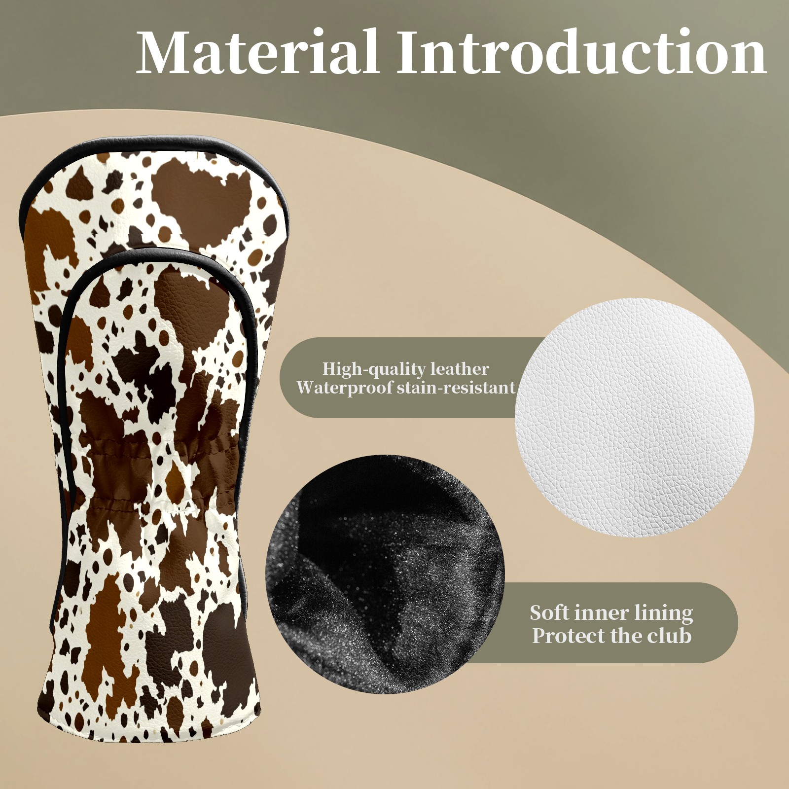 Counullo Golf Club Headcovers - Soft Camouflage Brown Premium PU Leather with Plush Lining for Driver & Fairway Woods, No-Slip Fit for All Clubs, Novelty Gift for Men & Women
