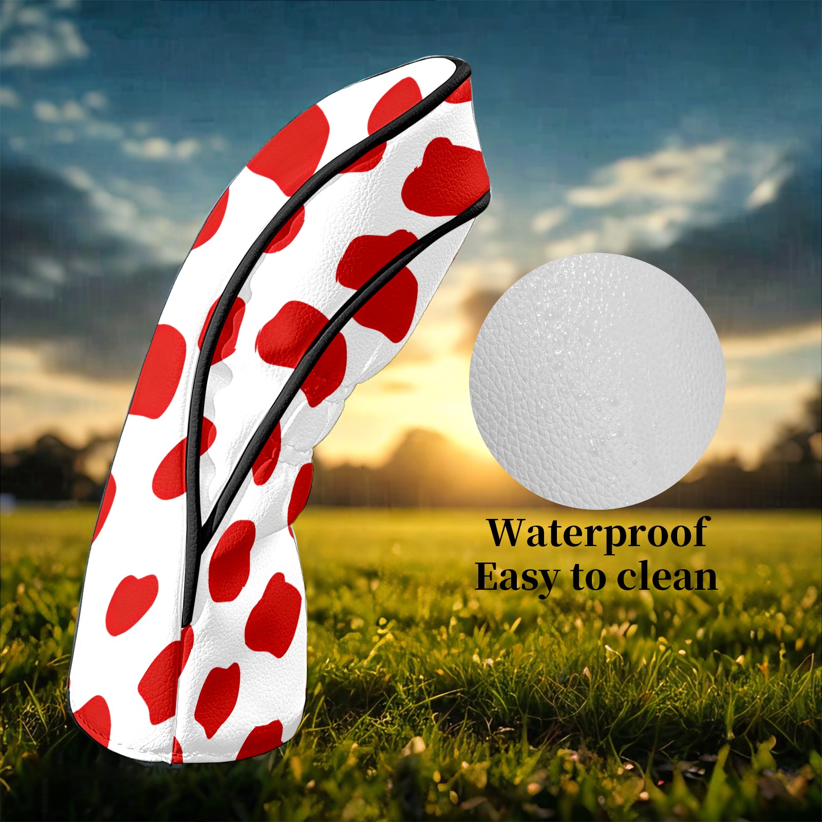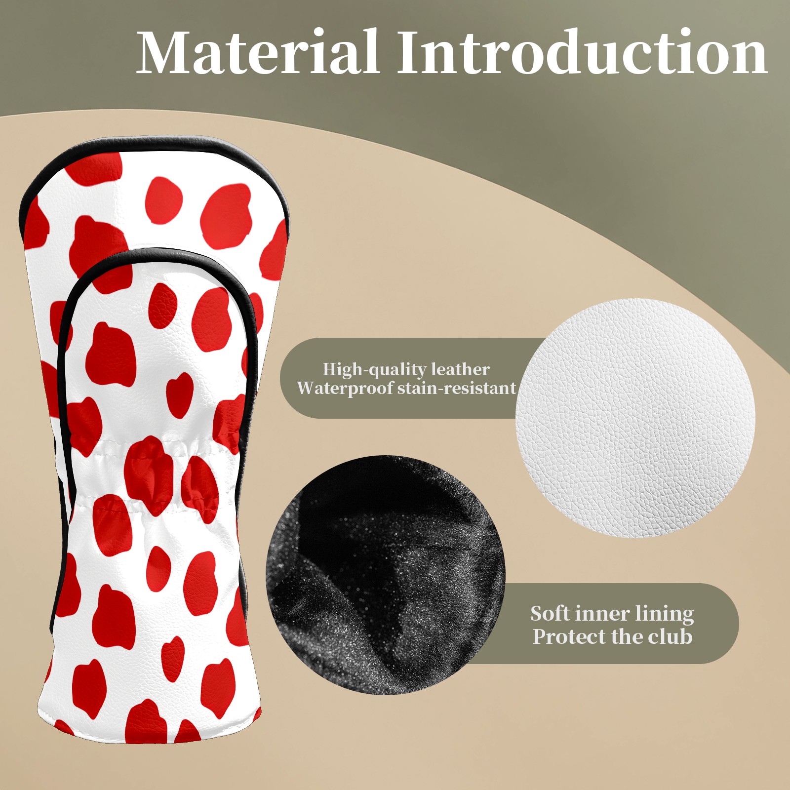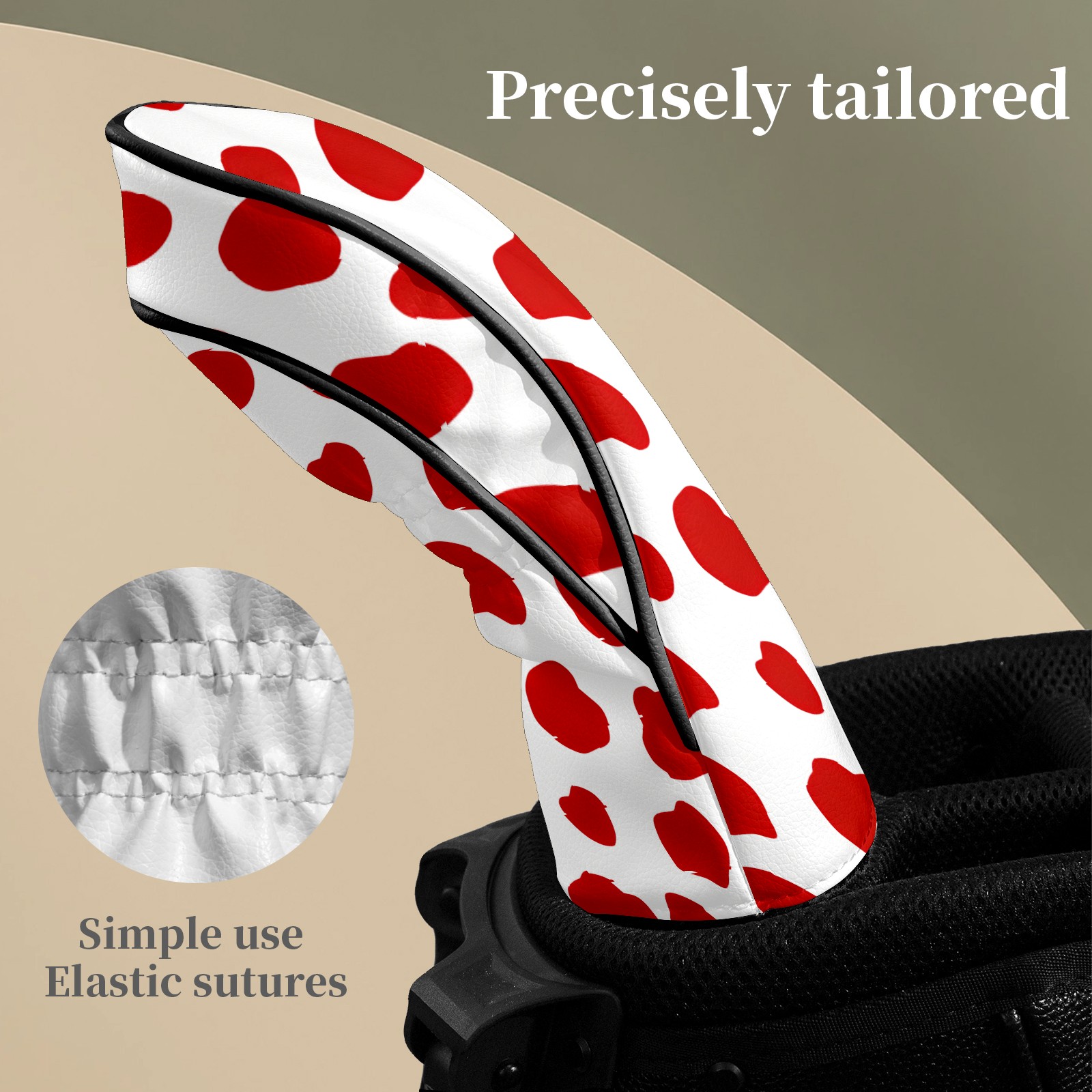 Counullo Golf Club Headcovers - Playful Dot Red Premium PU Leather with Plush Lining for Driver & Fairway Woods, No-Slip Fit for All Clubs, Novelty Gift for Men & Women