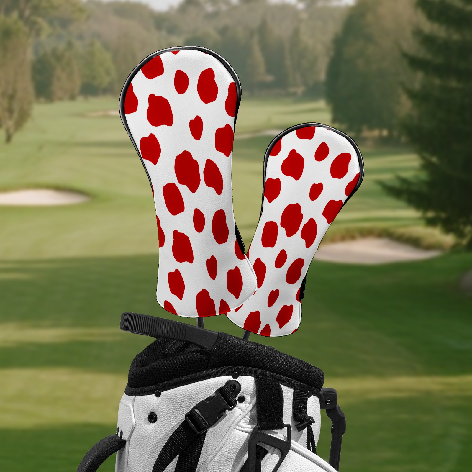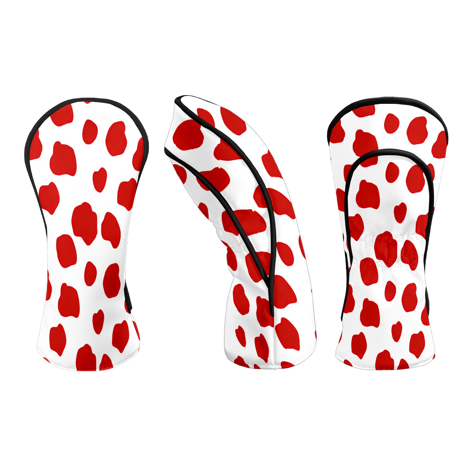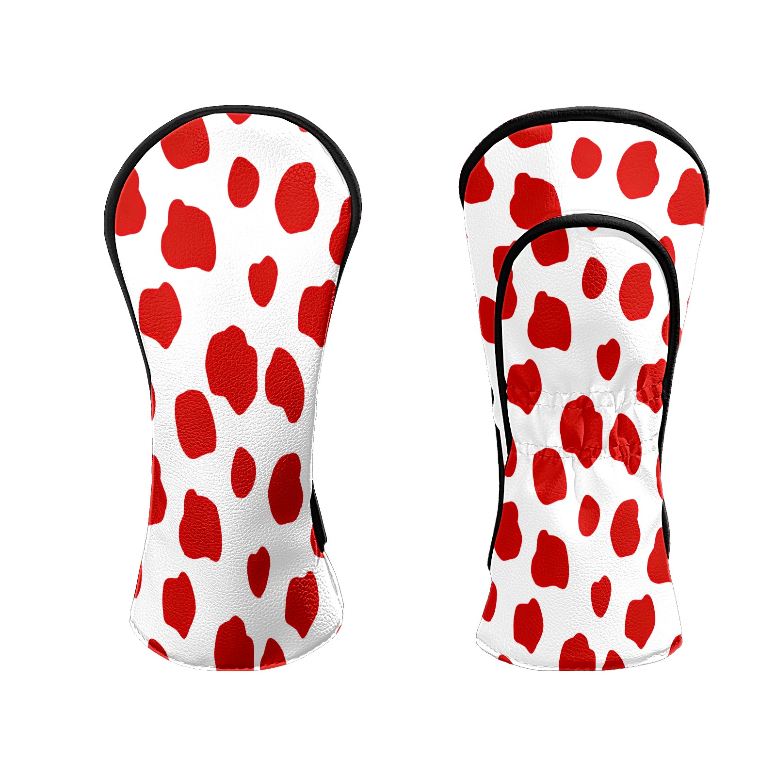 Counullo Golf Club Headcovers - Playful Dot Red Premium PU Leather with Plush Lining for Driver & Fairway Woods, No-Slip Fit for All Clubs, Novelty Gift for Men & Women