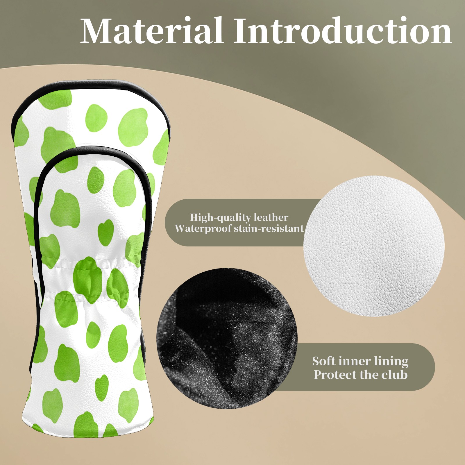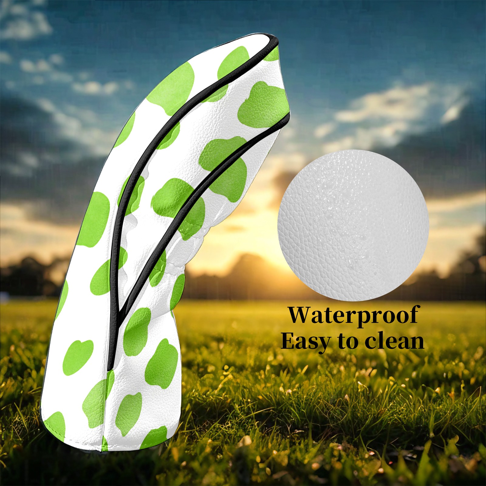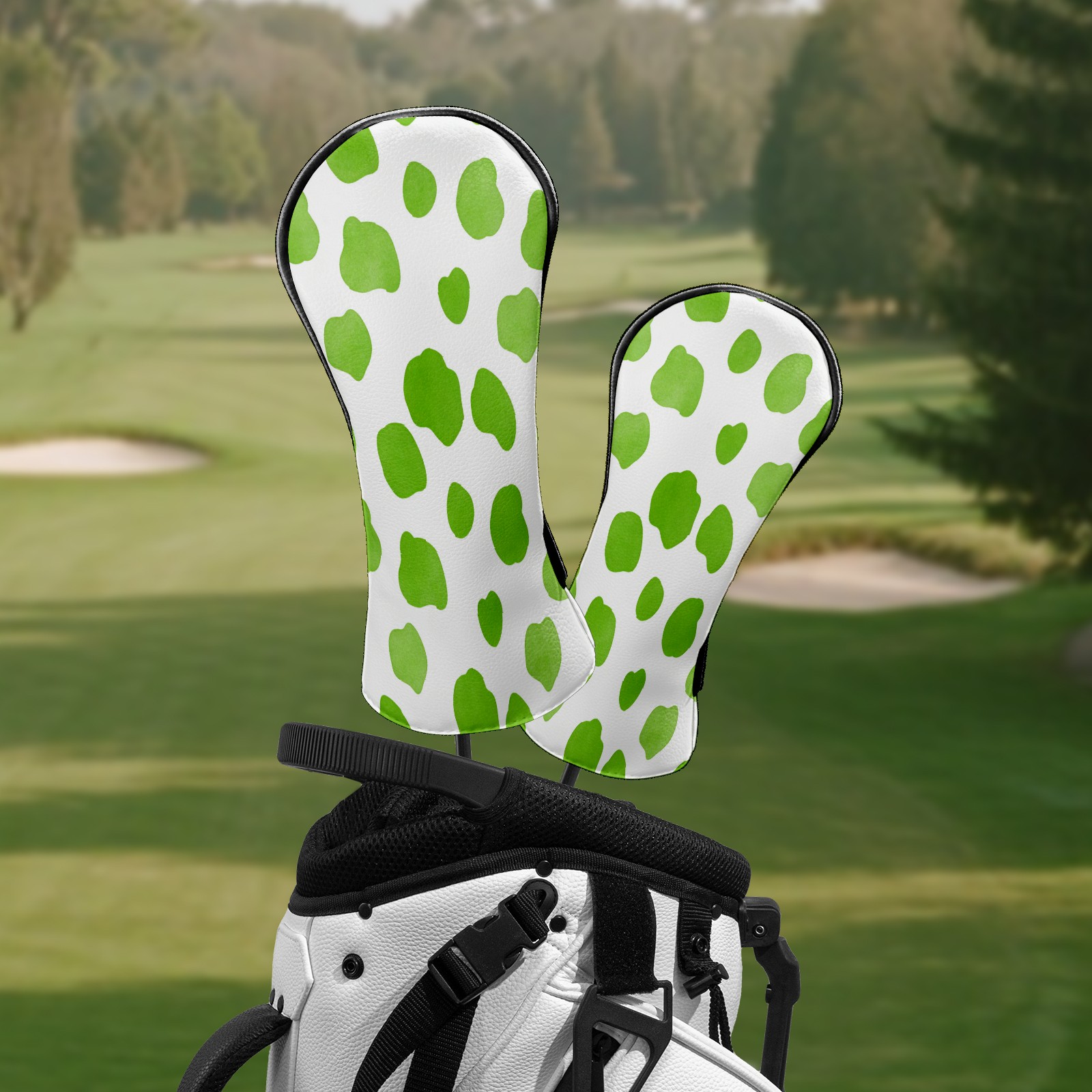 Counullo Golf Club Headcovers - Fresh Dot Green Premium PU Leather with Plush Lining for Driver & Fairway Woods, No-Slip Fit for All Clubs, Novelty Gift for Men & Women