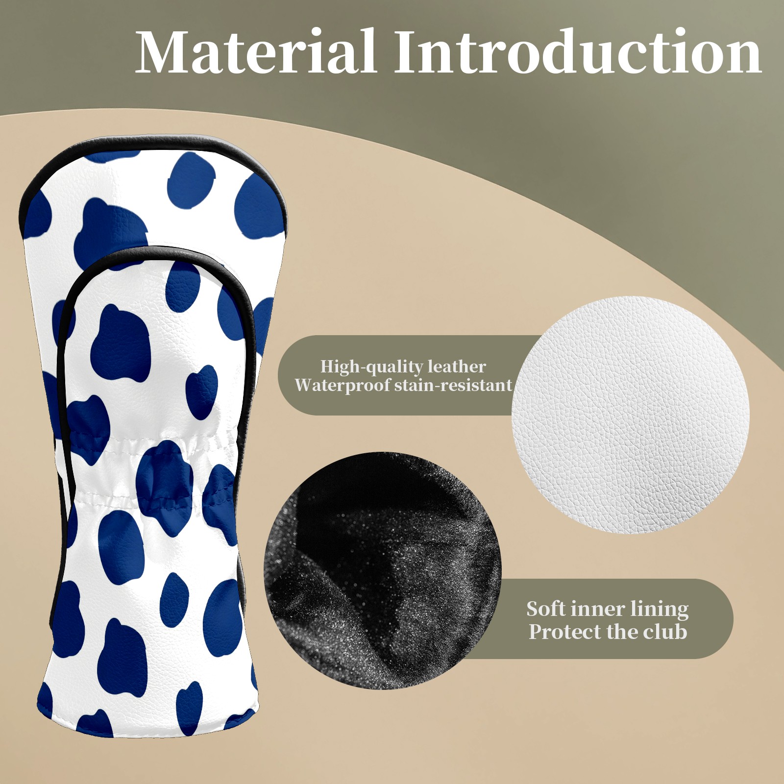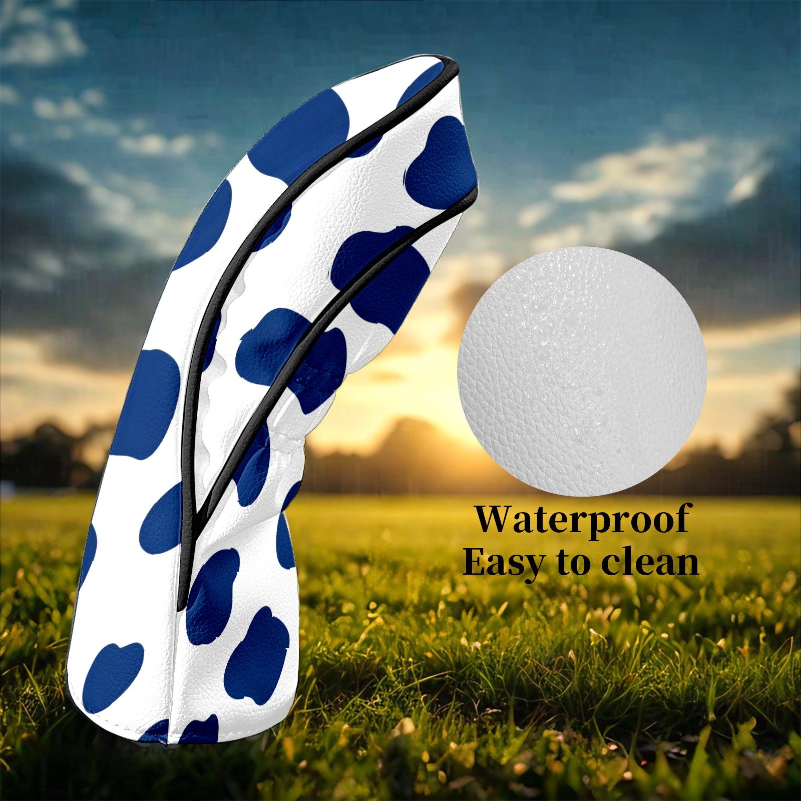 Counullo Golf Club Headcovers - Fresh Dot Blue Premium PU Leather with Plush Lining for Driver & Fairway Woods, No-Slip Fit for All Clubs, Novelty Gift for Men & Women