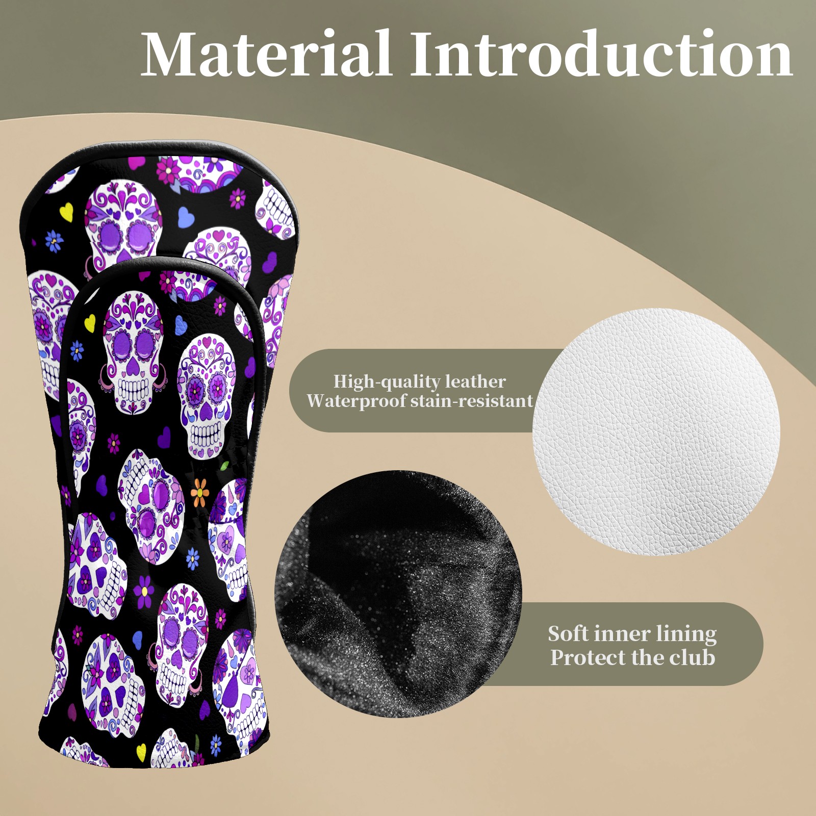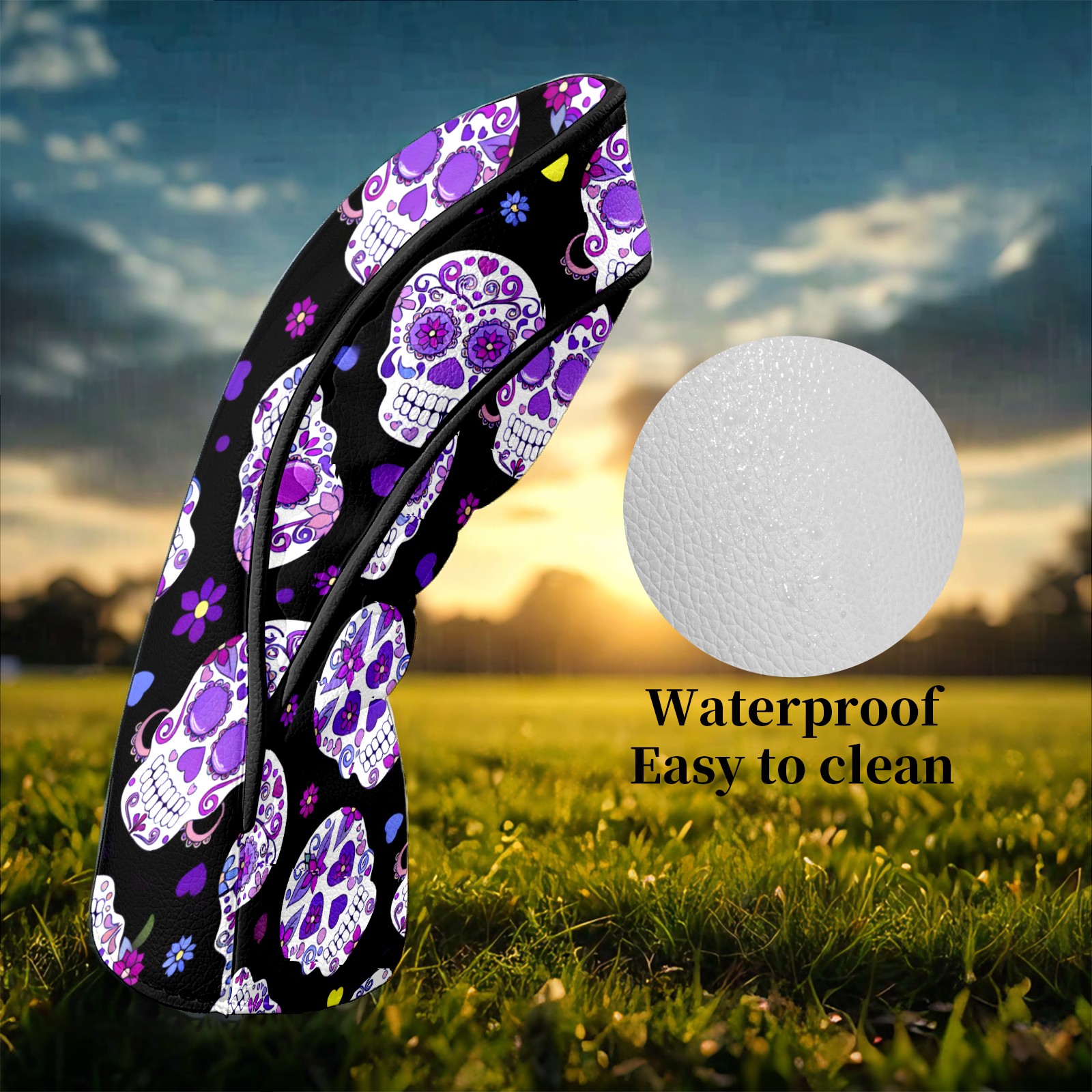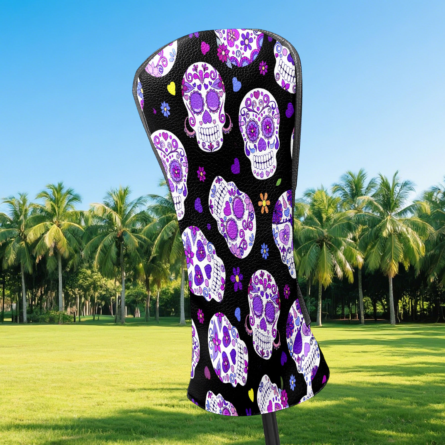 Counullo Golf Club Headcovers - Mysterious Skull Purple Premium PU Leather with Plush Lining for Driver & Fairway Woods, No-Slip Fit for All Clubs, Novelty Gift for Men & Women