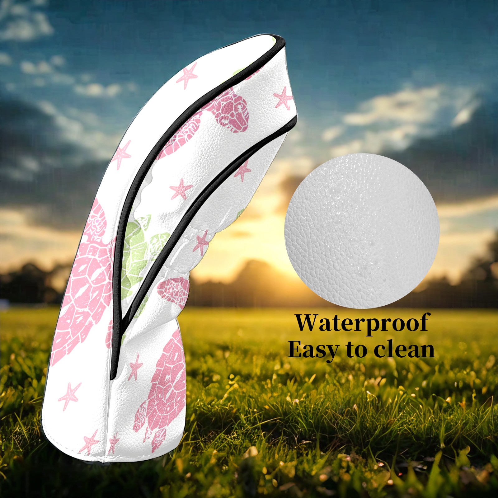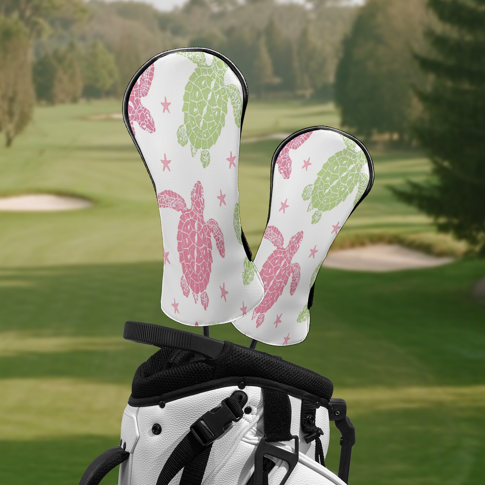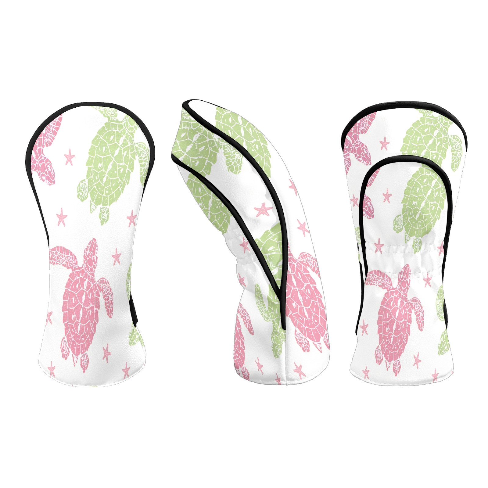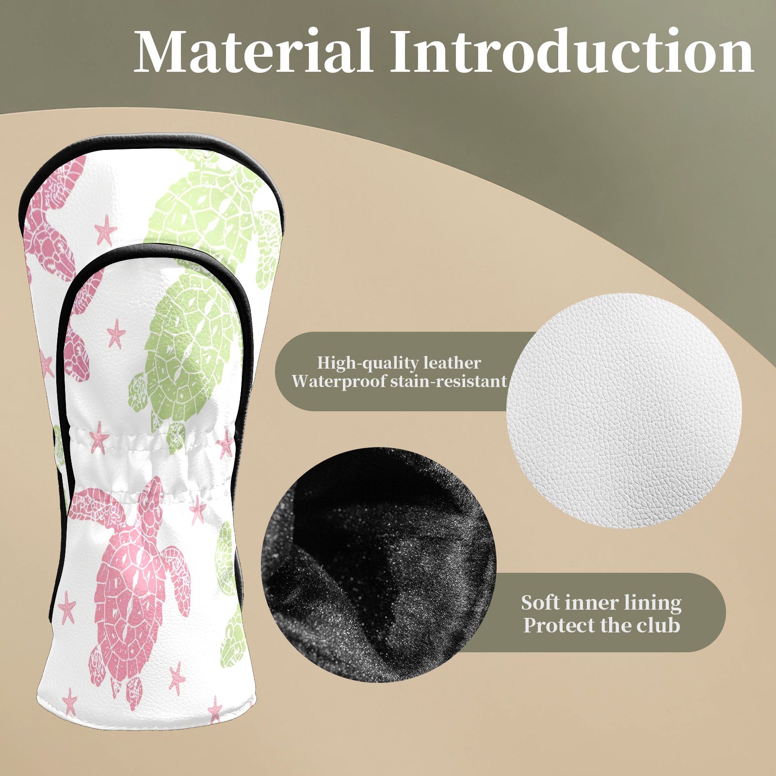Counullo Golf Club Headcovers - Gentle Turtle Pink Premium PU Leather with Plush Lining for Driver & Fairway Woods, No-Slip Fit for All Clubs, Novelty Gift for Men & Women