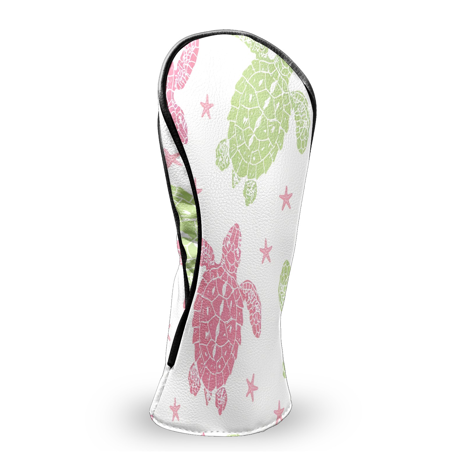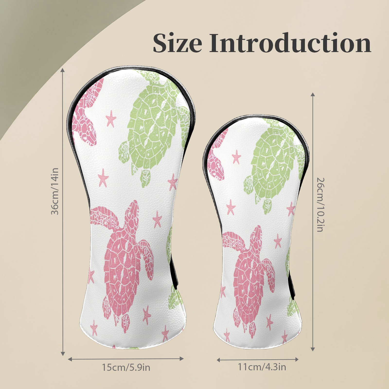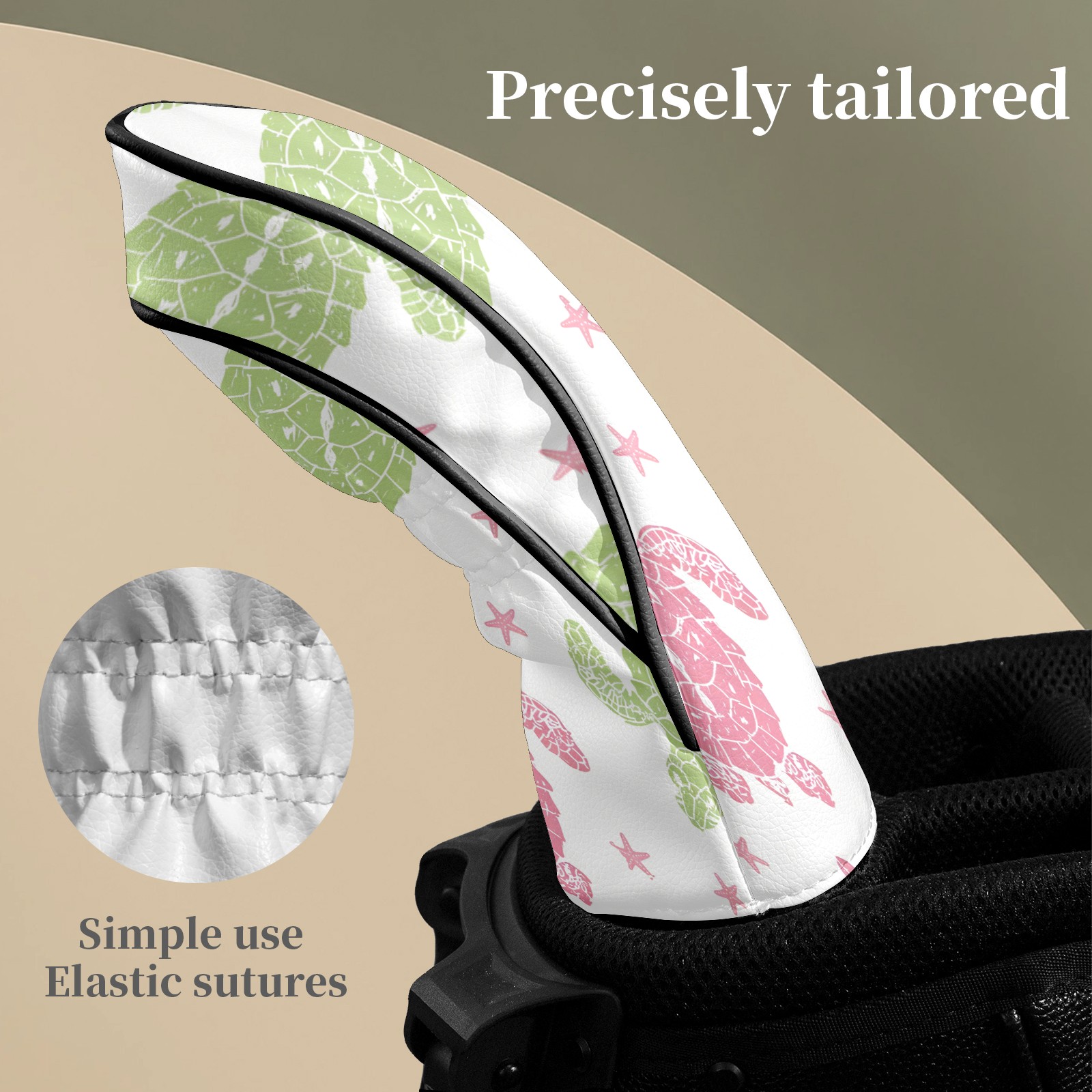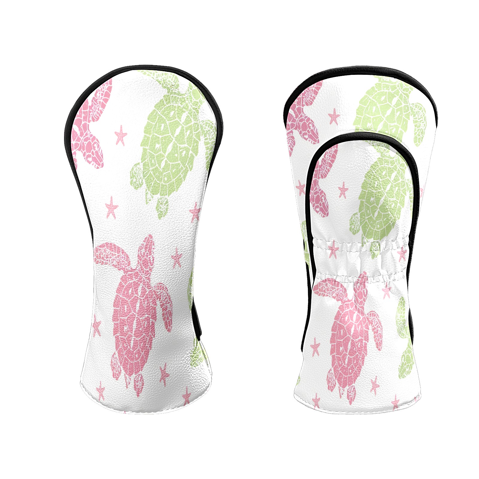Counullo Golf Club Headcovers - Gentle Turtle Pink Premium PU Leather with Plush Lining for Driver & Fairway Woods, No-Slip Fit for All Clubs, Novelty Gift for Men & Women