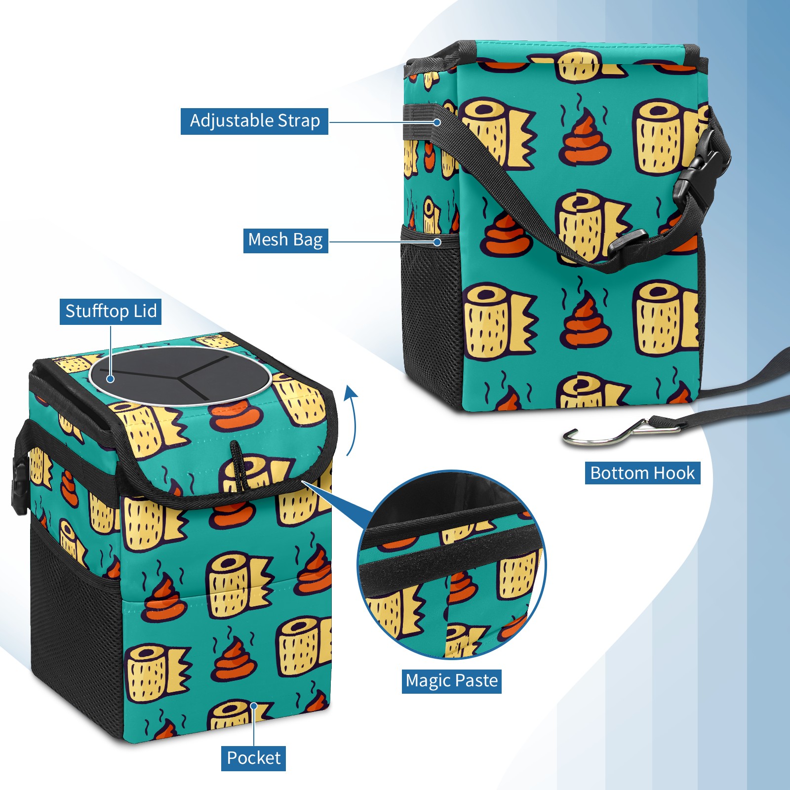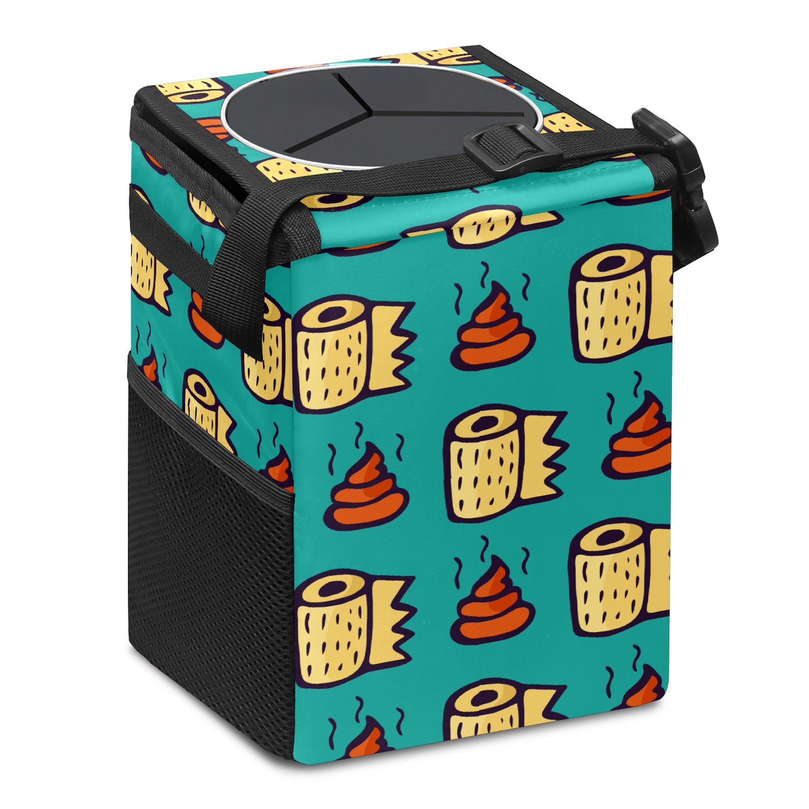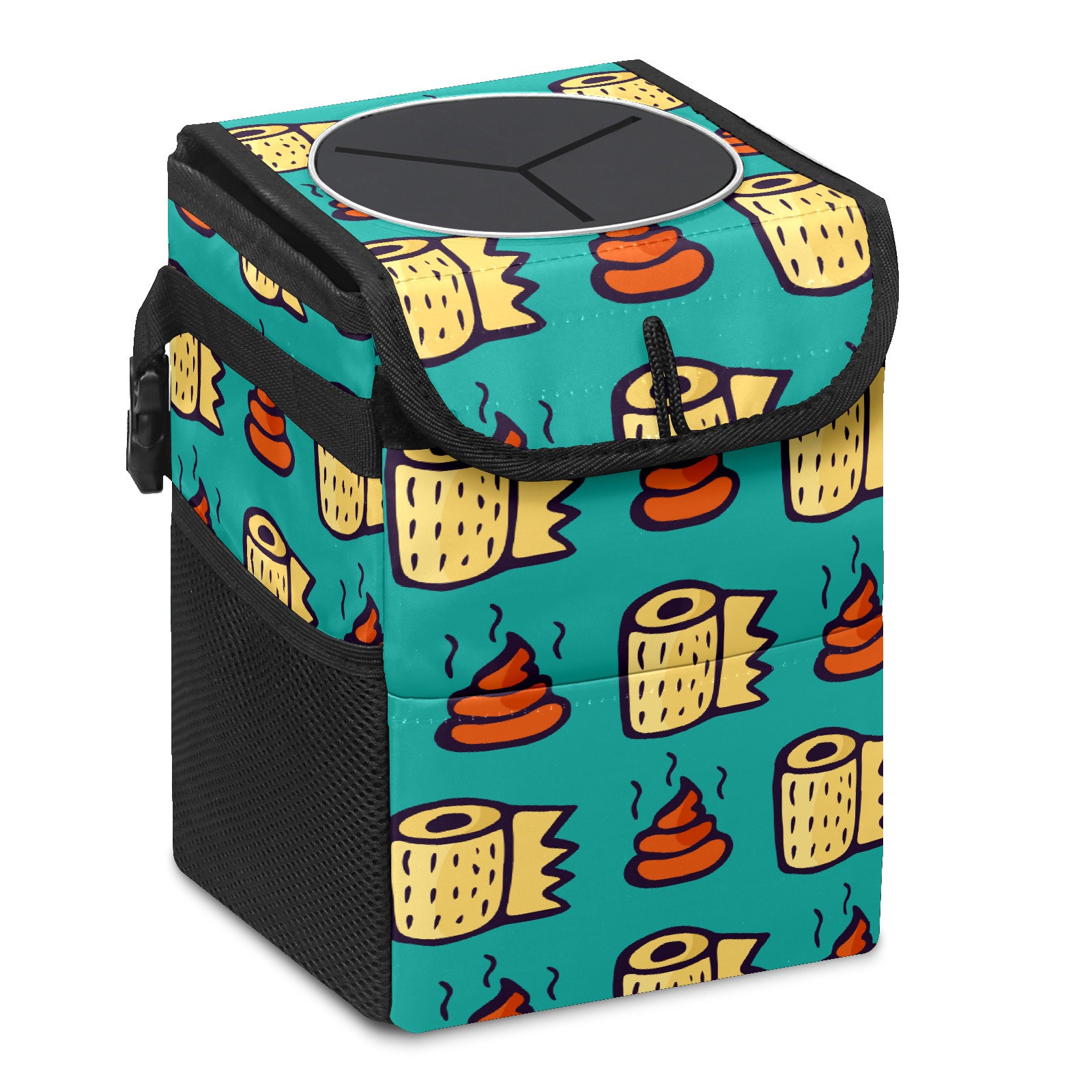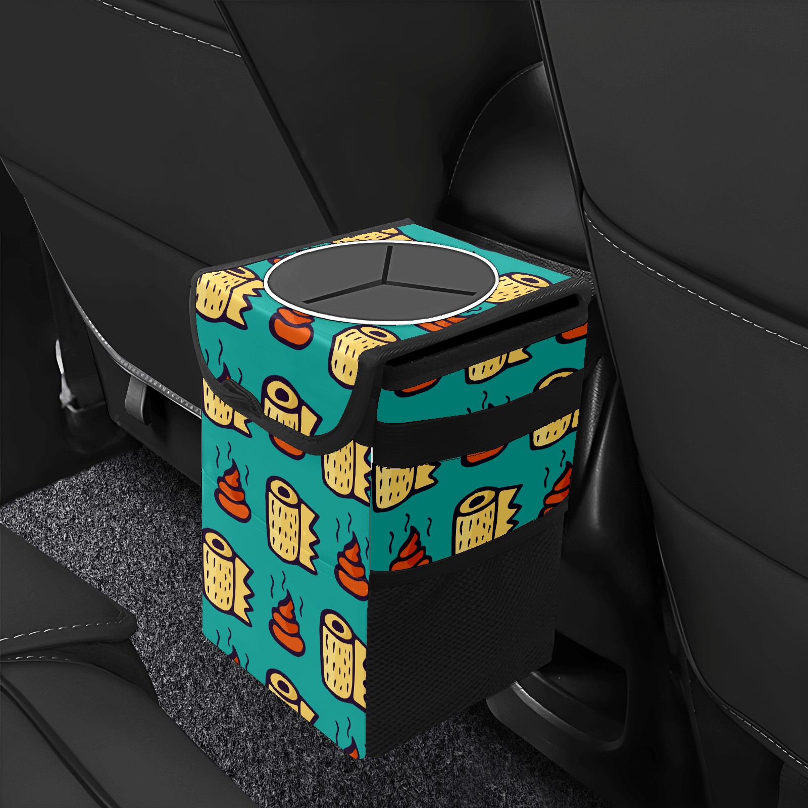 FOLDABLE & SPACE-SAVING Compact 9.5"×6.7"×6.3" size fits perfectly in any vehicle space Instantly folds flat when not in use - stores effortlessly under seats or in door pockets MULTI-FUNCTION ORGANIZER Large main compartment holds bottles, wrappers and tissues Additional pockets for wet wipes, masks or small accessories WATERPROOF & LEAKPROOF Made with premium leak-proof polyester material Contains messy spills from drinks, snacks, and food Wipe-clean surface resists stains and eliminates odors Package Includes 1× Car Trash Can