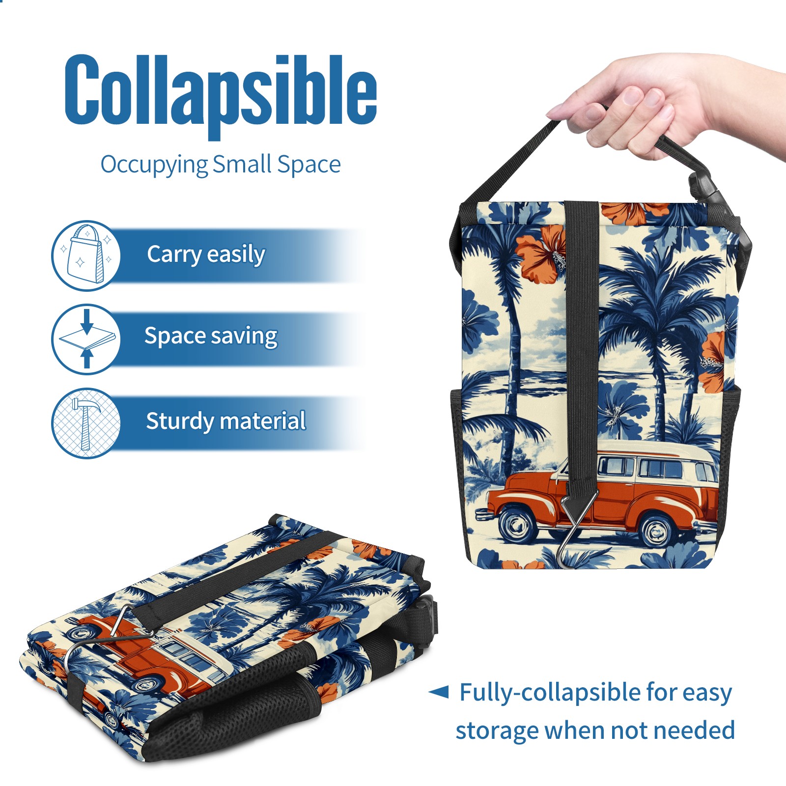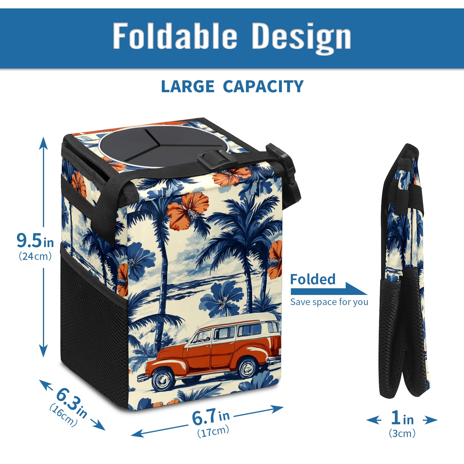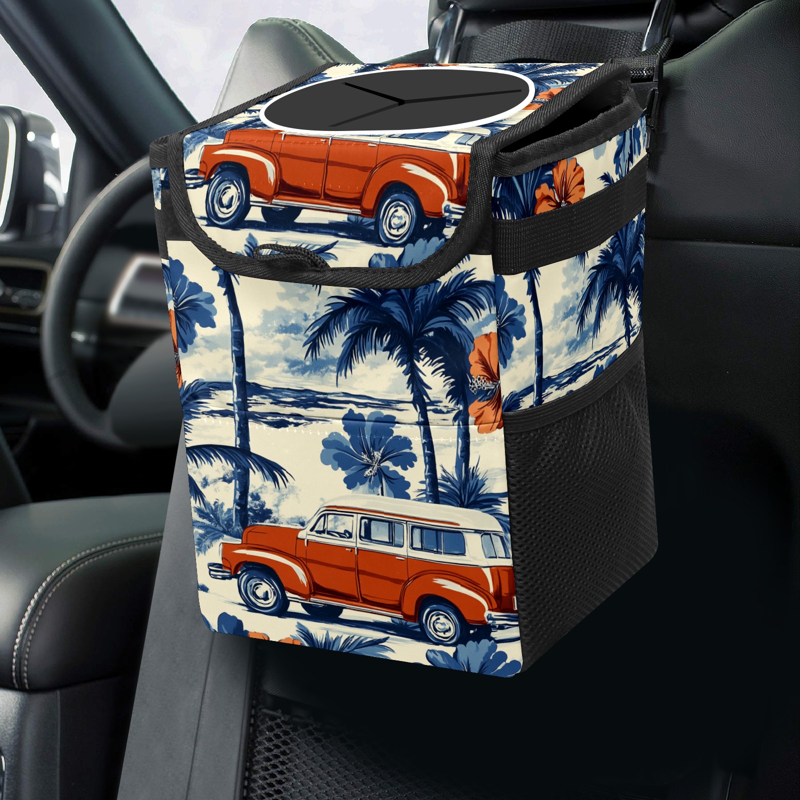 Эта многофункциональная автомобильная мусорная корзина отличается стильным принтом, сочетающим в себе практичность и эстетику. Изготовленная из высококачественной саржевой ткани с плетеными ремнями, она прочная, долговечная и износостойкая. Размеры корзины составляют 24×17×16 см (9,5×6,7×6,3 дюйма). Верхнее отверстие имеет прорезиненное покрытие для удобной утилизации мусора; боковые сетчатые карманы и передний карман обеспечивают удобное хранение закусок, телефонов и других мелких предметов.