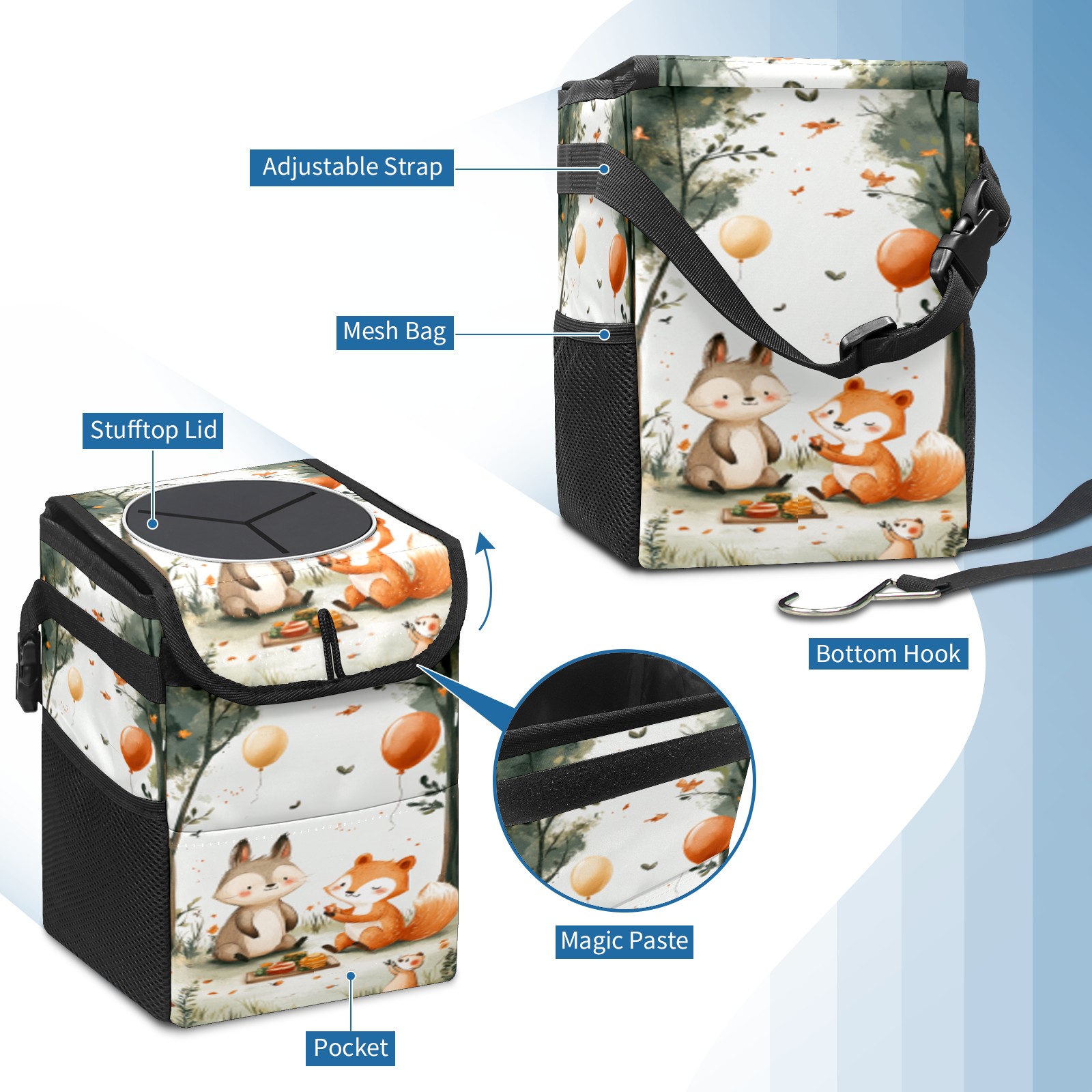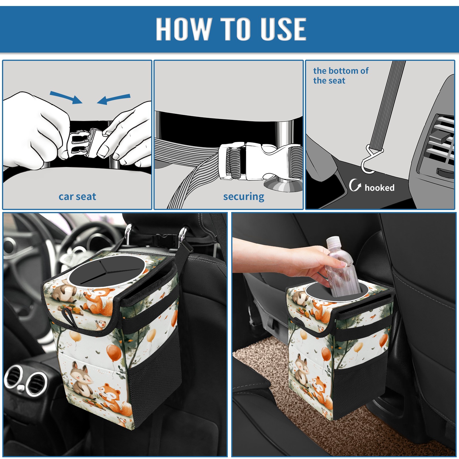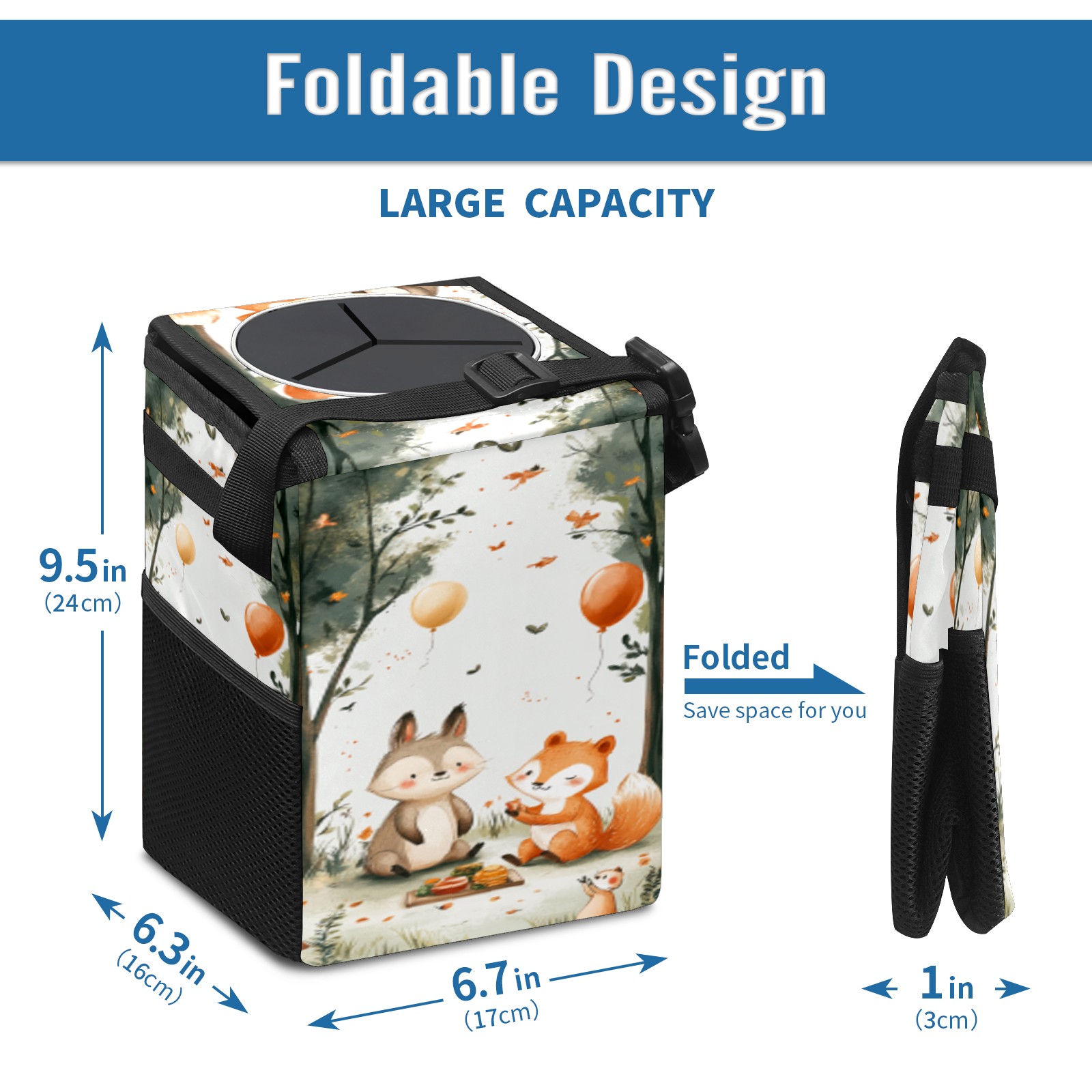 Эта многофункциональная автомобильная мусорная корзина отличается стильным принтом, сочетающим в себе практичность и эстетику. Изготовленная из высококачественной саржевой ткани с плетеными ремнями, она прочная, долговечная и износостойкая. Размеры корзины составляют 24×17×16 см (9,5×6,7×6,3 дюйма). Верхнее отверстие имеет прорезиненное покрытие для удобной утилизации мусора; боковые сетчатые карманы и передний карман обеспечивают удобное хранение закусок, телефонов и других мелких предметов.