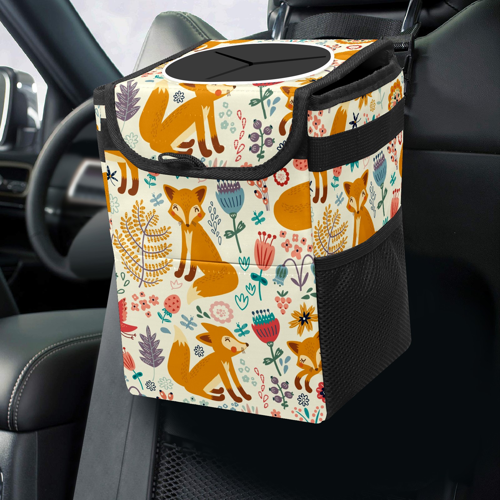 Car Trash Bin with Lid Auto Garbage Bag Hanging for Back Seat - Leakproof Trash Can for Cars SUVs Trucks Vehicle Car Accessories (狐狸)
