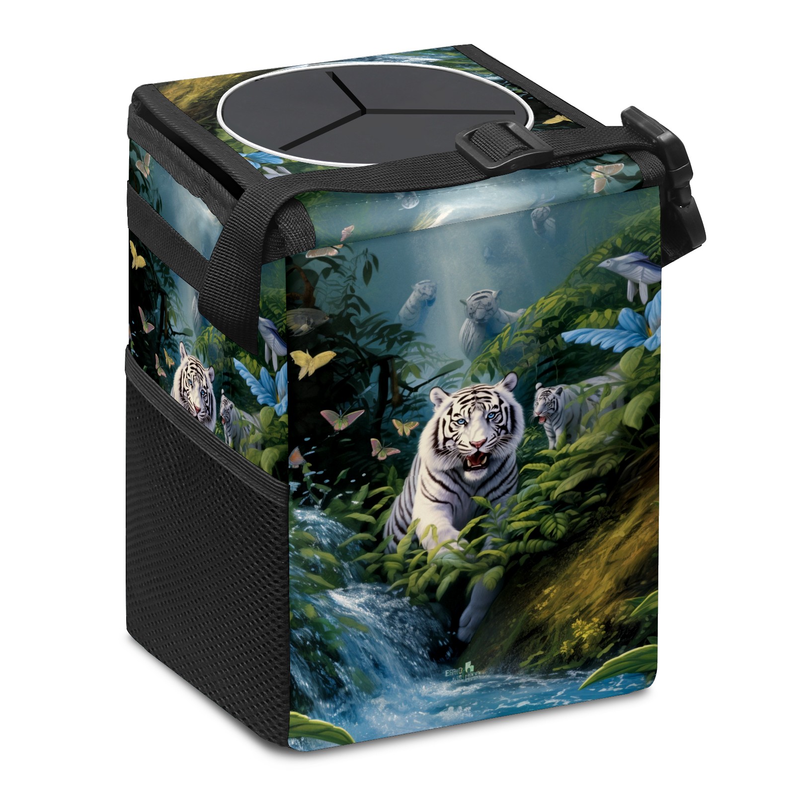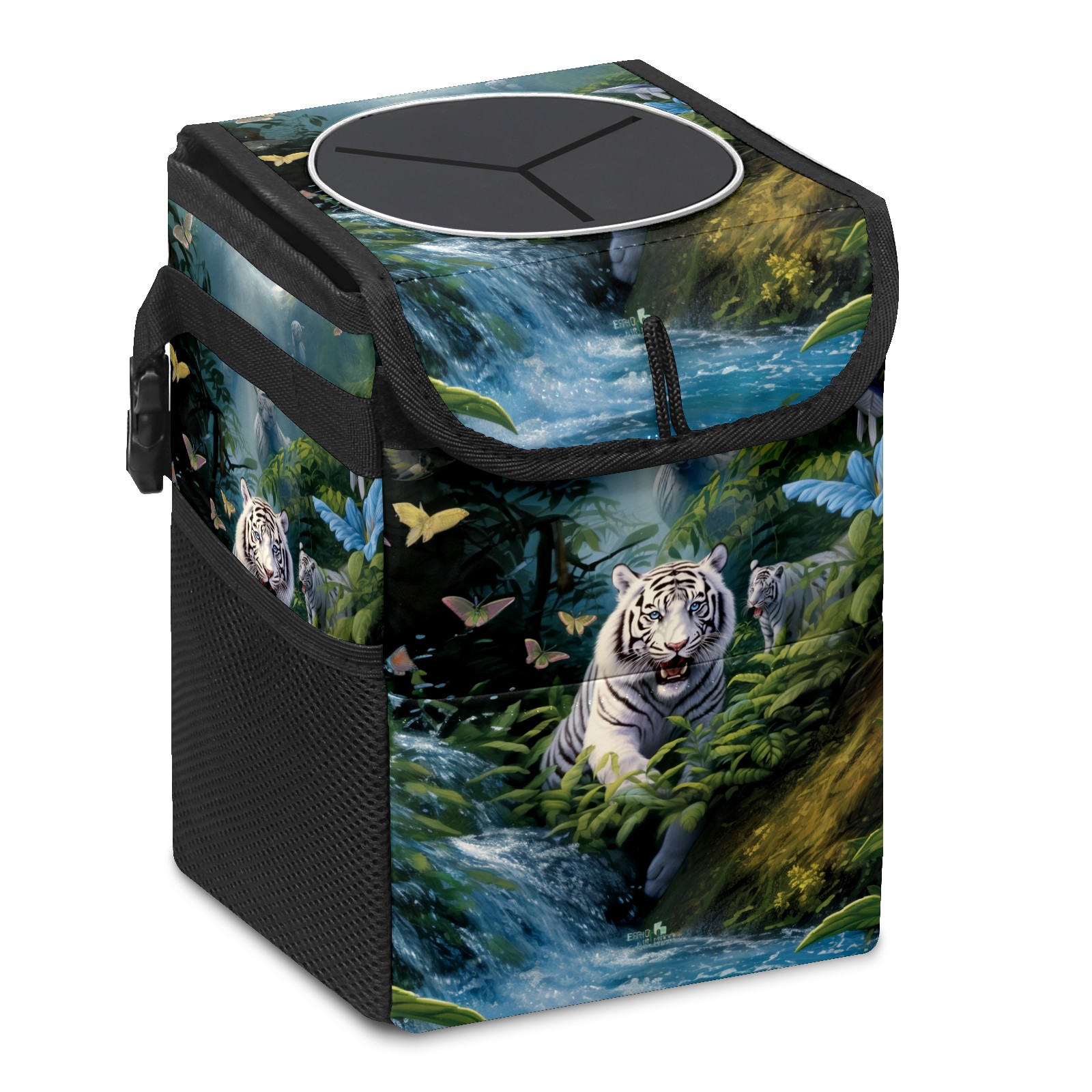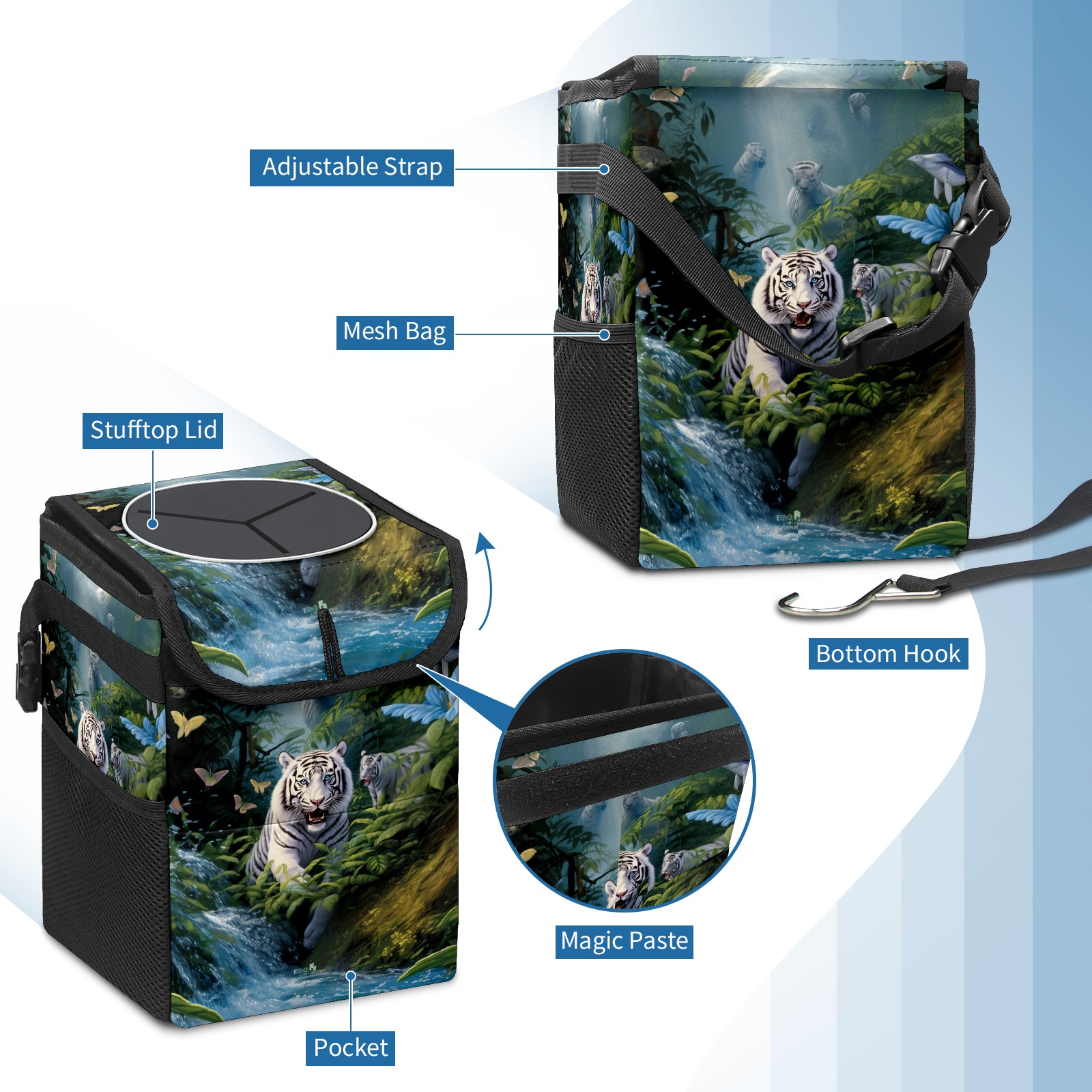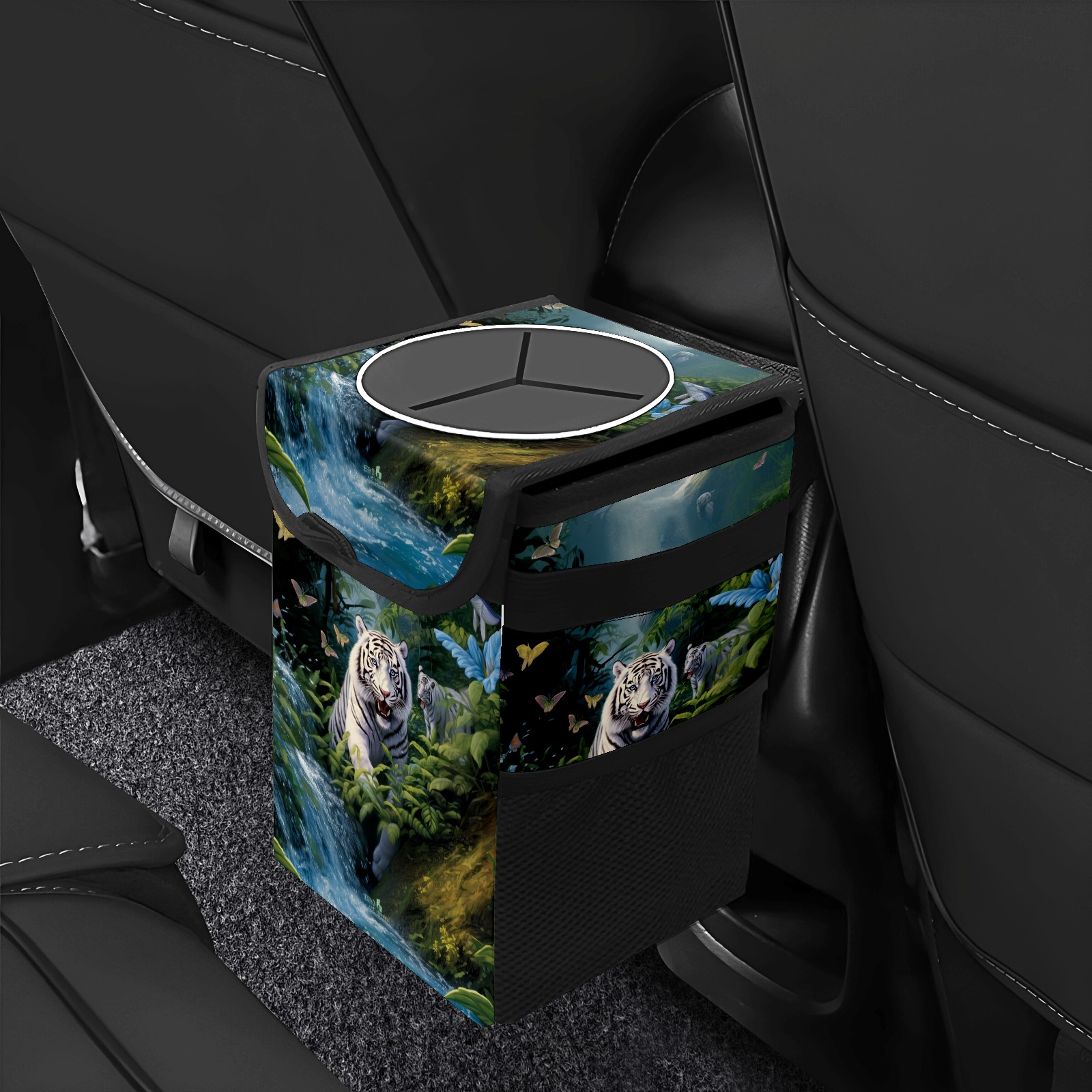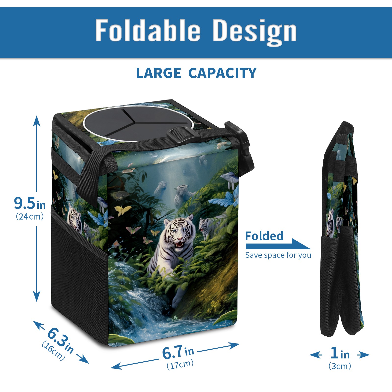 FOLDABLE & SPACE-SAVING Compact 9.5"×6.7"×6.3" size fits perfectly in any vehicle space Instantly folds flat when not in use - stores effortlessly under seats or in door pockets MULTI-FUNCTION ORGANIZER Large main compartment holds bottles, wrappers and tissues Additional pockets for wet wipes, masks or small accessories WATERPROOF & LEAKPROOF Made with premium leak-proof polyester material Contains messy spills from drinks, snacks, and food Wipe-clean surface resists stains and eliminates odors Package Includes 1× Car Trash Can