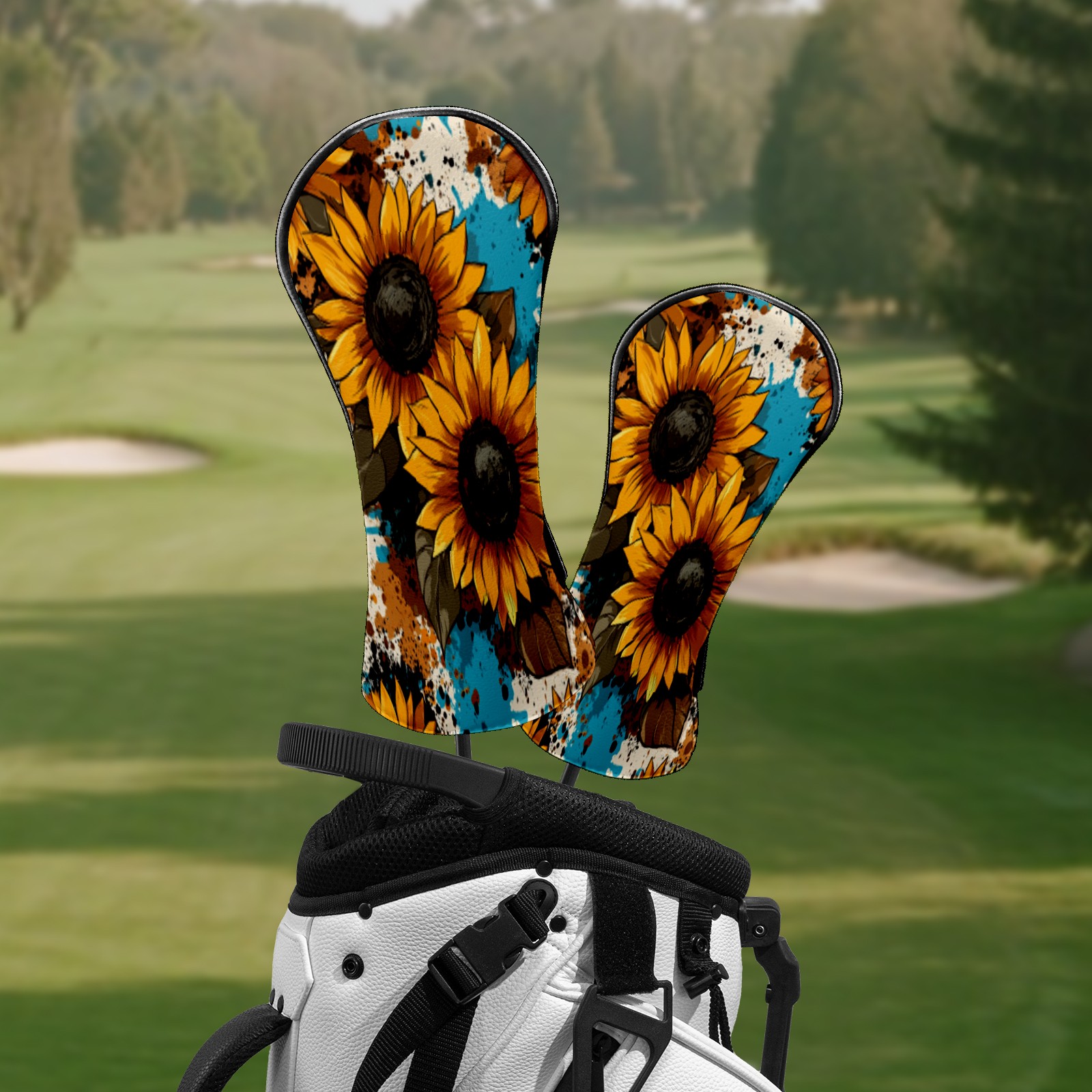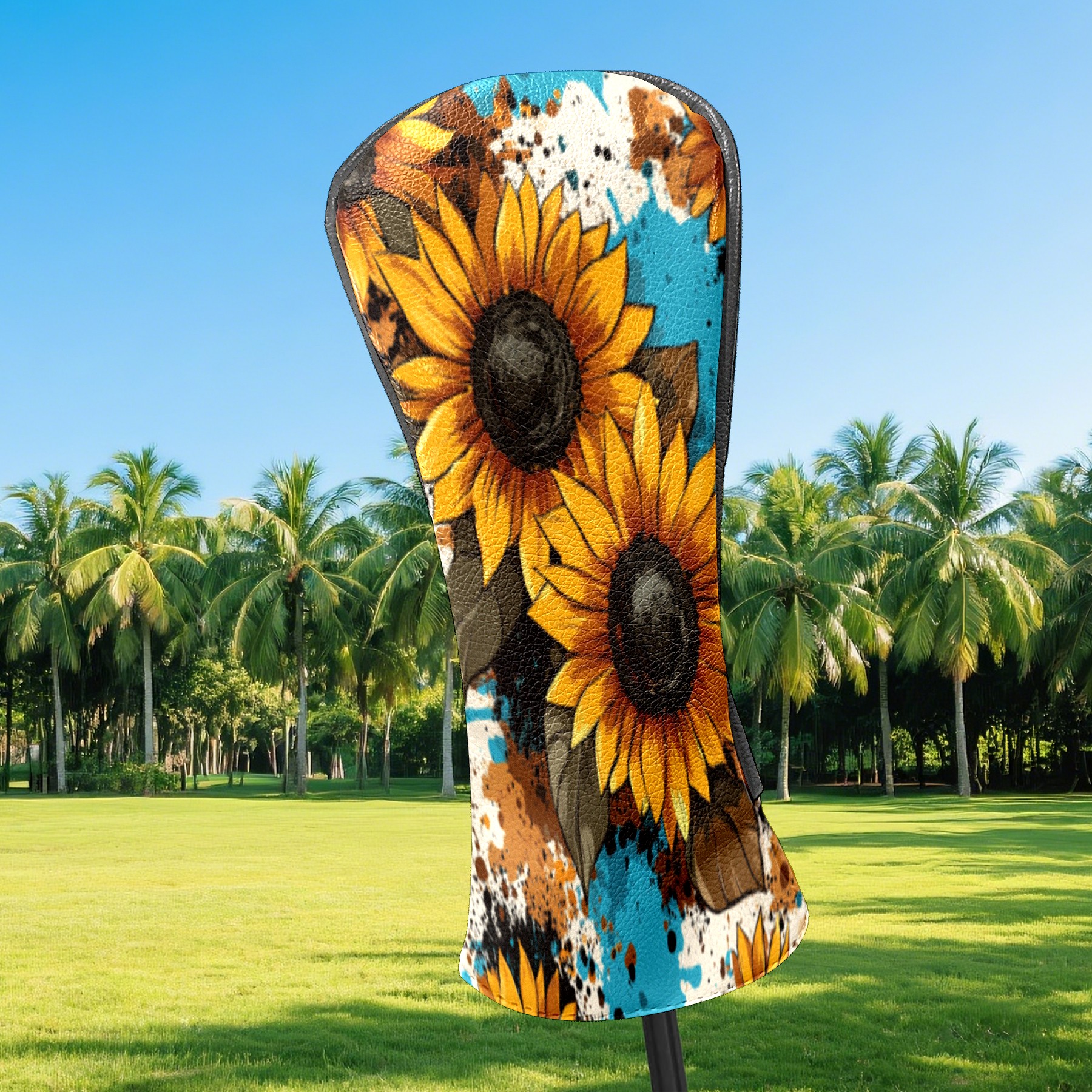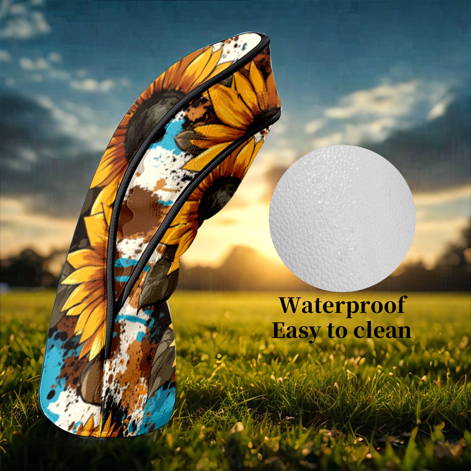 Golf Club Head Covers Grunge Sunflower Seamless Pattern Waterproof Leather Golf Head Covers for Men Women Driver Head Cover Fairway Headcover for Golf Lovers