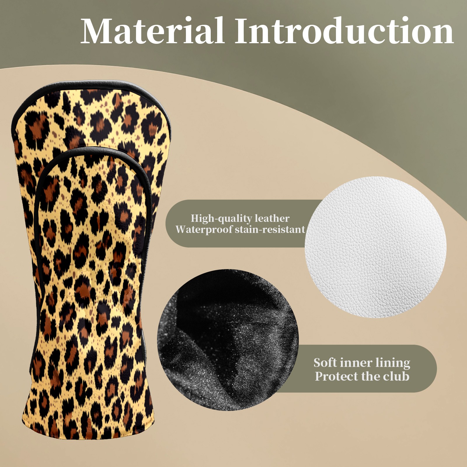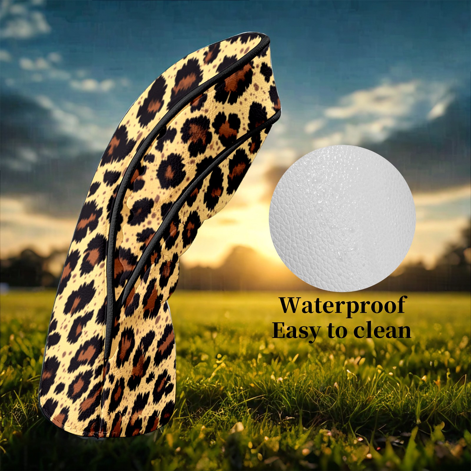 Golf Club Head Covers Light Leopard Print Pattern Waterproof Leather Golf Head Covers for Men Women Driver Head Cover Fairway Headcover for Golf Lovers