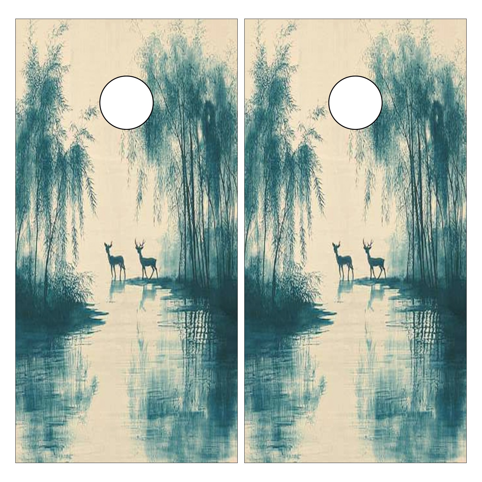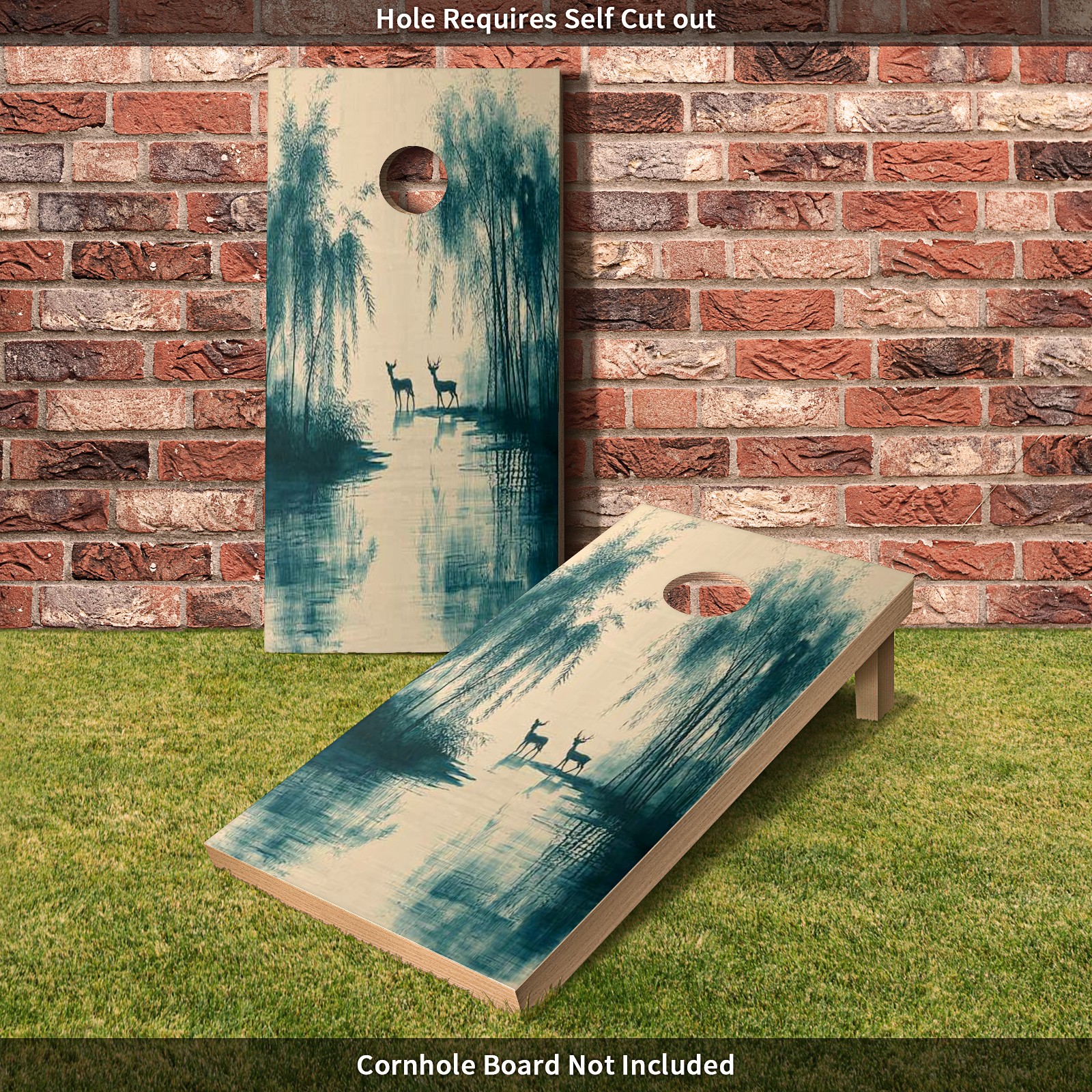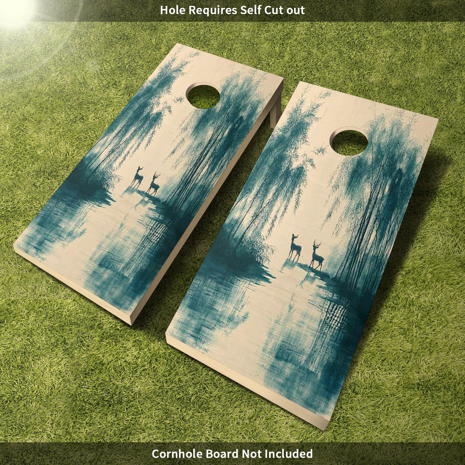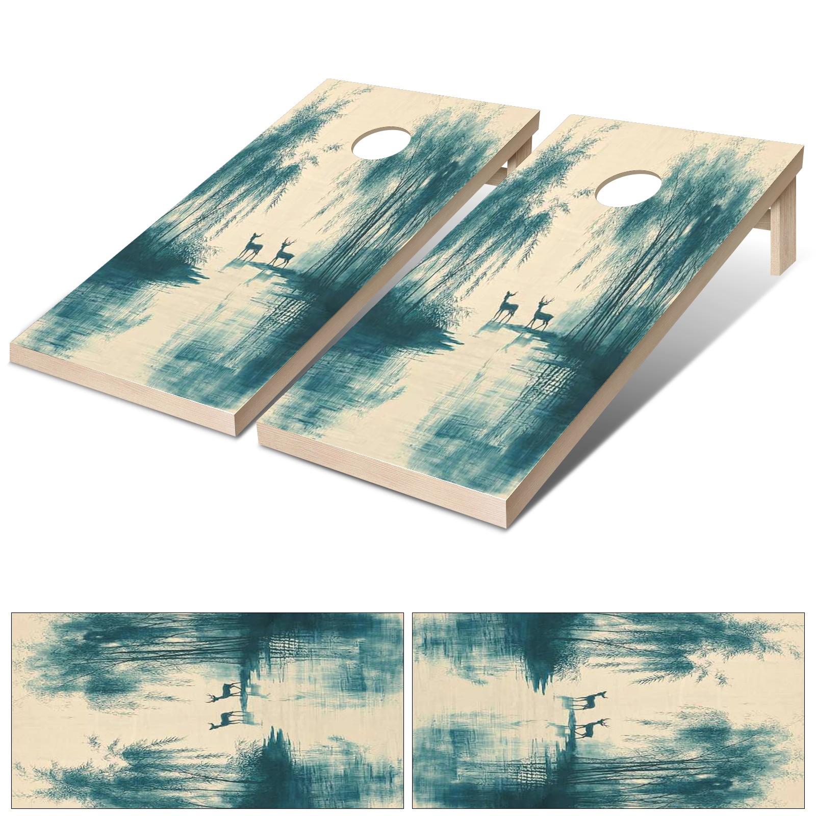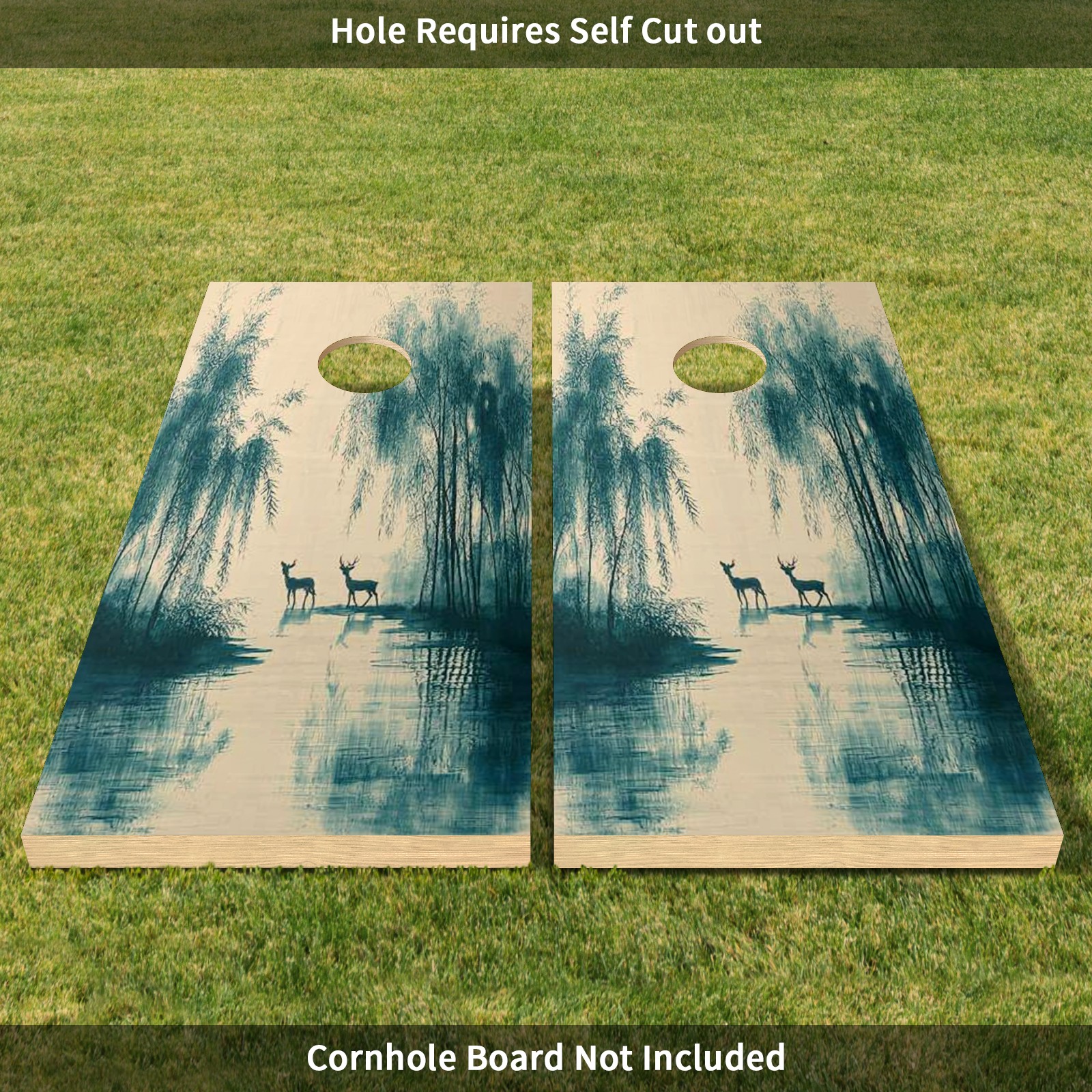 Portable 4x2 Ft Cornhole Boards Set with Two-piece Game Sticker(Decals ONLY), Easy to Apply - Corn Hole Games for Adults Outdoor Bean Bag Toss Game Forest Deer Pattern