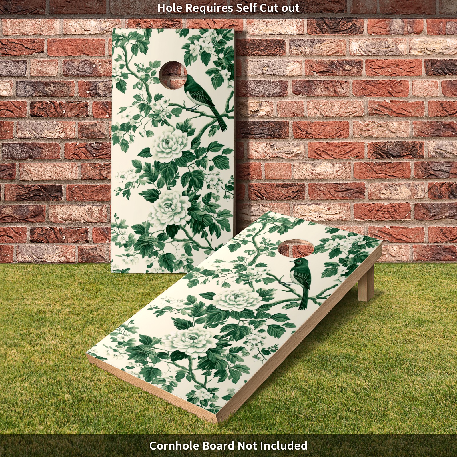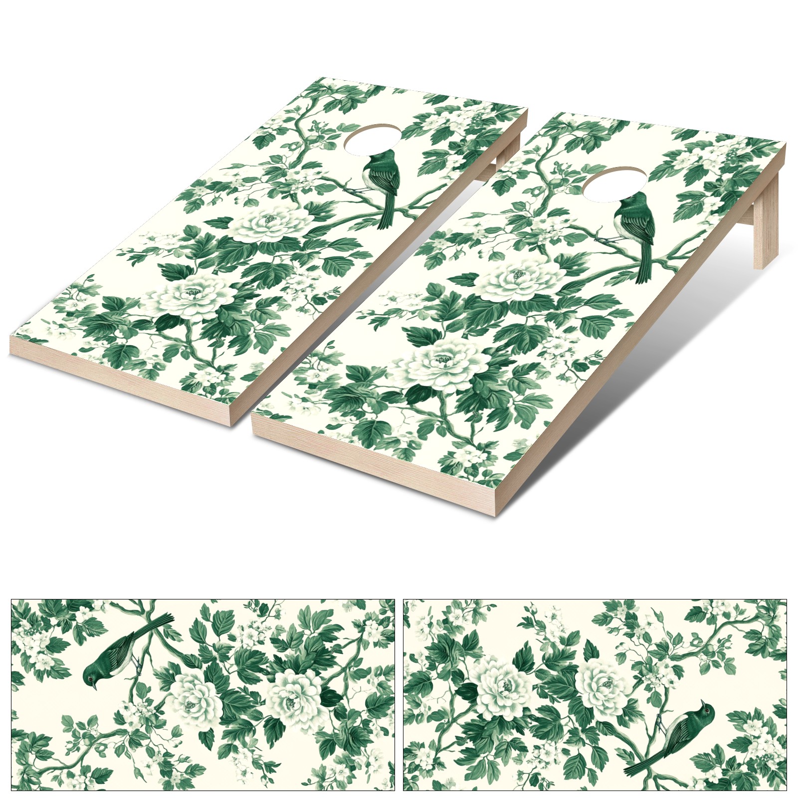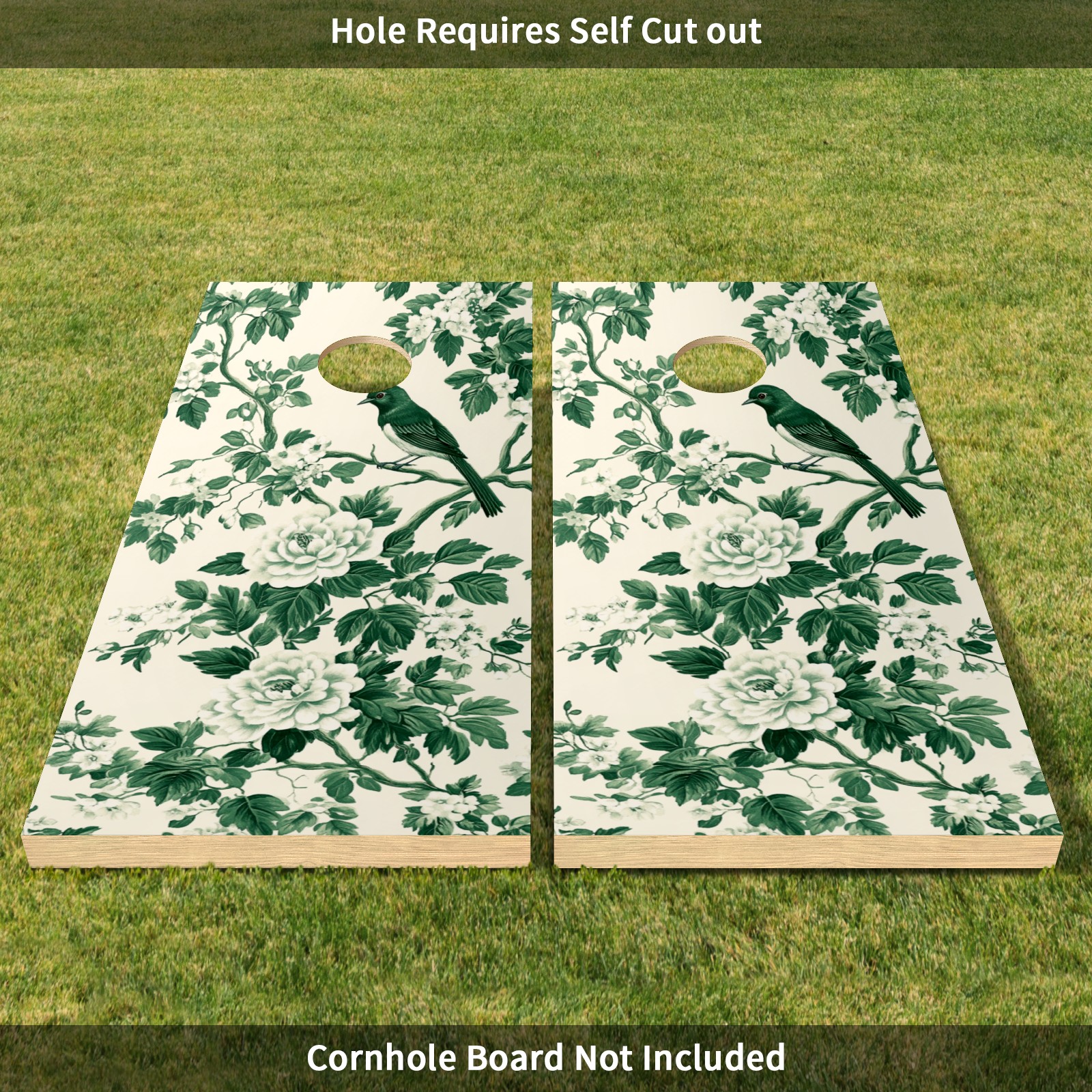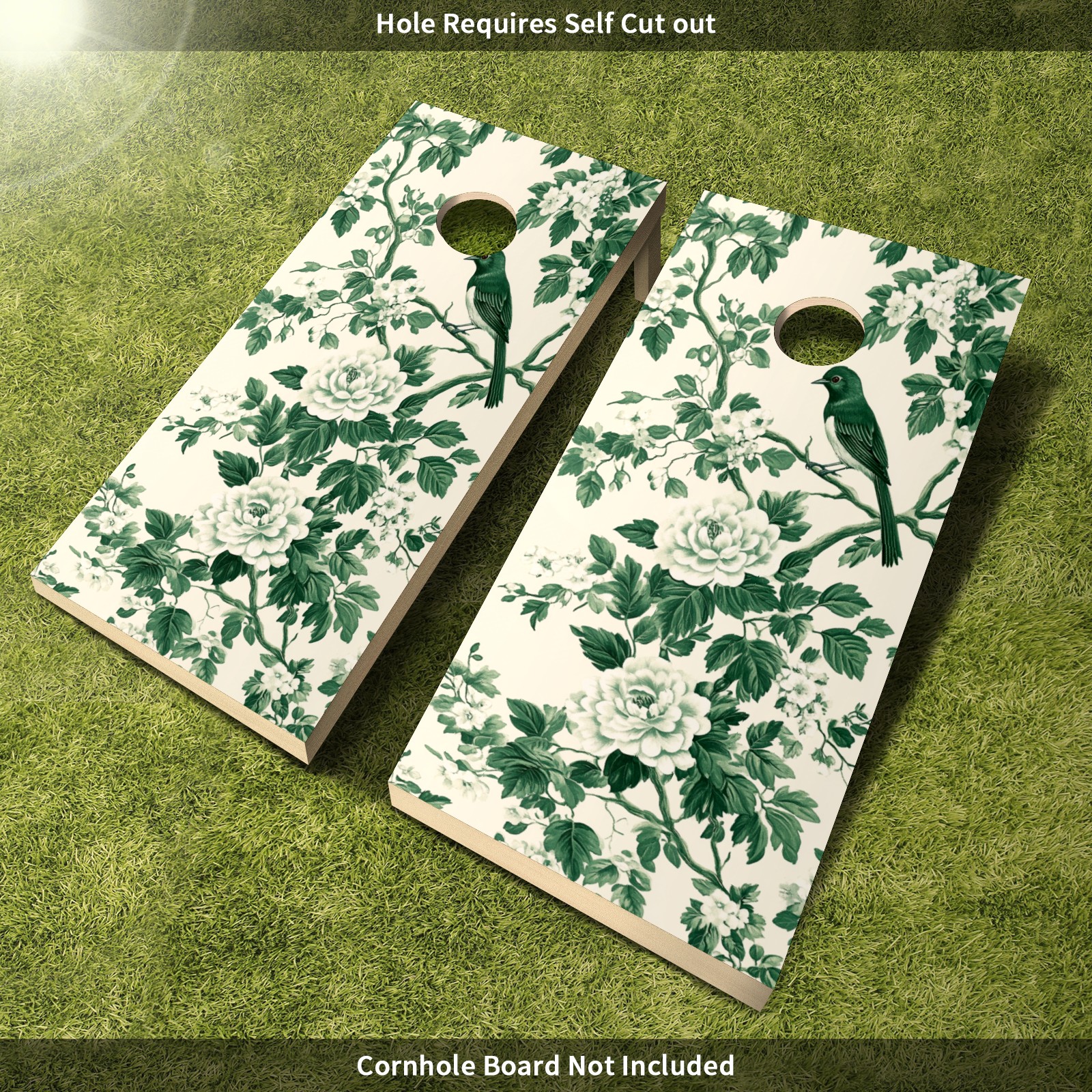Portable 4x2 Ft Cornhole Boards Set with Two-piece Game Sticker(Decals ONLY), Easy to Apply - Corn Hole Games for Adults Outdoor Bean Bag Toss Game Green Flower Pattern