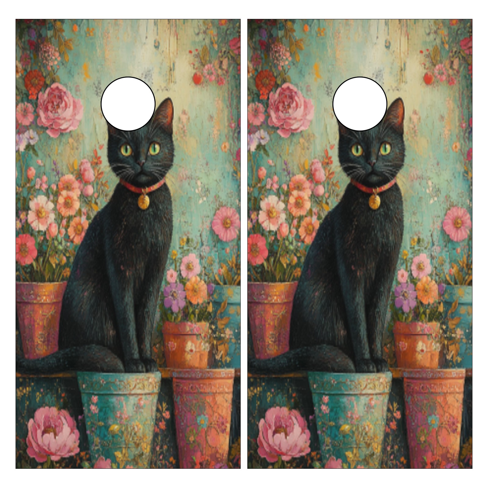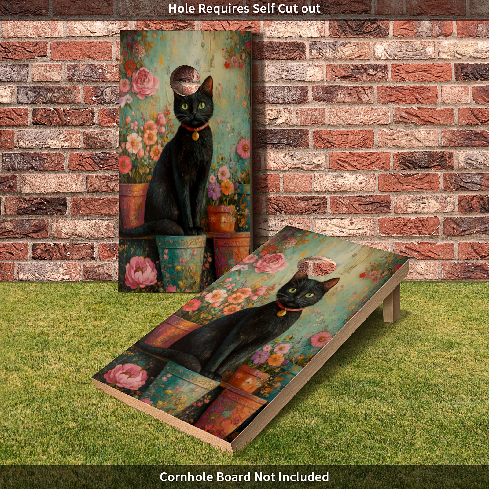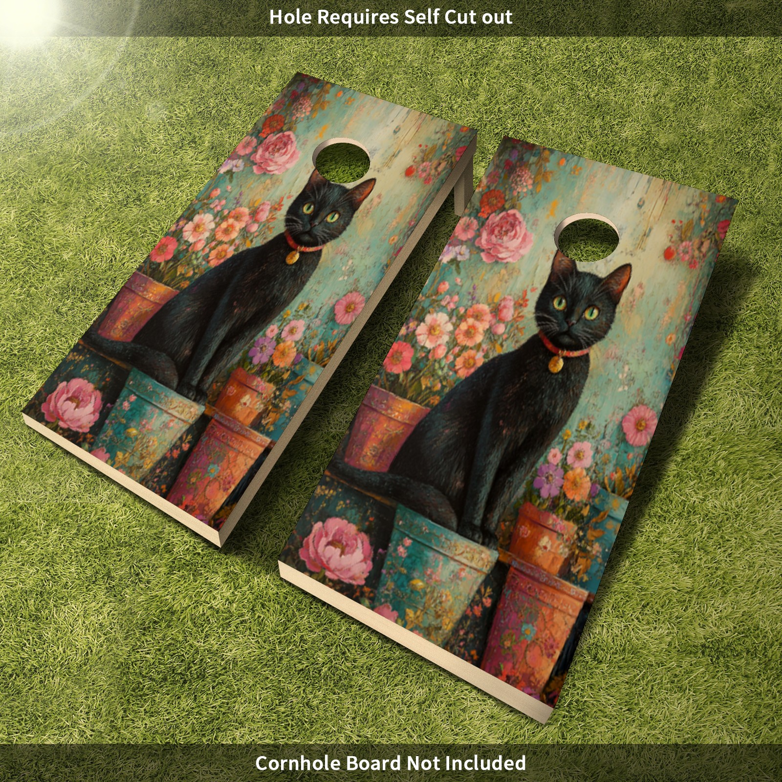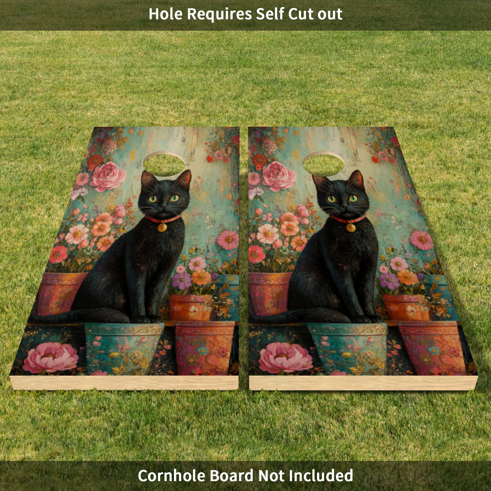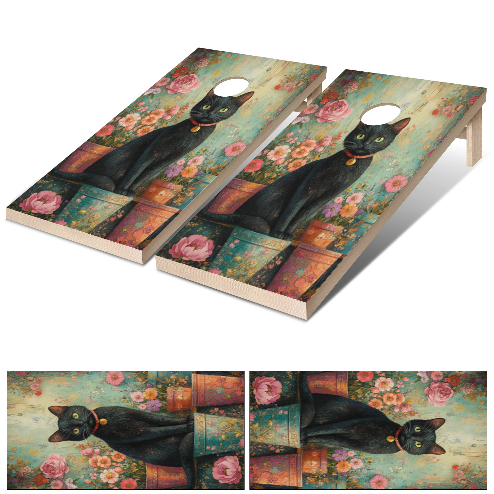 Portable 4x2 Ft Cornhole Boards Set with Two-piece Game Sticker(Decals ONLY), Easy to Apply - Corn Hole Games for Adults Outdoor Bean Bag Toss Game Flower Cat Pattern