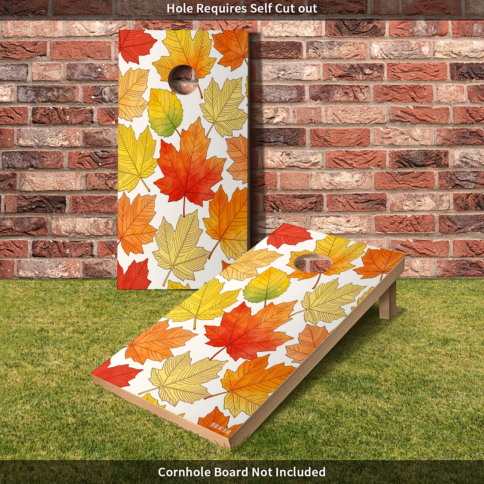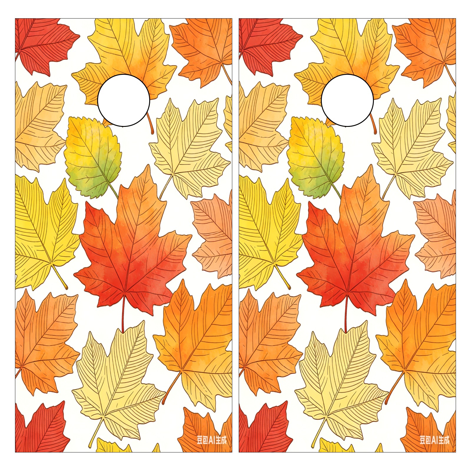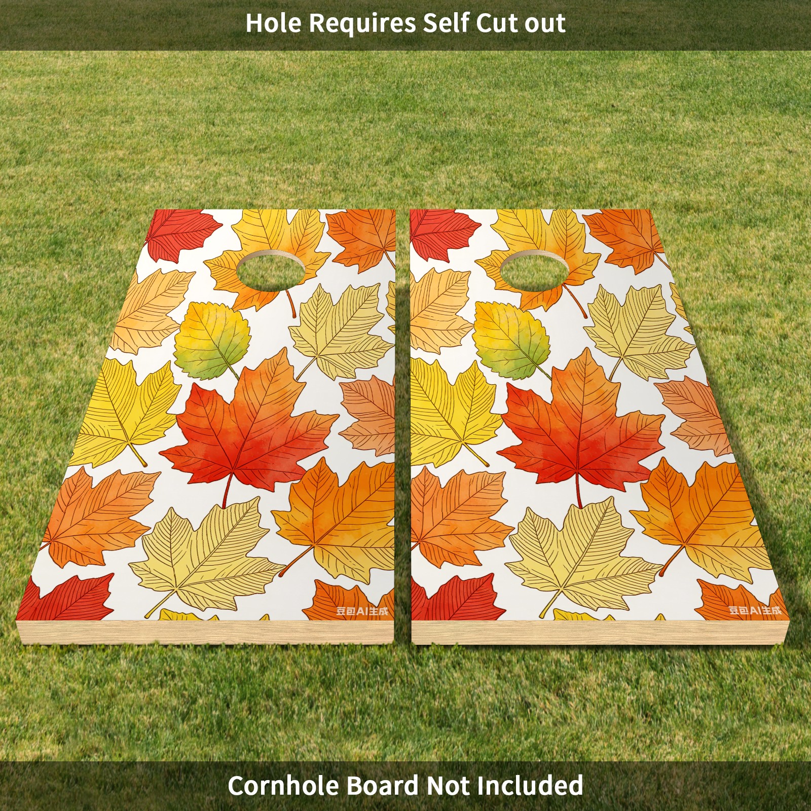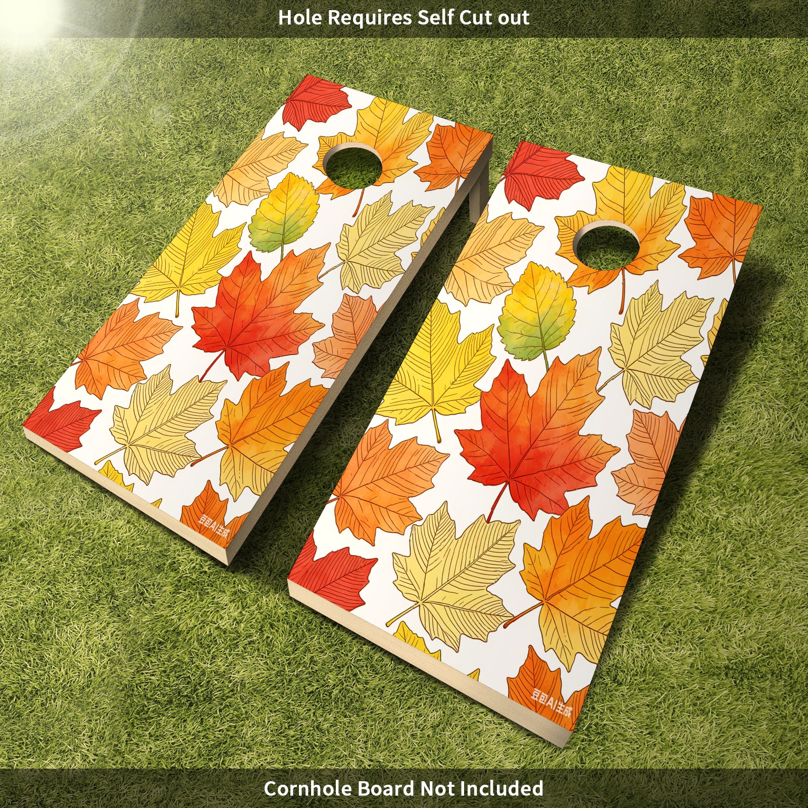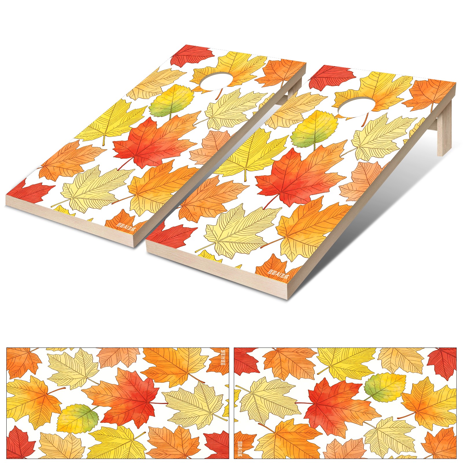 Portable 4x2 Ft Cornhole Boards Set with Two-piece Game Sticker(Decals ONLY), Easy to Apply - Corn Hole Games for Adults Outdoor Bean Bag Toss Game Colorful Maple Leaves