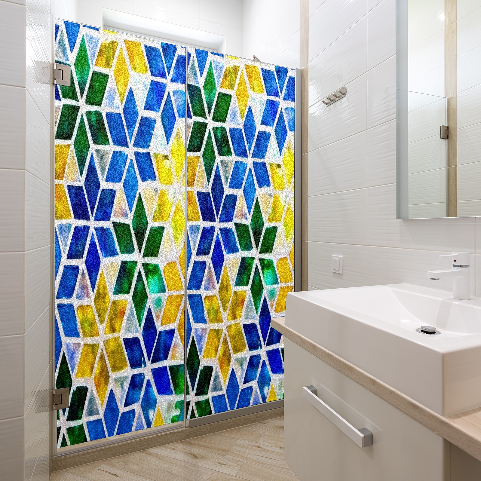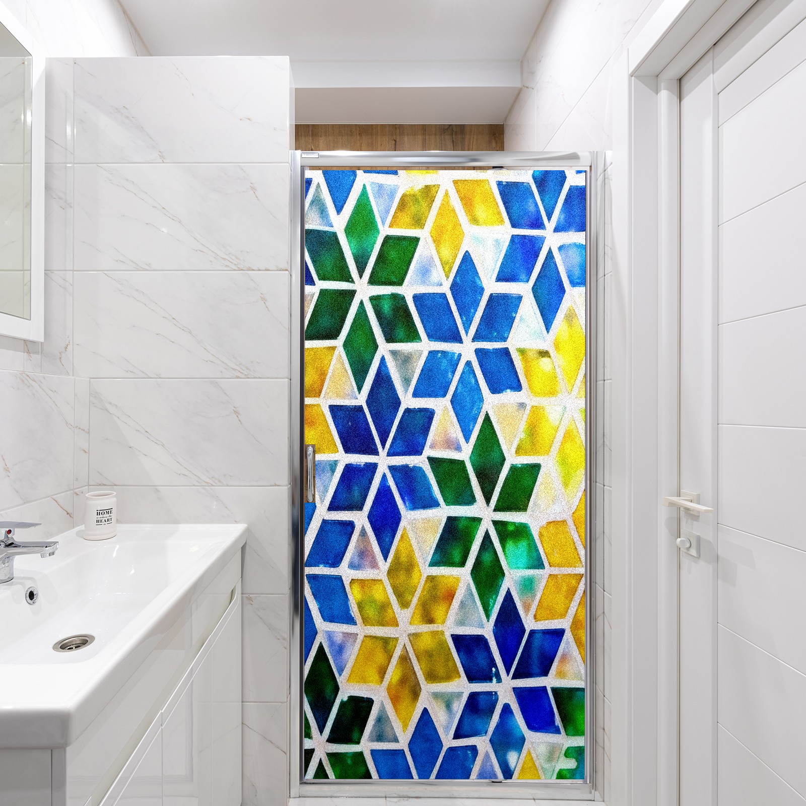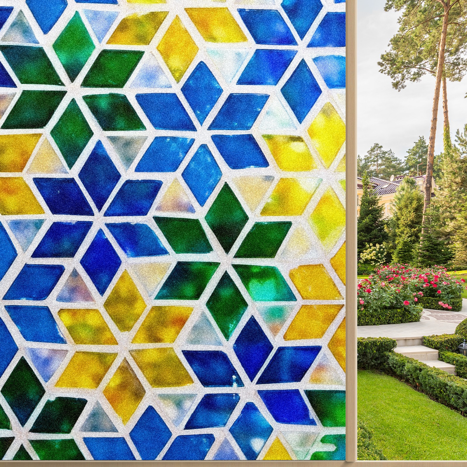Counullo Frosted Glass Privacy Window Film, Geometric Diamond Non Adhesive Static Cling, Reusable PET Window Sticker for Bathroom Shower Door Bedroom Office Living Room (17.7x23.6in)