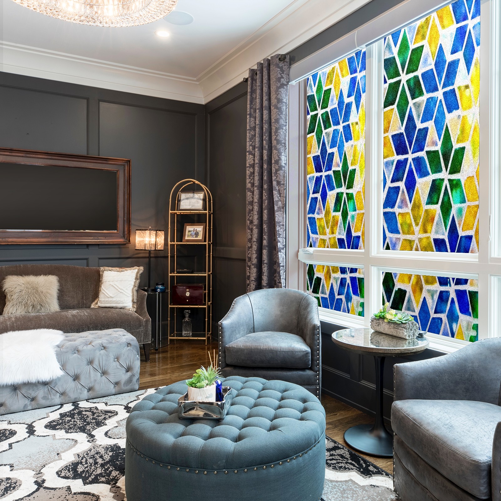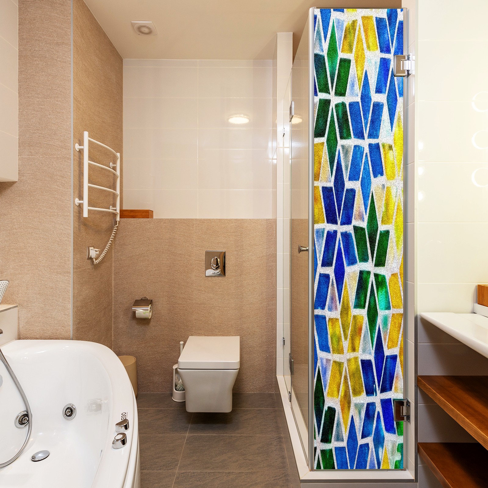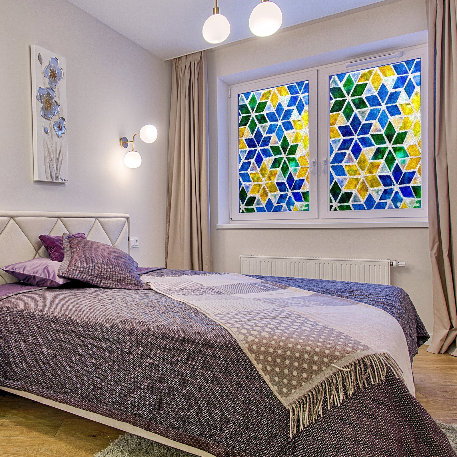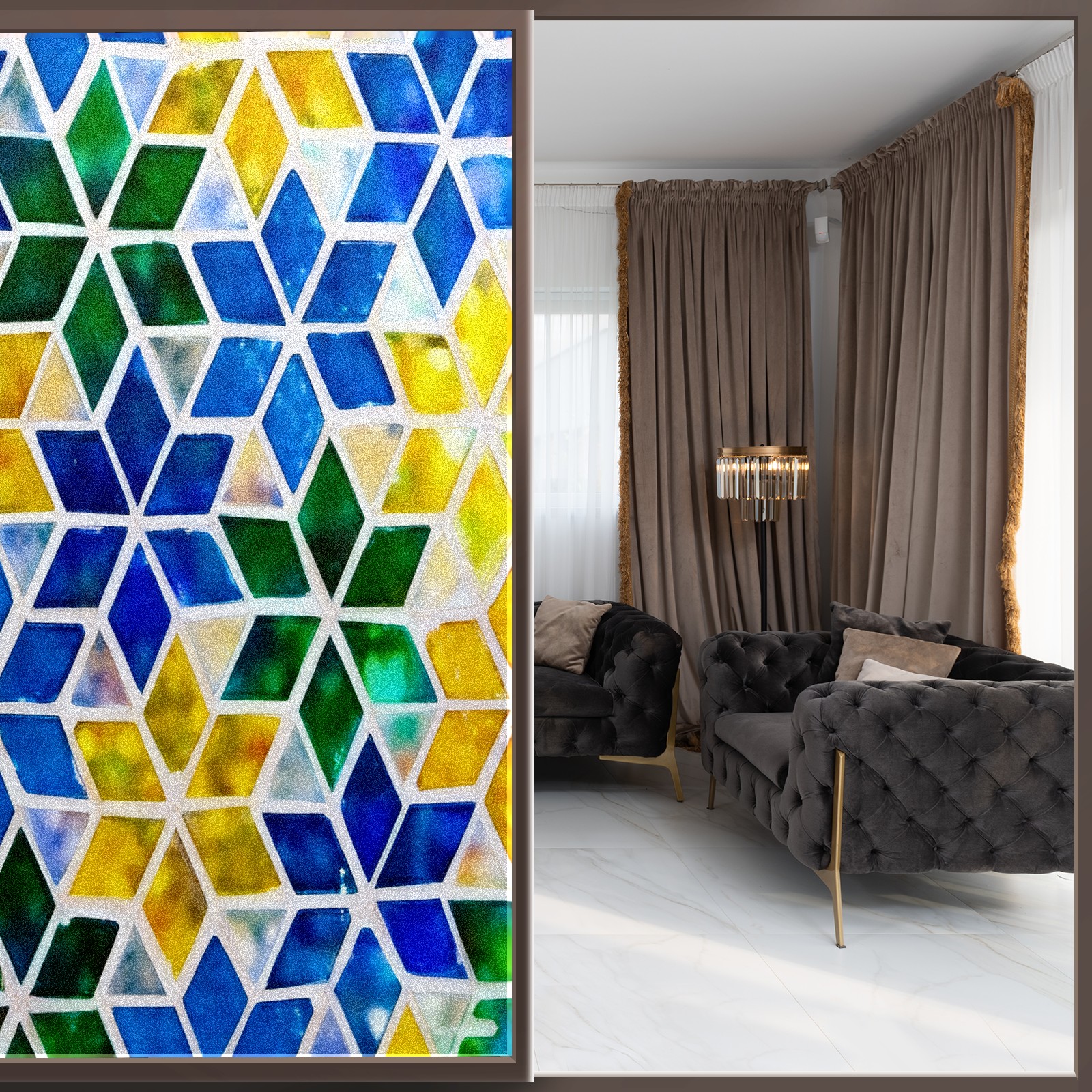Counullo Frosted Glass Privacy Window Film, Geometric Diamond Non Adhesive Static Cling, Reusable PET Window Sticker for Bathroom Shower Door Bedroom Office Living Room (17.7x23.6in)