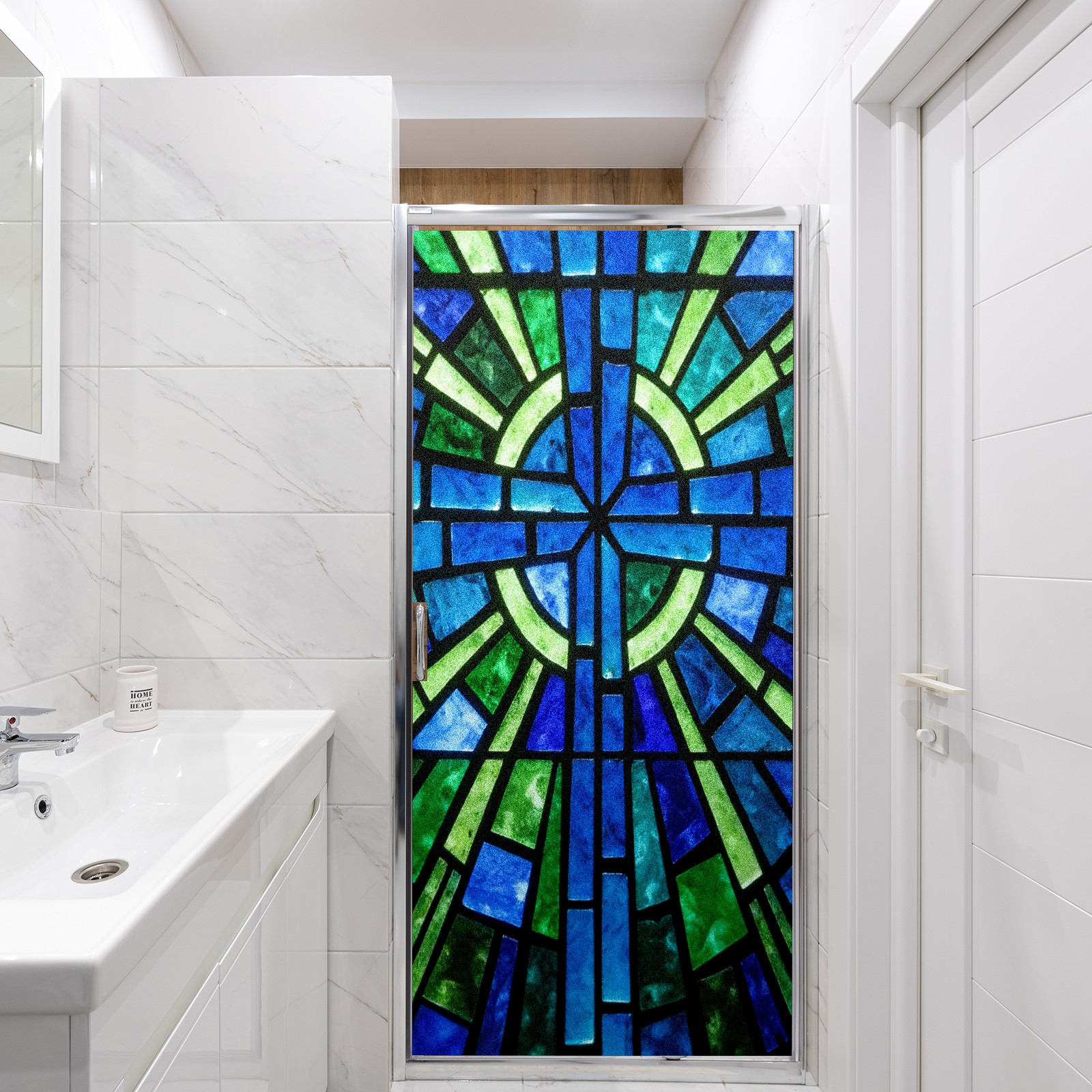 Counullo Frosted Glass Privacy Window Film, Radiant Church Non Adhesive Static Cling, Reusable PET Window Sticker for Bathroom Shower Door Bedroom Office Living Room (17.7x23.6in)