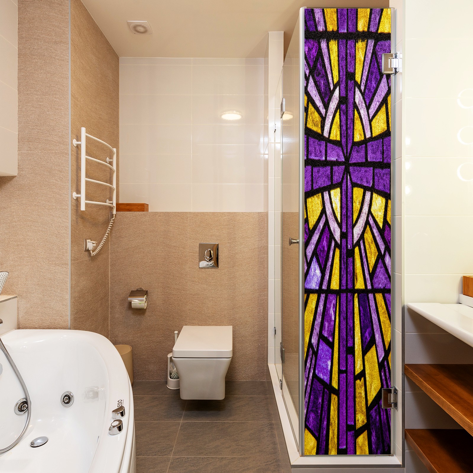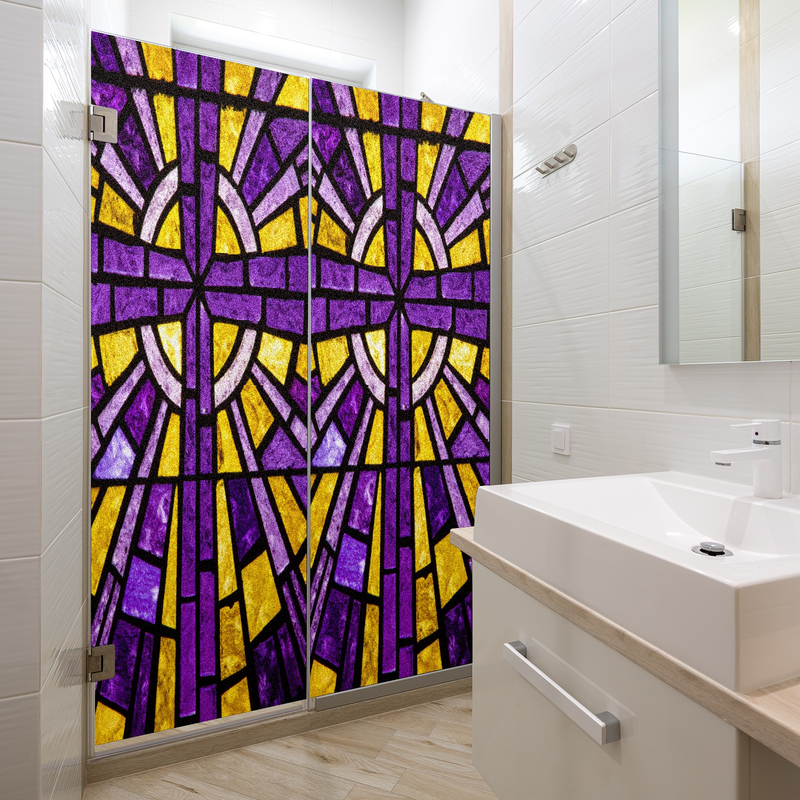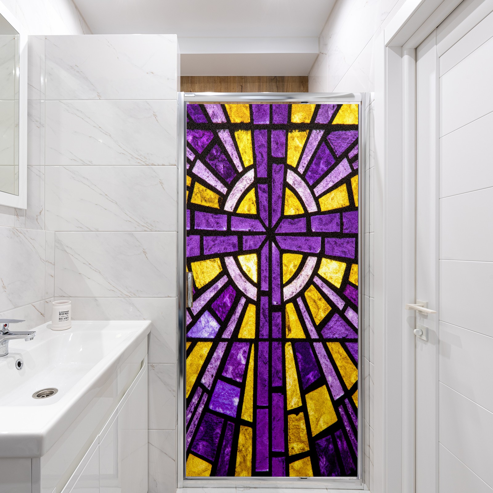 Counullo Frosted Glass Privacy Window Film, Geometric Non Adhesive Static Cling, Reusable PET Window Sticker for Bathroom Shower Door Bedroom Office Living Room (17.7x23.6in)