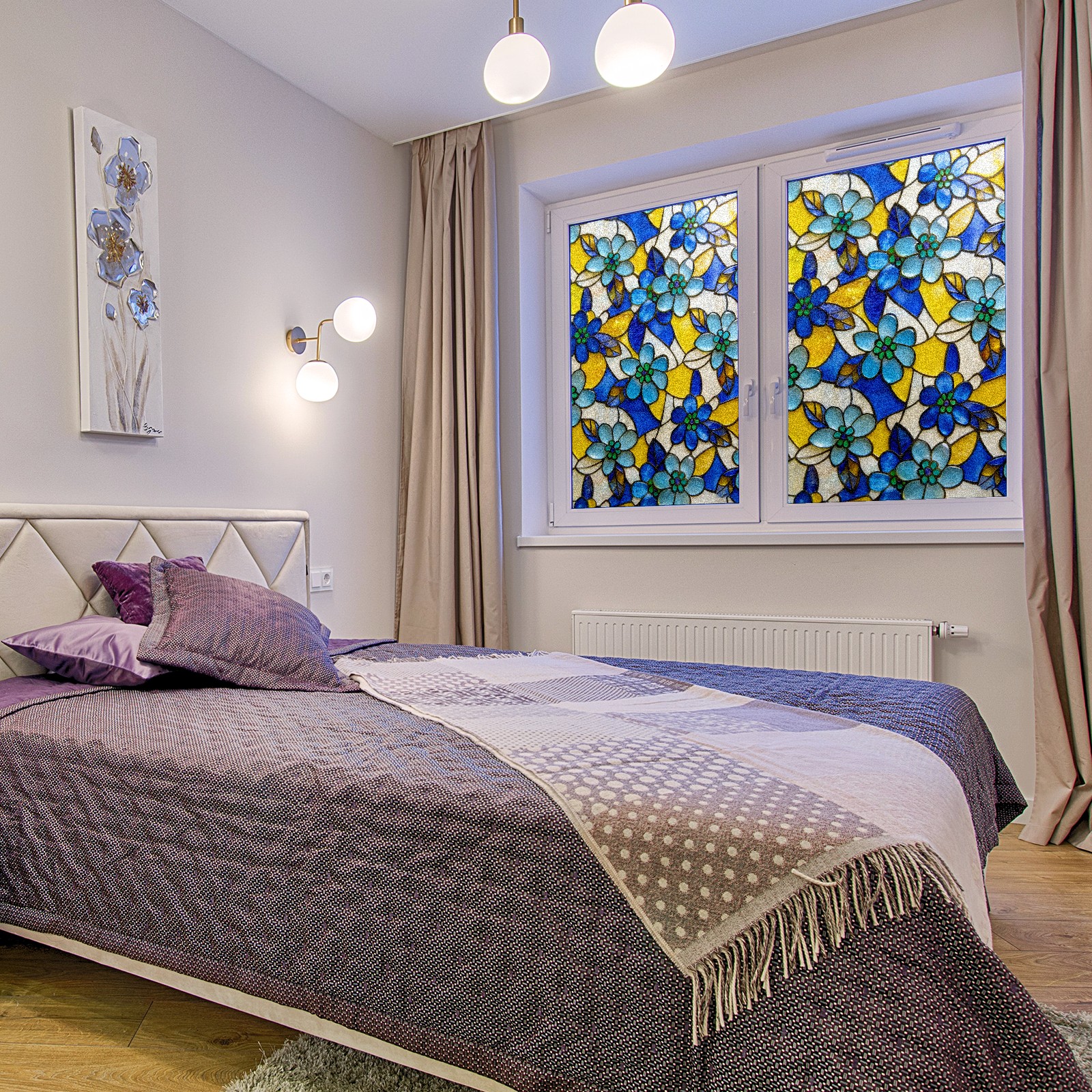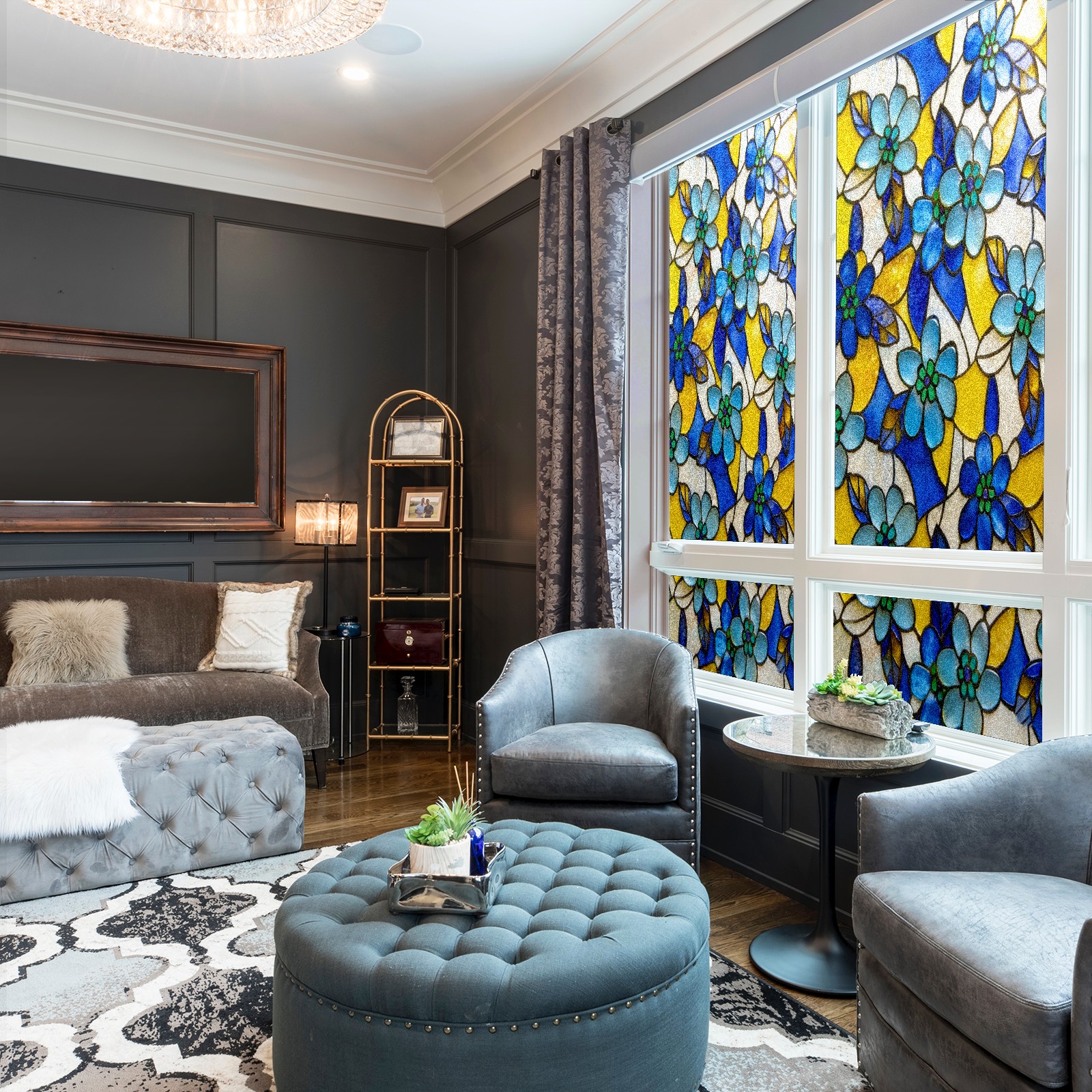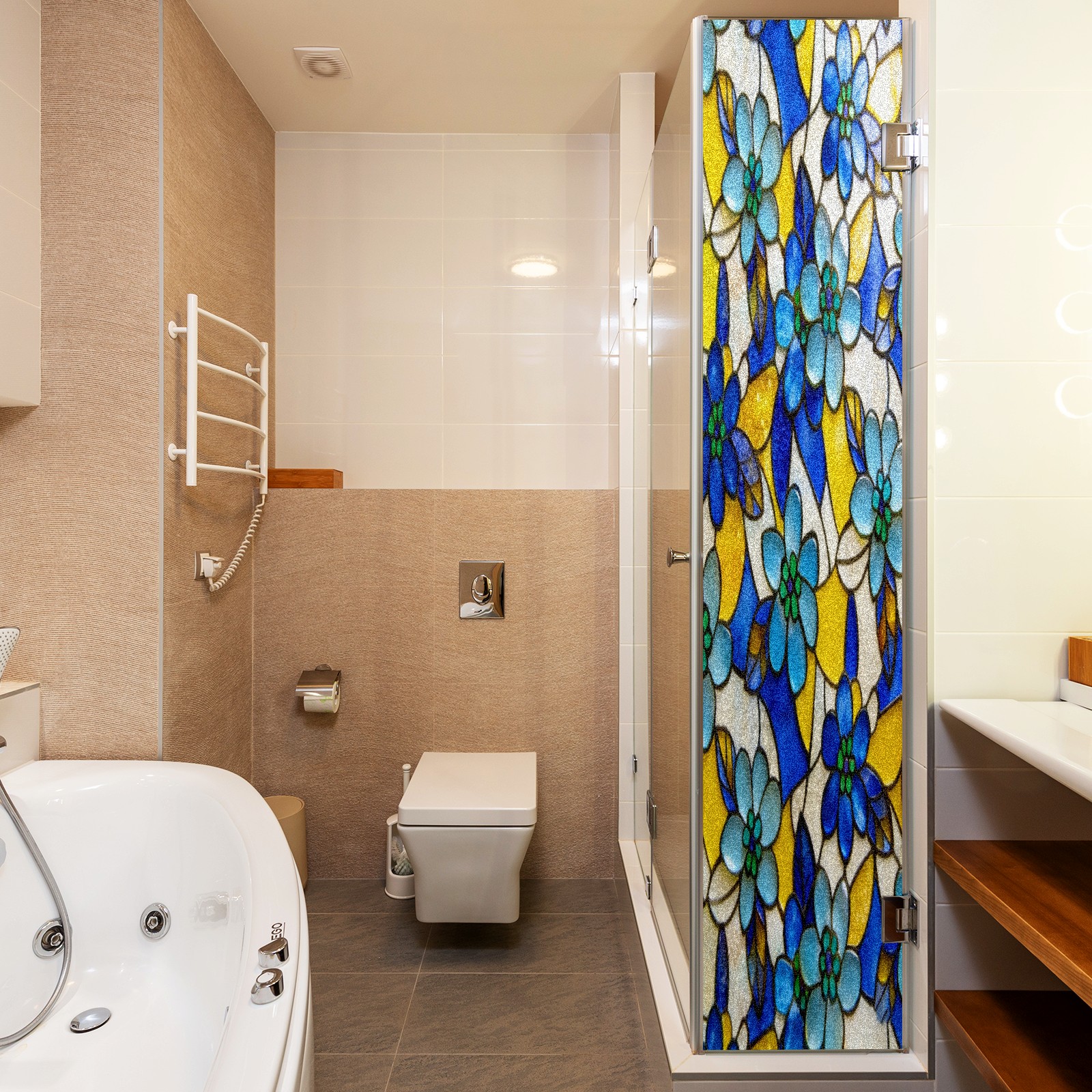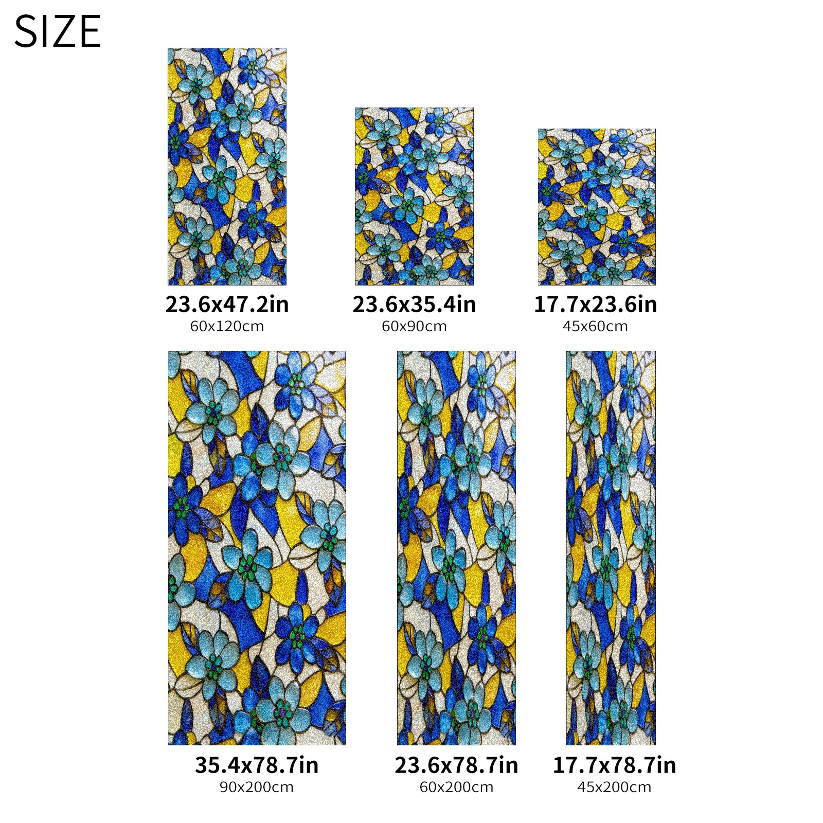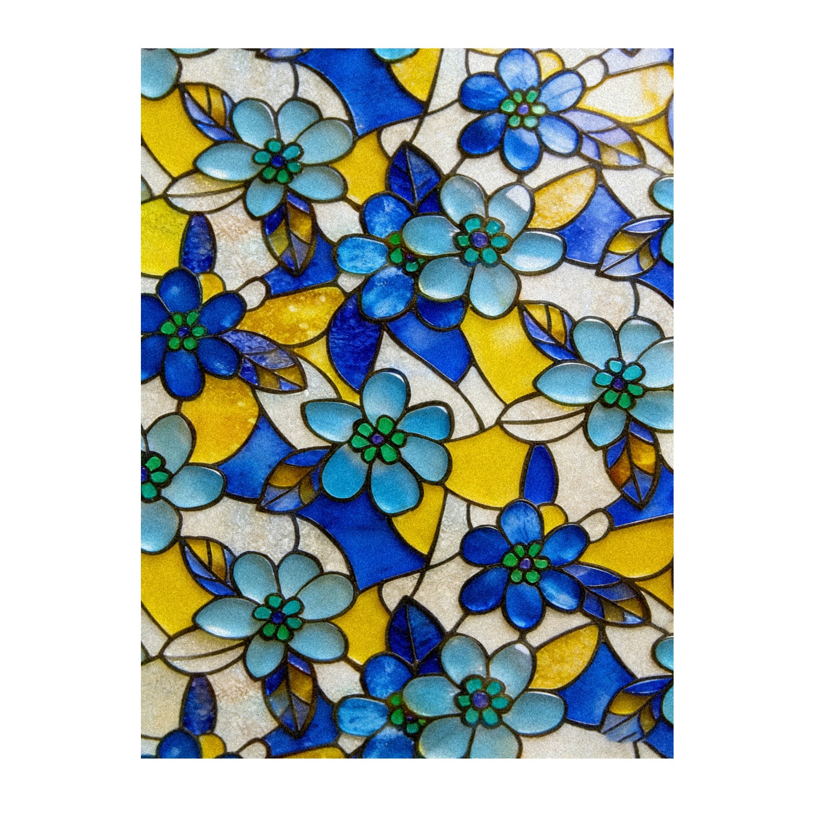 Counullo Frosted Glass Privacy Window Film, Blue Floral Non Adhesive Static Cling, Reusable PET Window Sticker for Bathroom Shower Door Bedroom Office Living Room (17.7x23.6in)