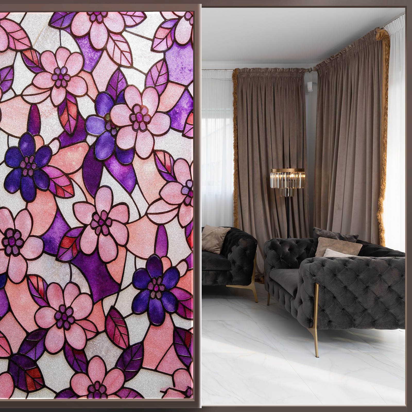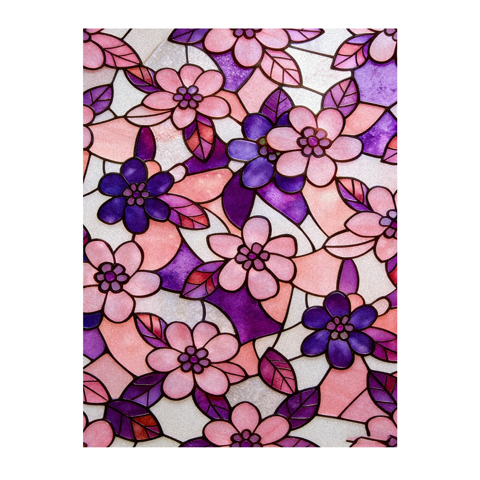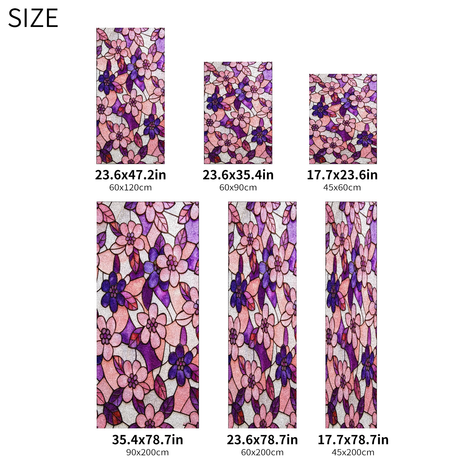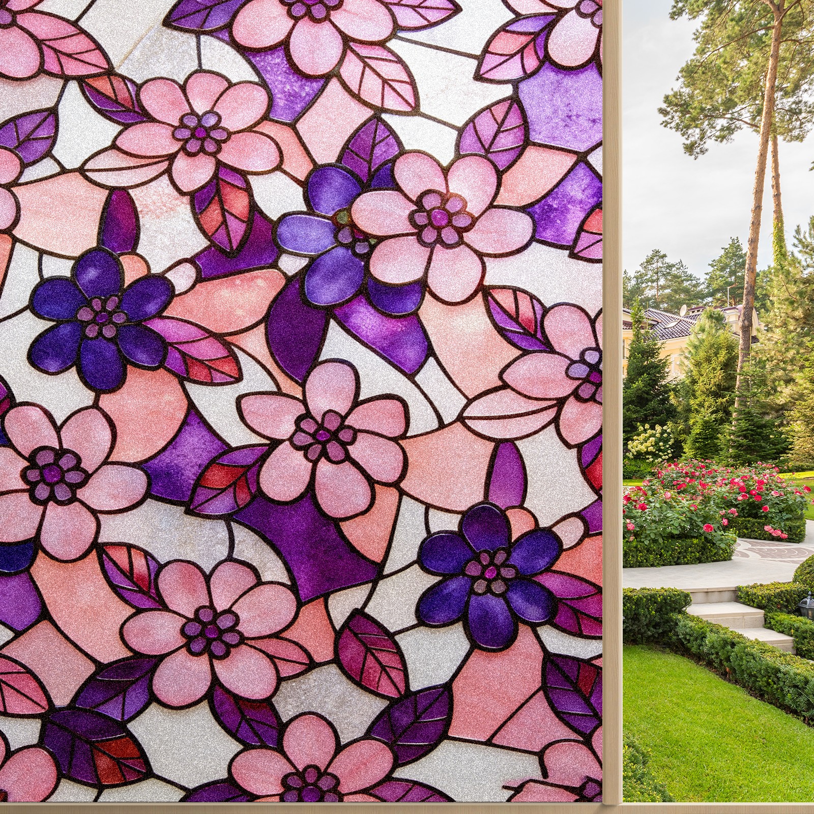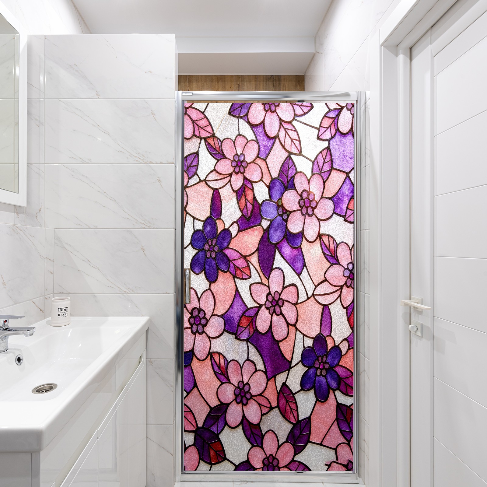 Counullo Frosted Glass Privacy Window Film, Purple Floral Non Adhesive Static Cling, Reusable PET Window Sticker for Bathroom Shower Door Bedroom Office Living Room (17.7x23.6in)