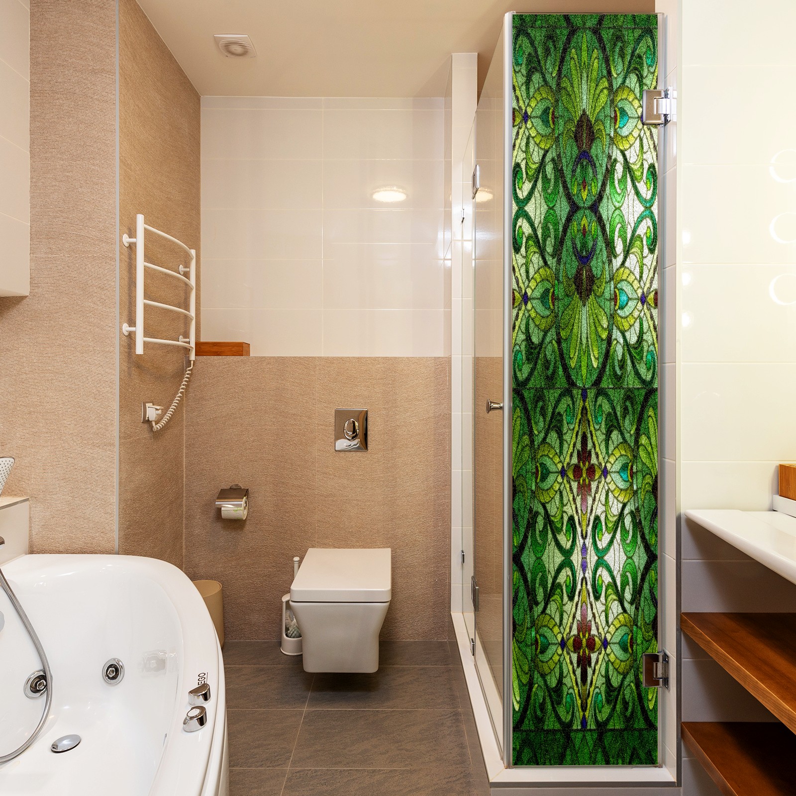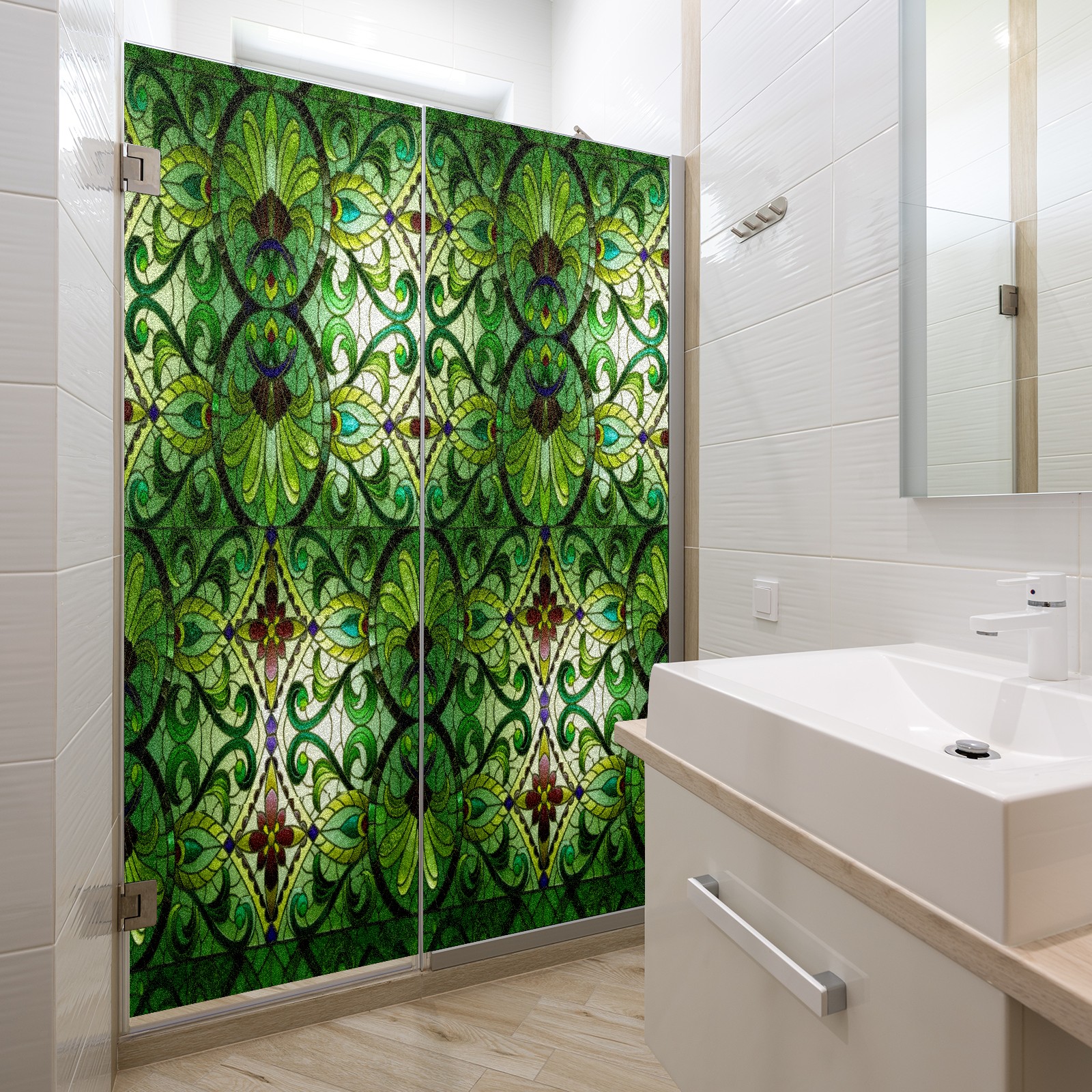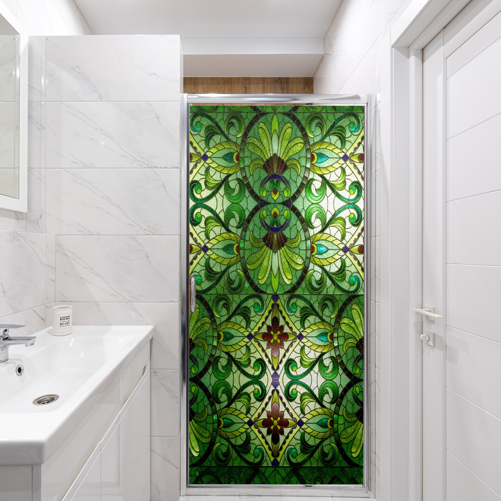 Counullo Frosted Glass Privacy Window Film, Green Leaf Vein Non Adhesive Static Cling, Reusable PET Window Sticker for Bathroom Shower Door Bedroom Office Living Room (17.7x23.6in)