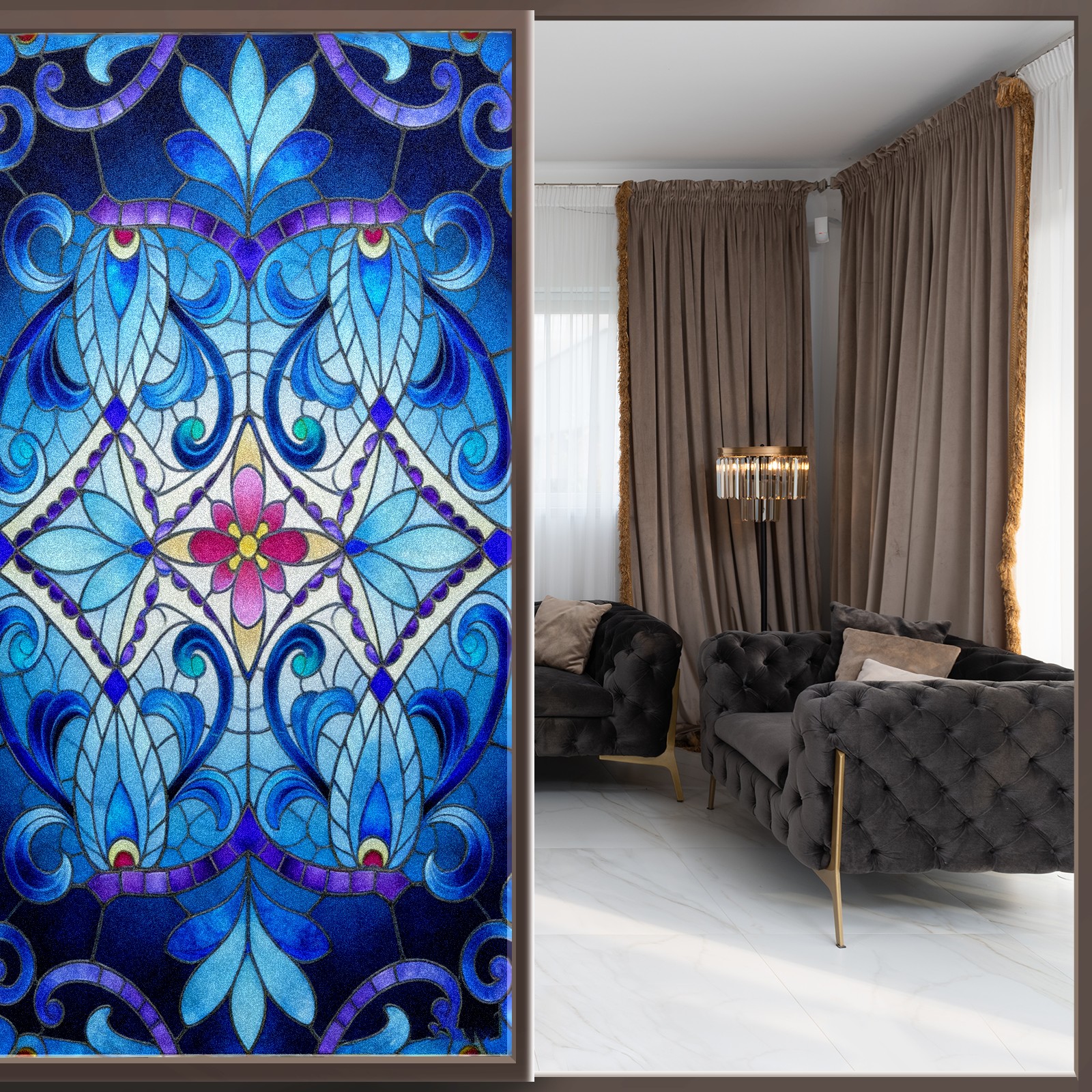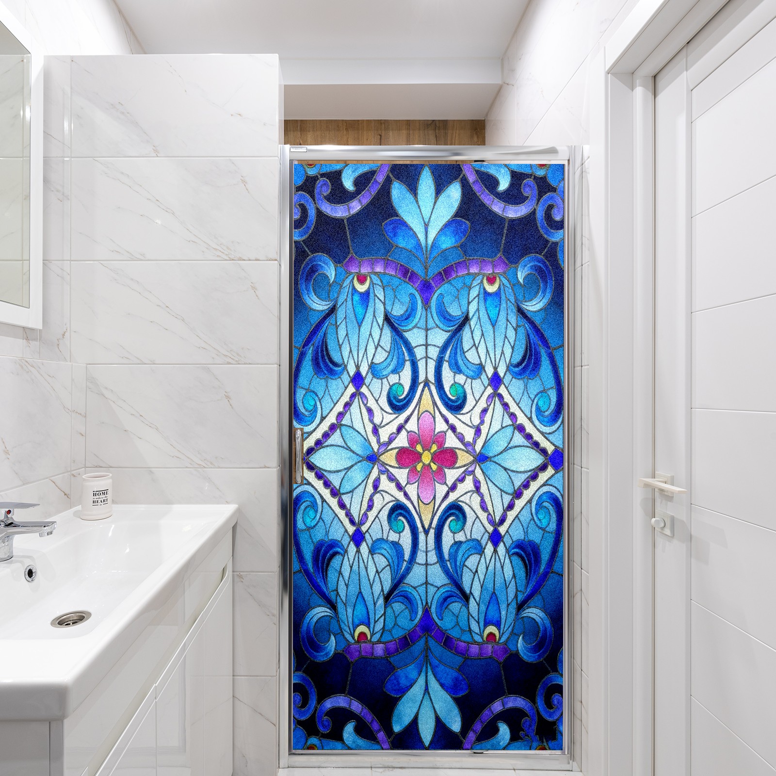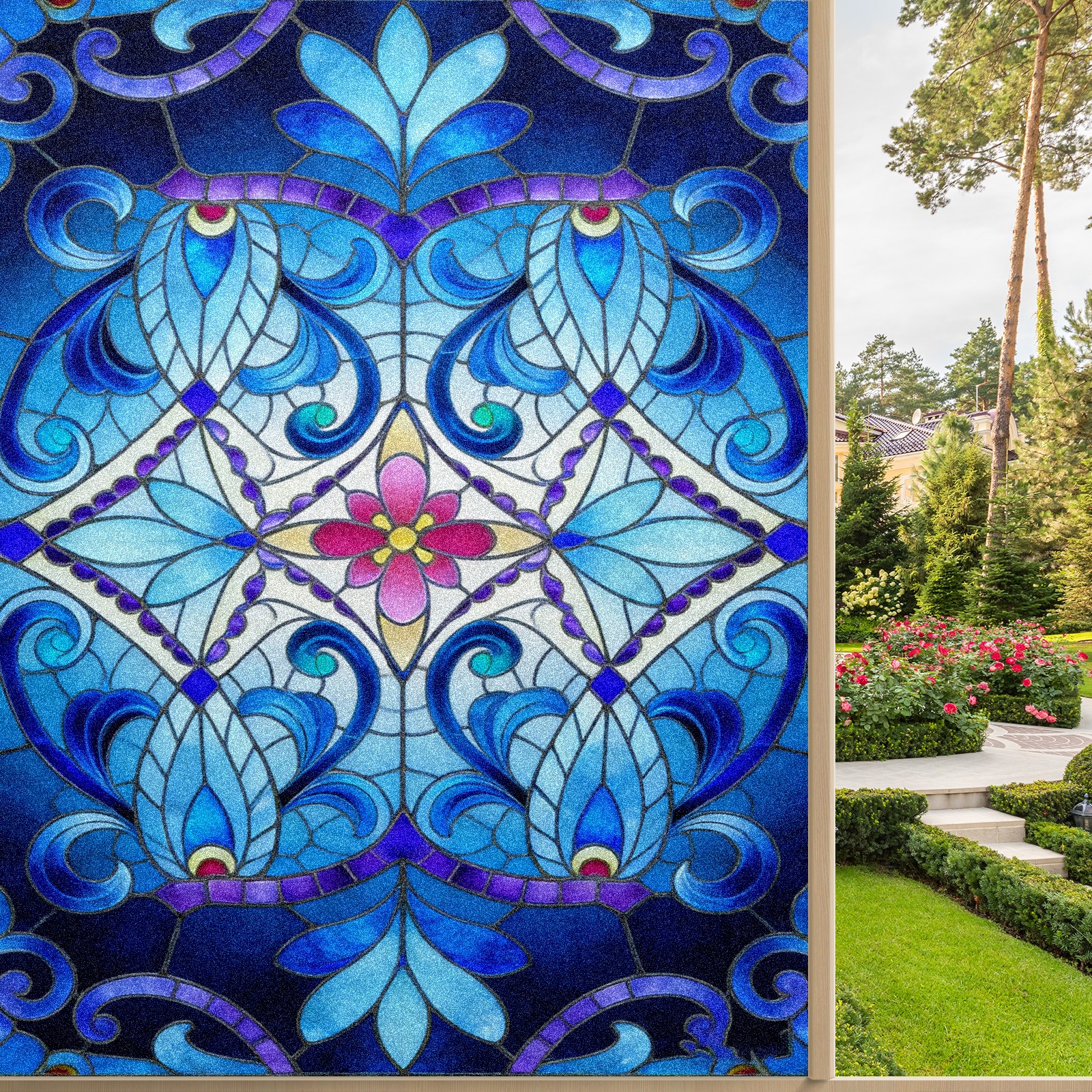 Counullo Frosted Glass Privacy Window Film, Blue Church Non Adhesive Static Cling, Reusable PET Window Sticker for Bathroom Shower Door Bedroom Office Living Room (17.7x23.6in)