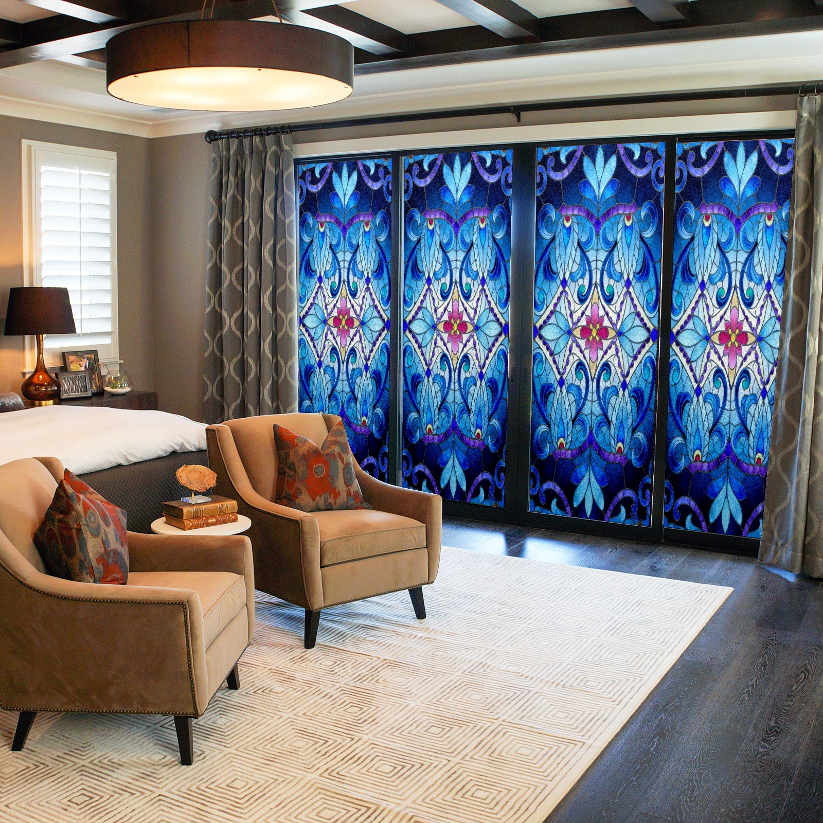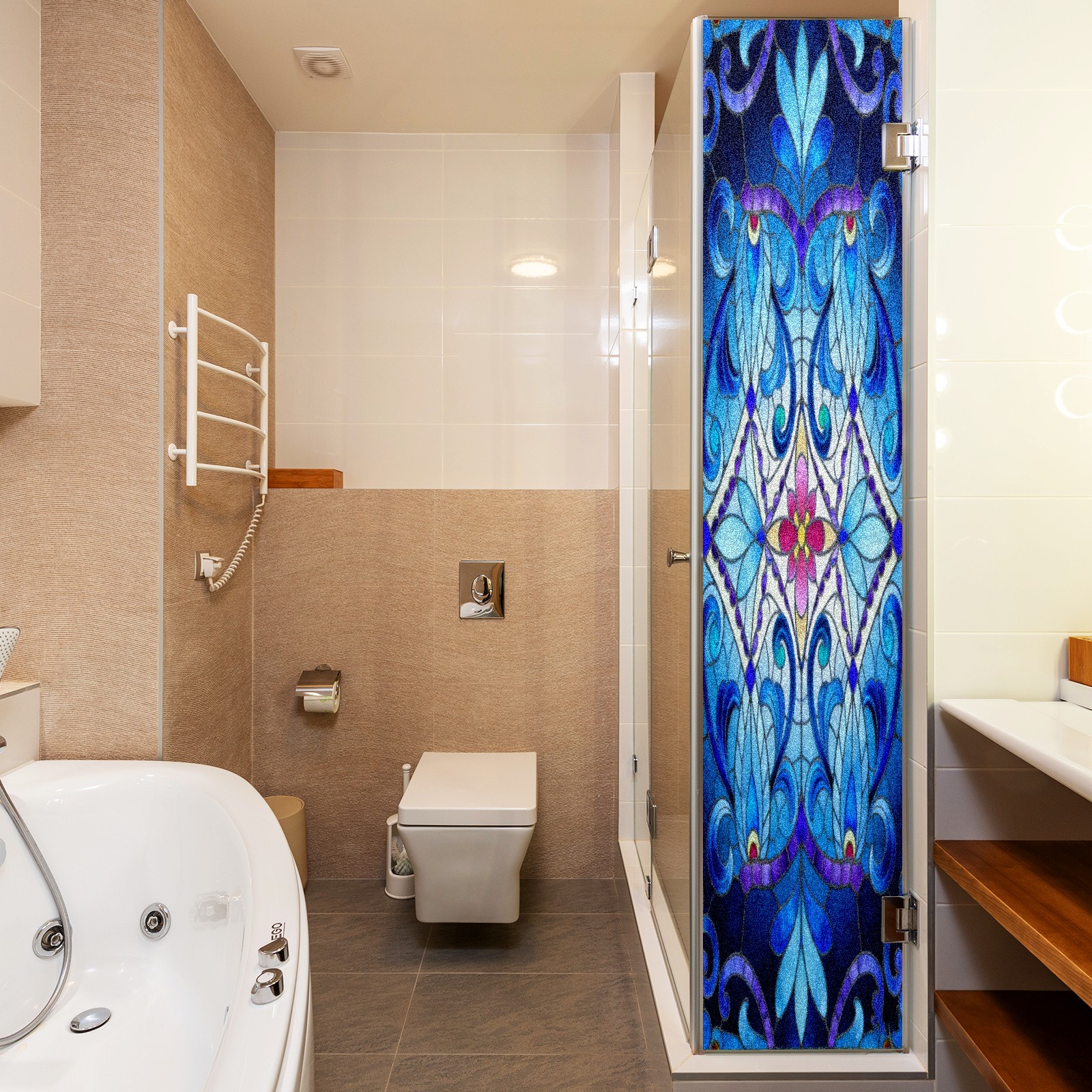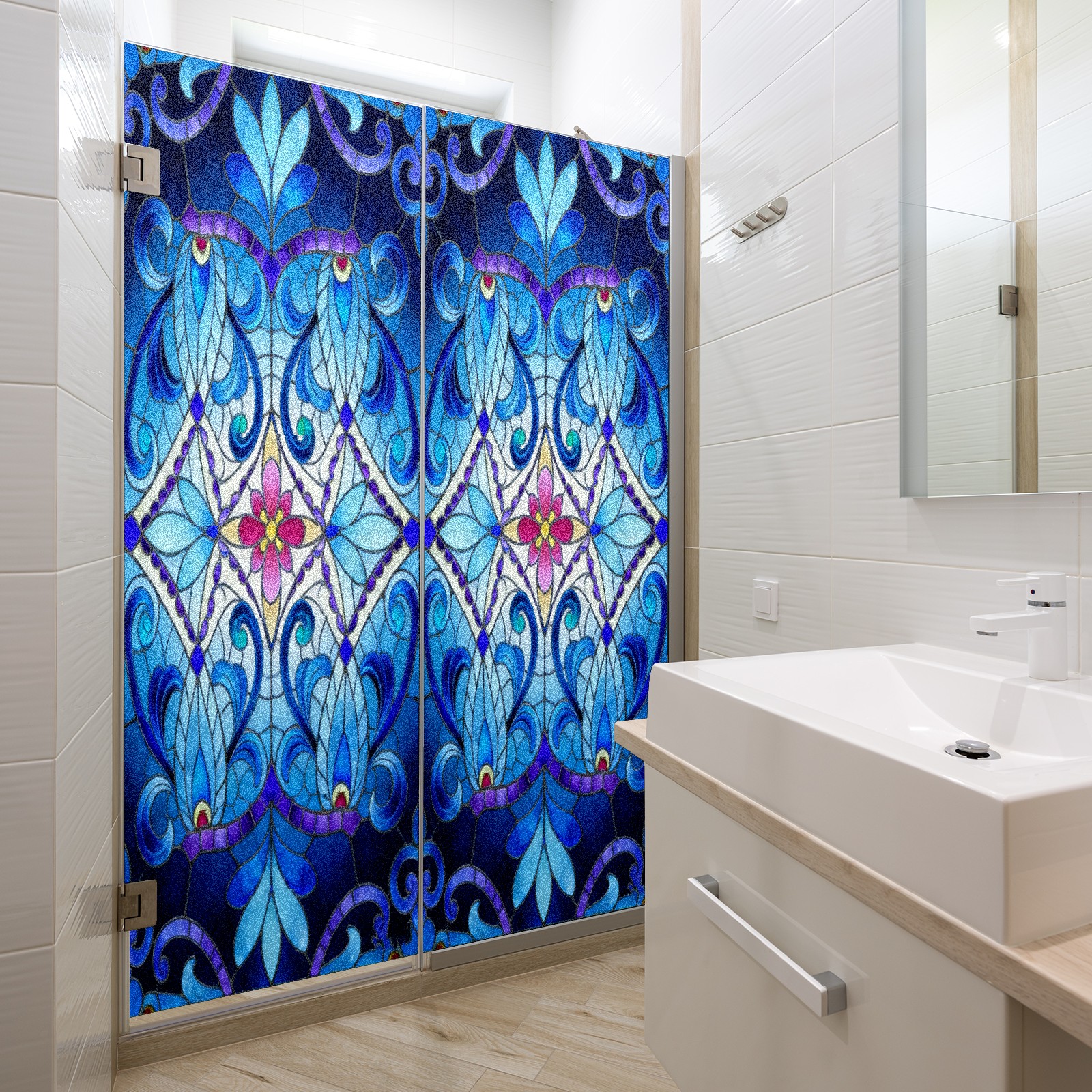 Counullo Frosted Glass Privacy Window Film, Blue Church Non Adhesive Static Cling, Reusable PET Window Sticker for Bathroom Shower Door Bedroom Office Living Room (17.7x23.6in)
