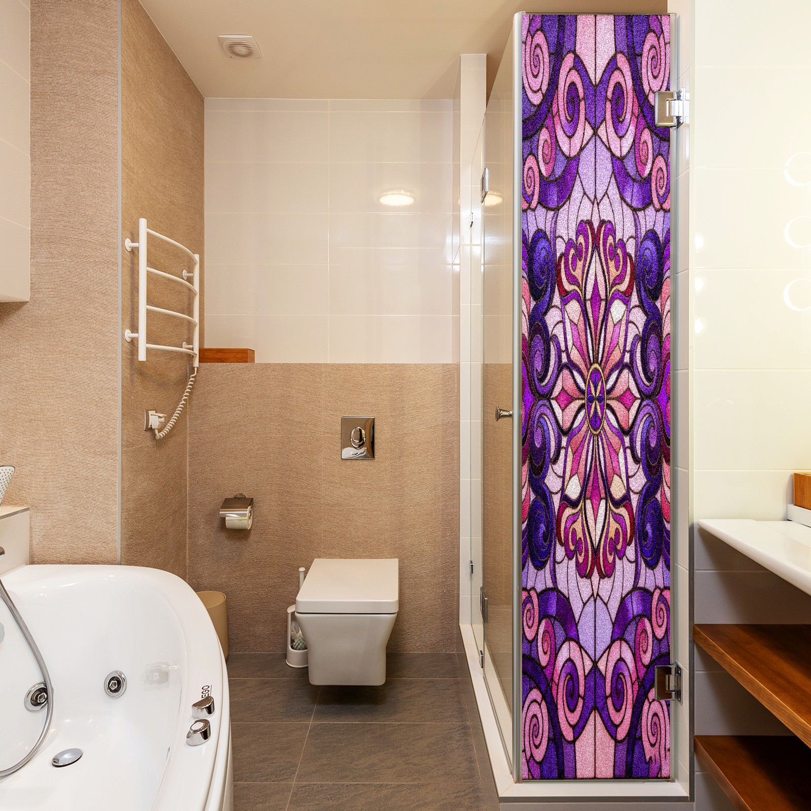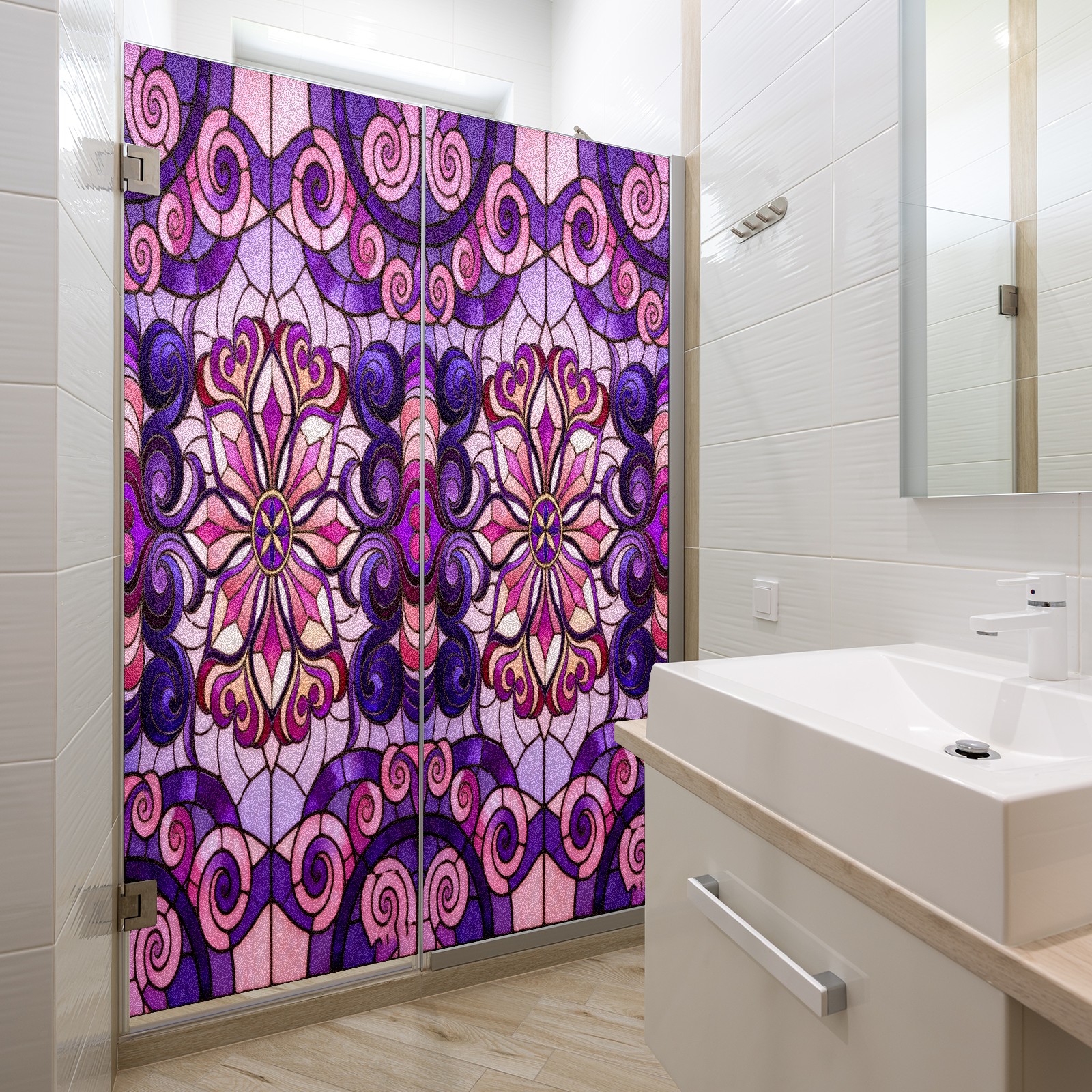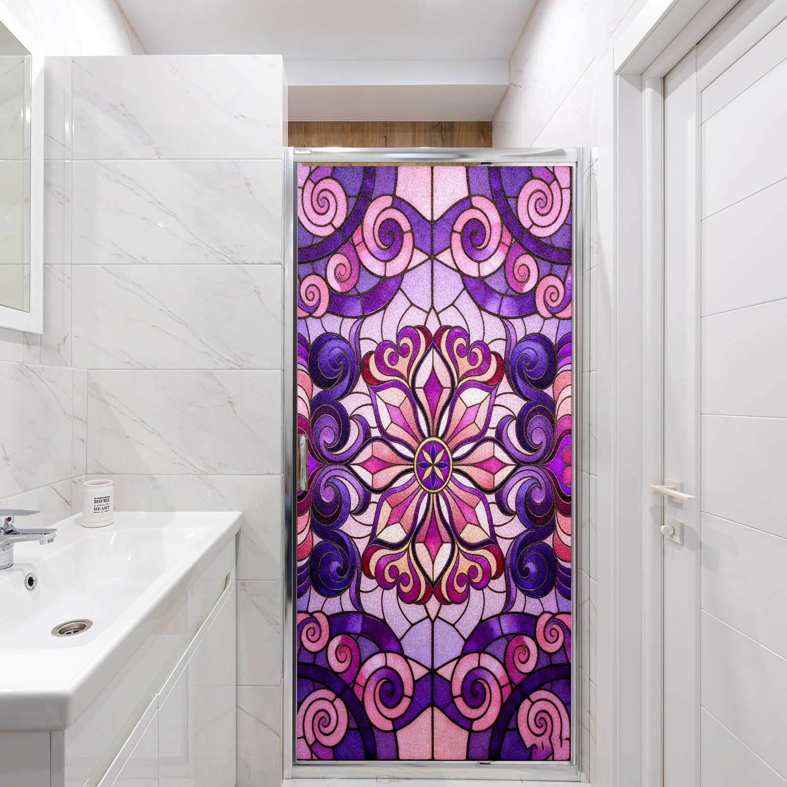Counullo Frosted Glass Privacy Window Film, Symmetric Floral Non Adhesive Static Cling, Reusable PET Window Sticker for Bathroom Shower Door Bedroom Office Living Room (17.7x23.6in)
