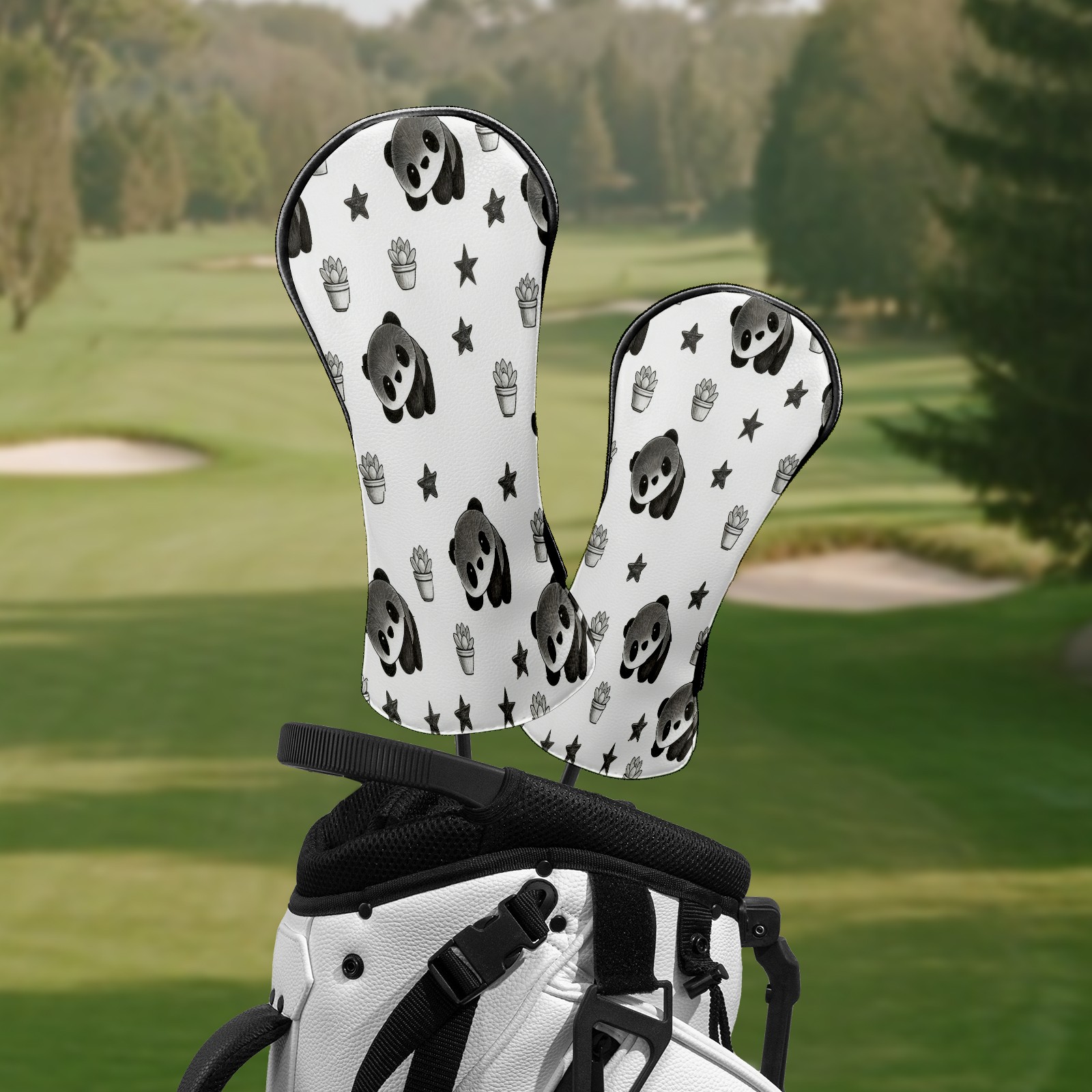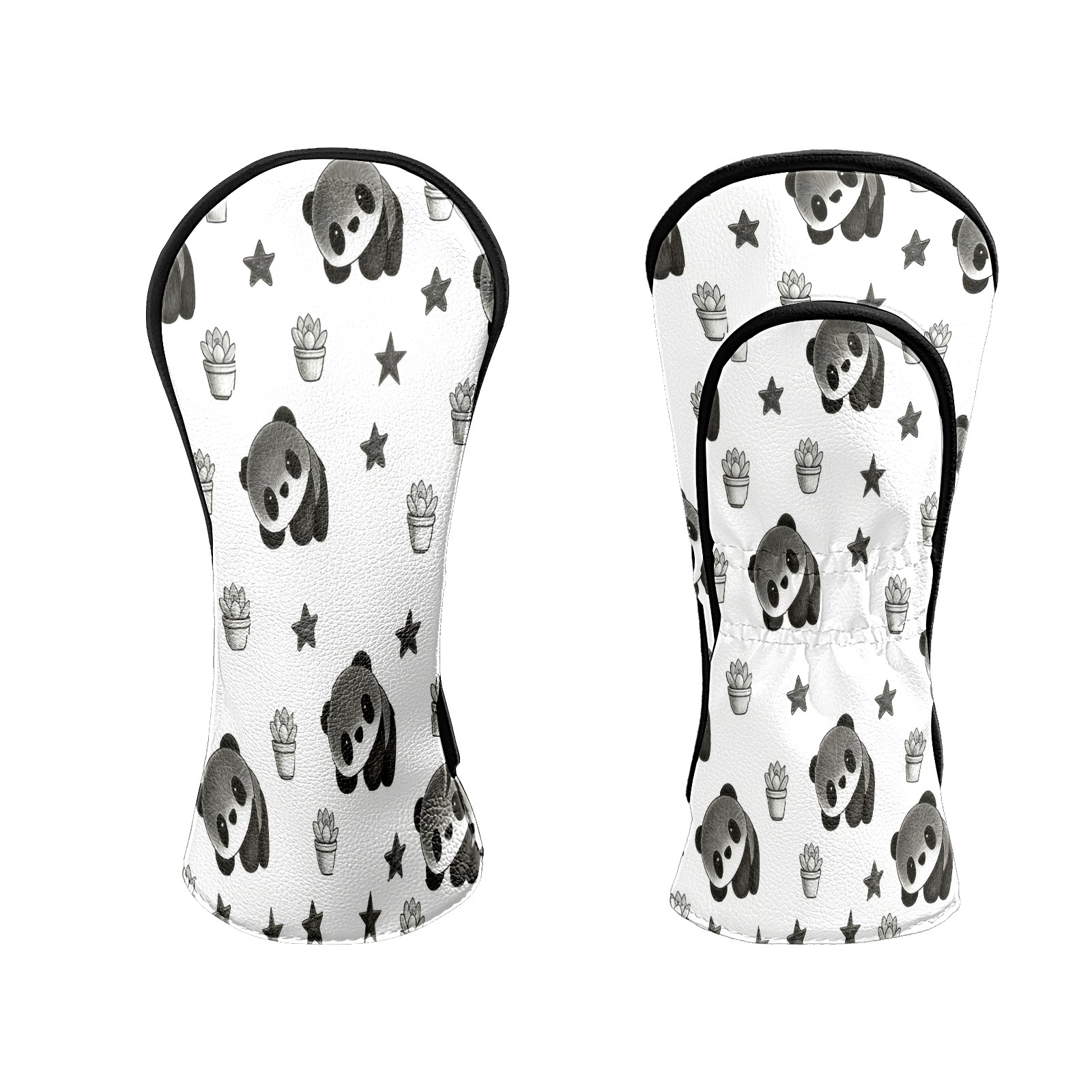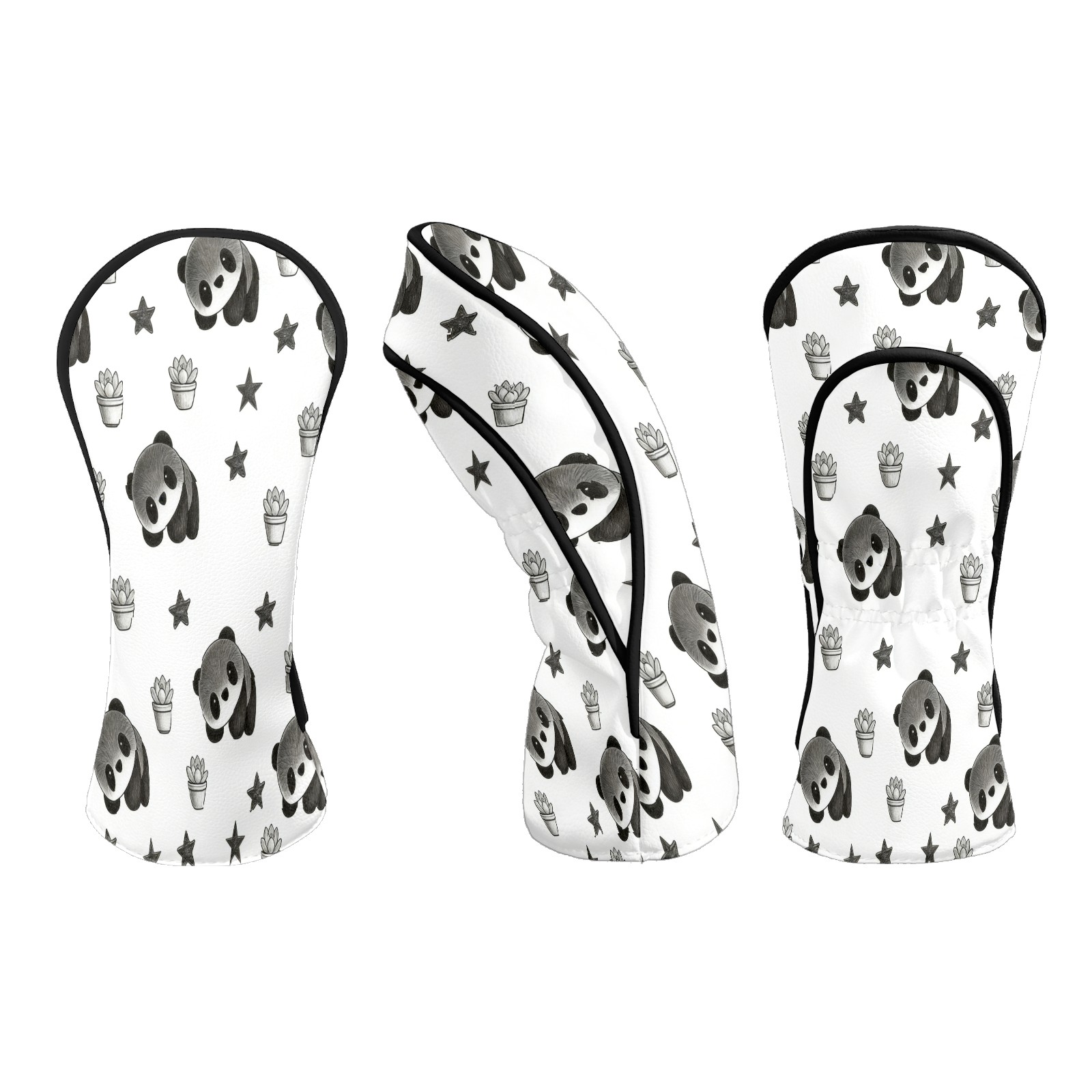 Counullo Golf Club Headcovers - Cute Panda Black Premium PU Leather with Plush Lining for Driver & Fairway Woods, No-Slip Fit for All Clubs, Novelty Gift for Men & Women